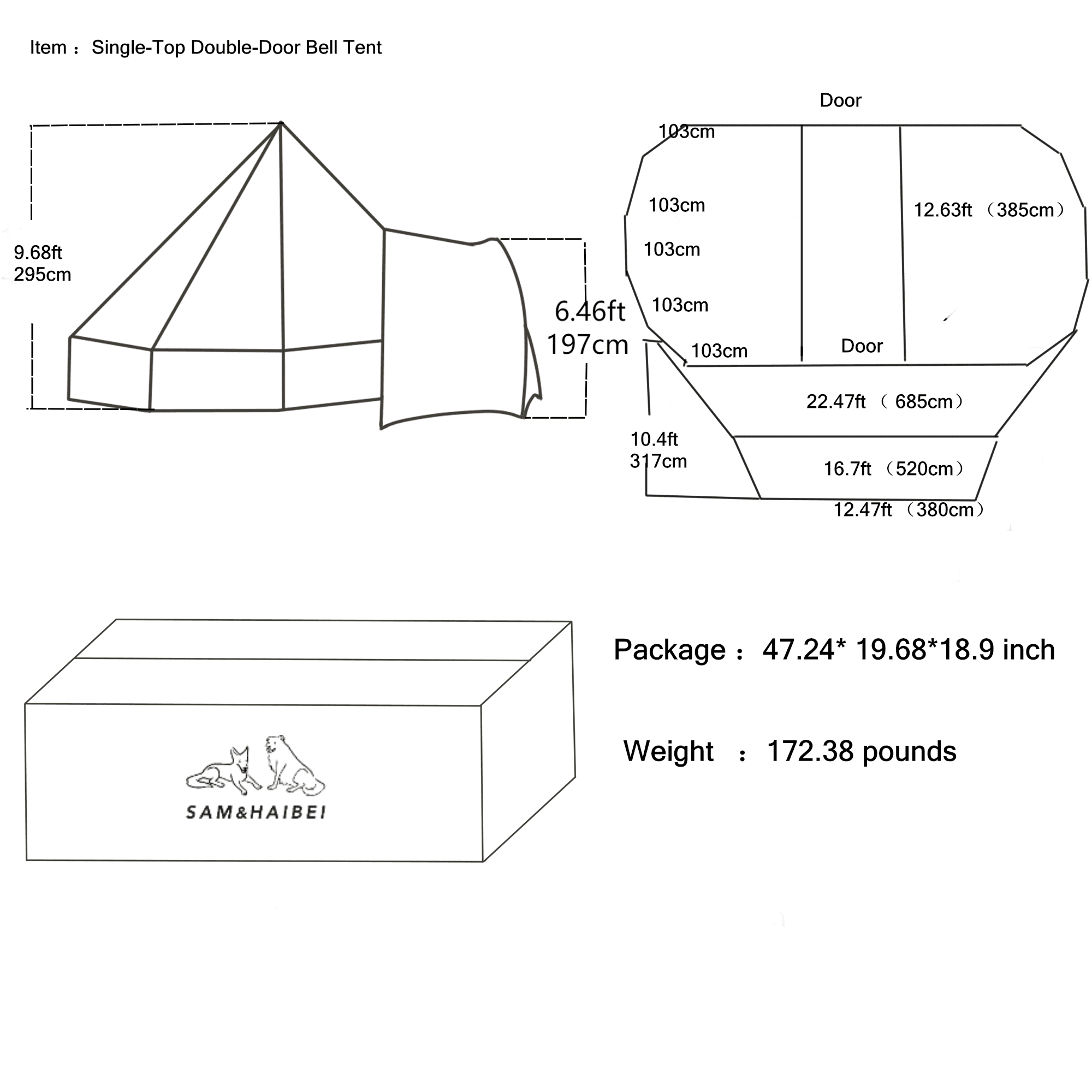 - Dimensions: 19.68ft (L) x 13.1ft (W) x 9.18ft (H)