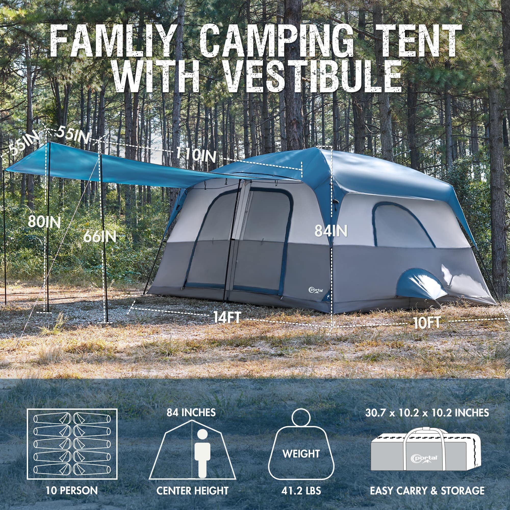 - One-of-a-Kind Porch Design : This tent comes with a front porch that��s 110" x 110" and has a maximum height of 84". Whether it��s sunny or rainy you can enjoy outdoor activities while staying protected under the porch no need to worry about harsh weather.