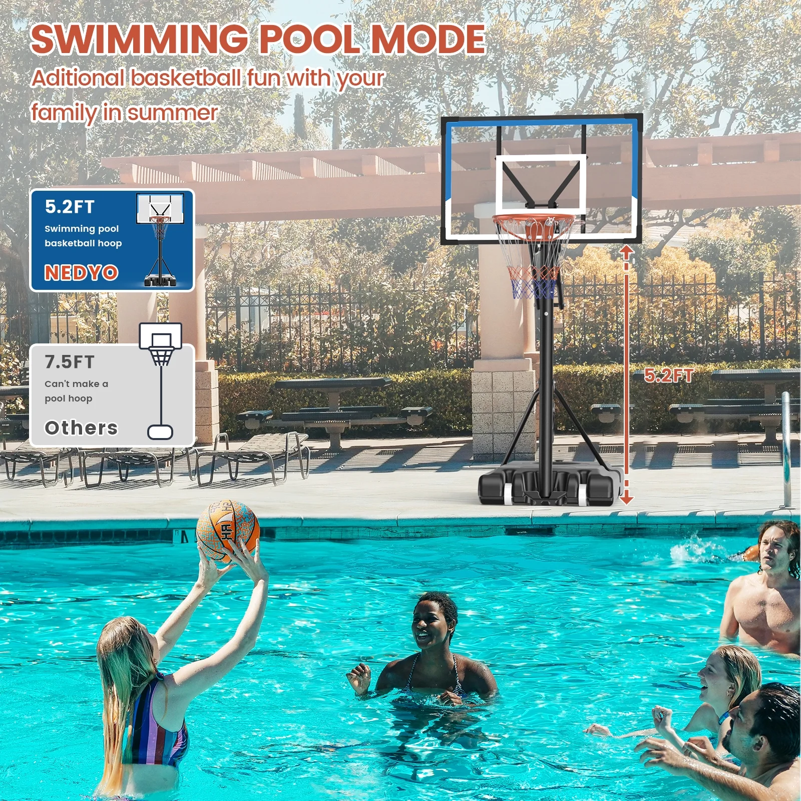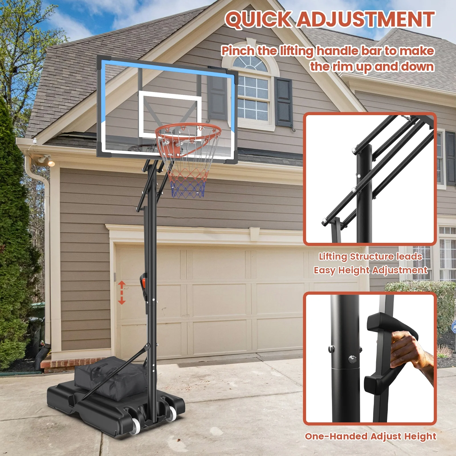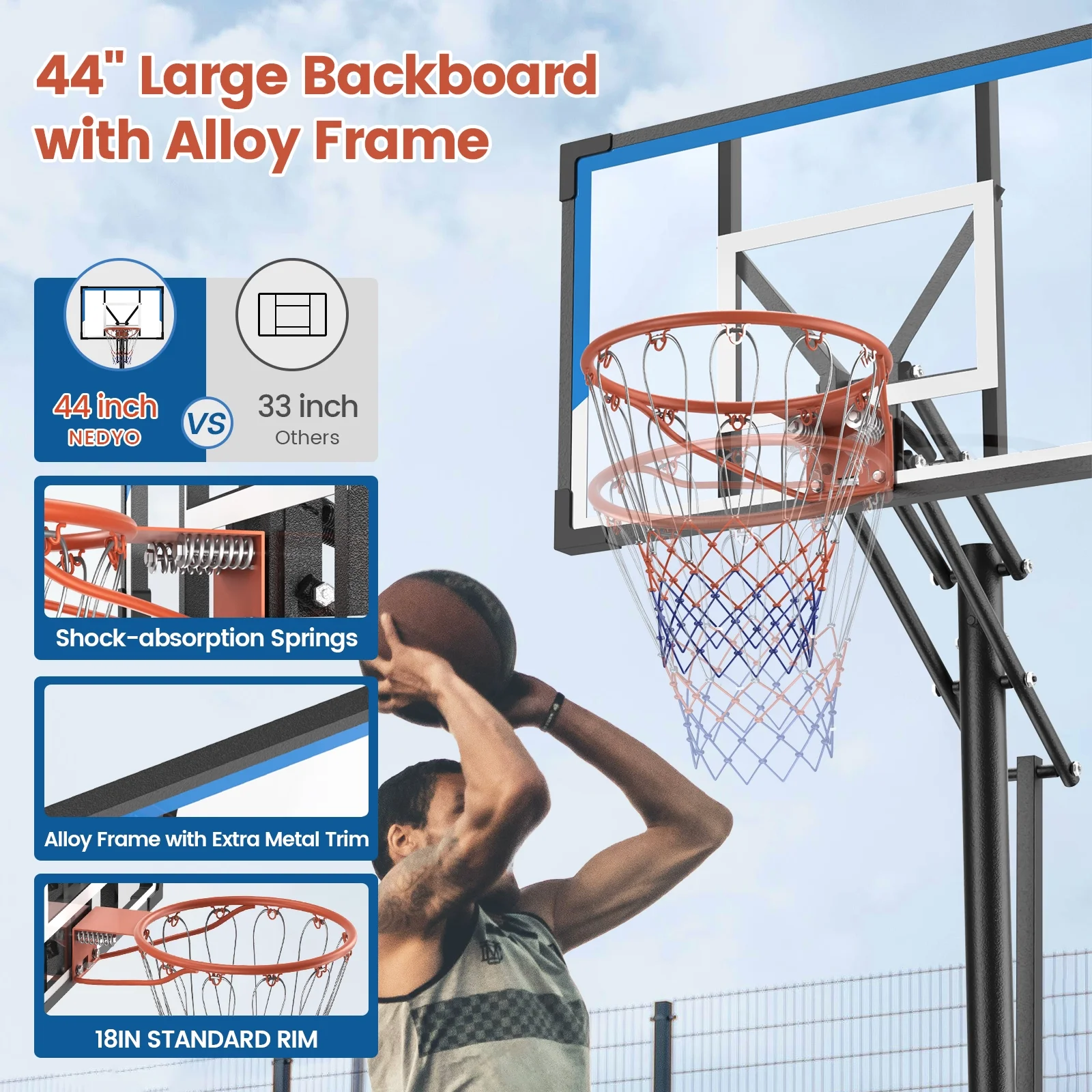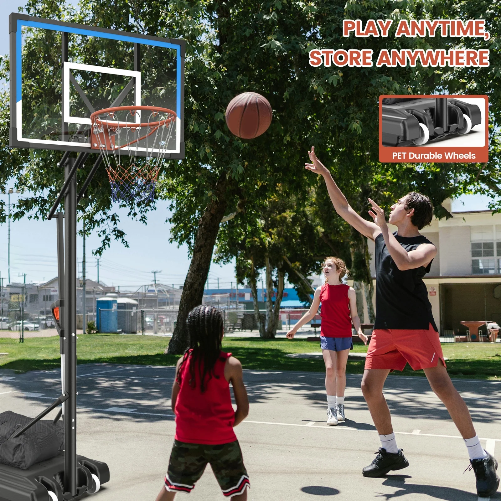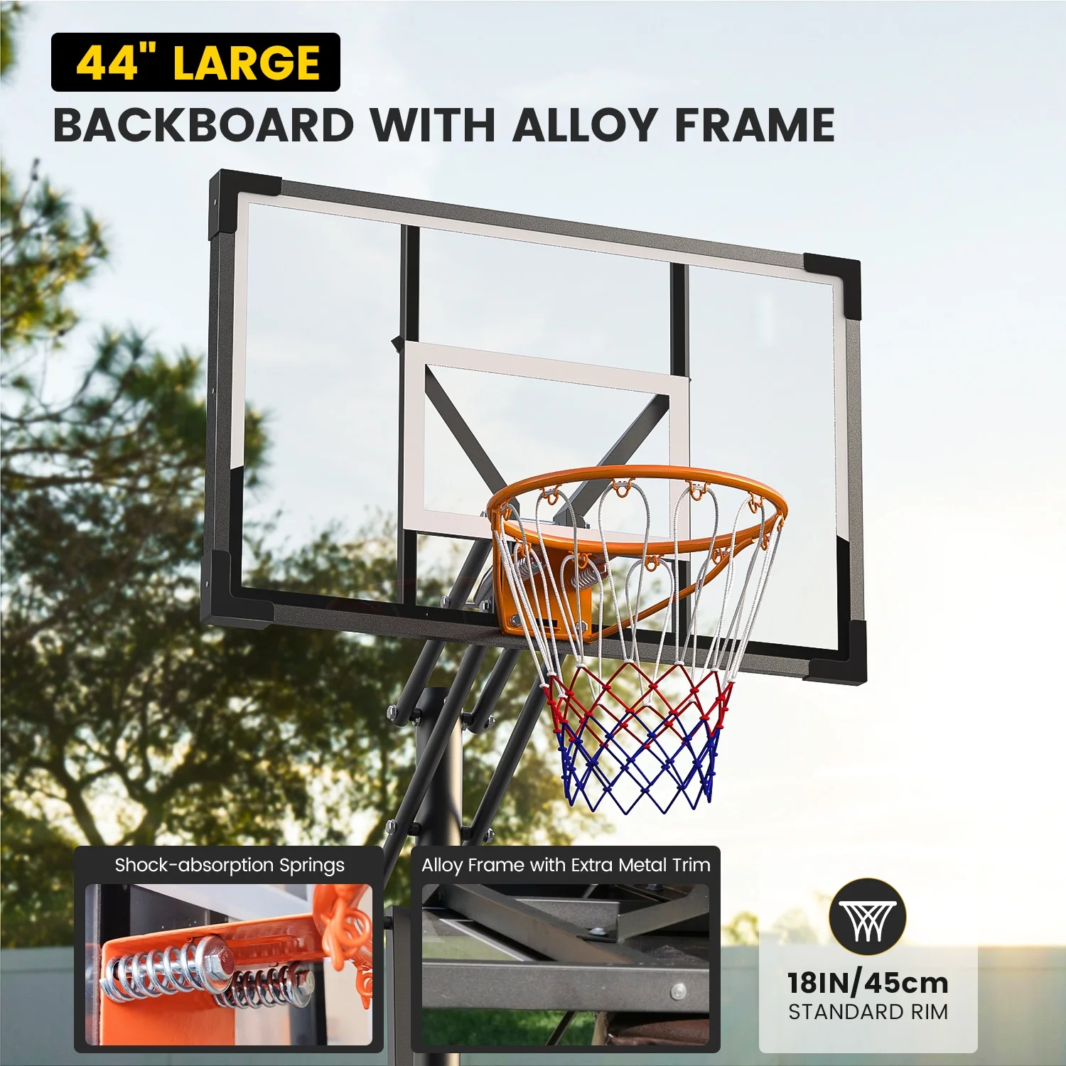 - High Strength Backboard & Rim: Premium transparent PC backboard offers superior impact resistance and shatterproof performance for a durable basketball hoop.