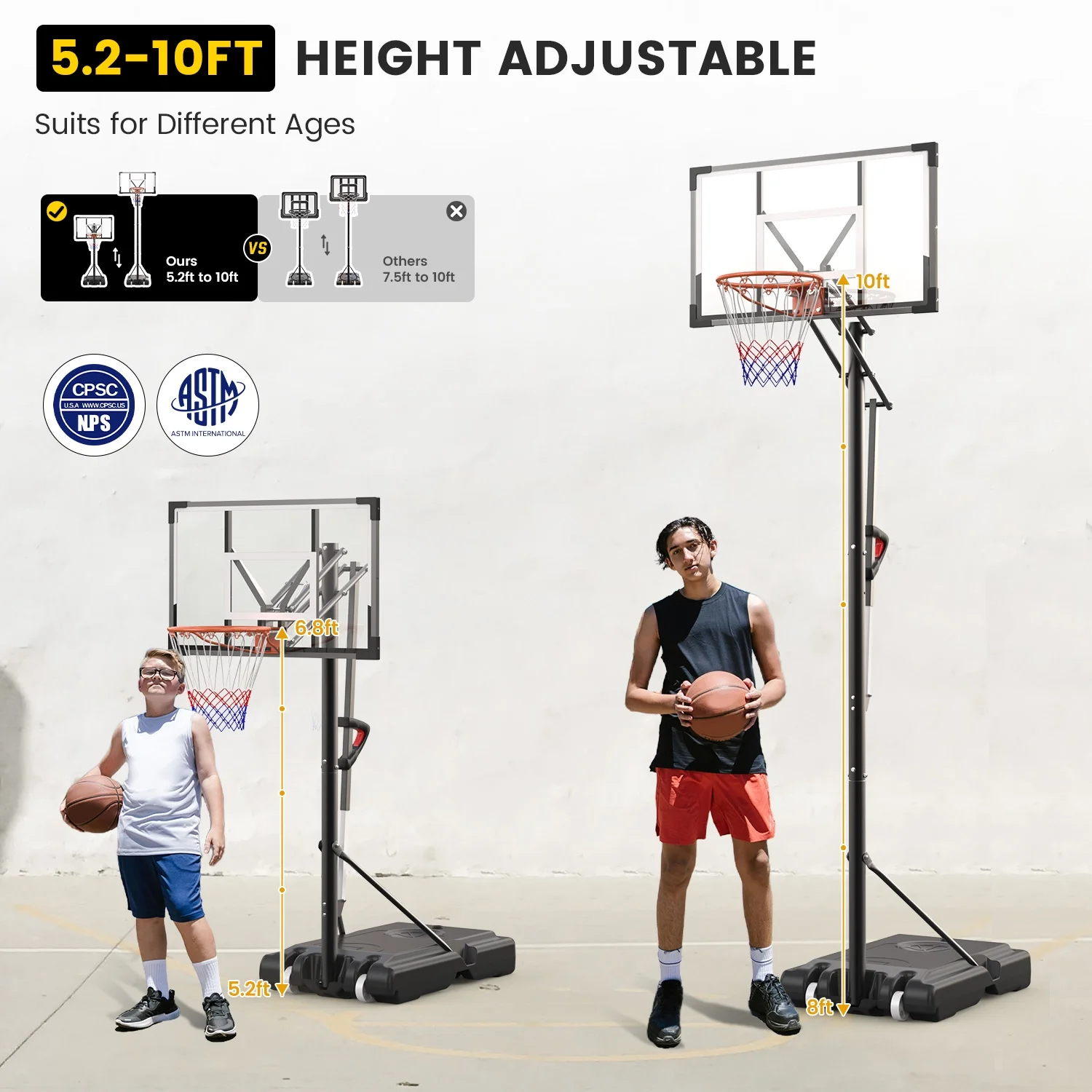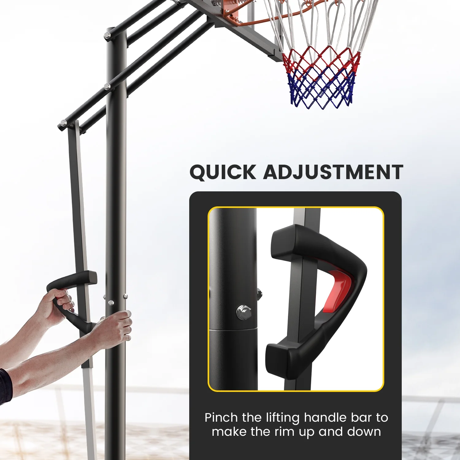 - Height Adjustable in Seconds: Easily adjusts the height from 5.5 ft to 10 ft with a secure safety latch, making it suitable for players of all ages.