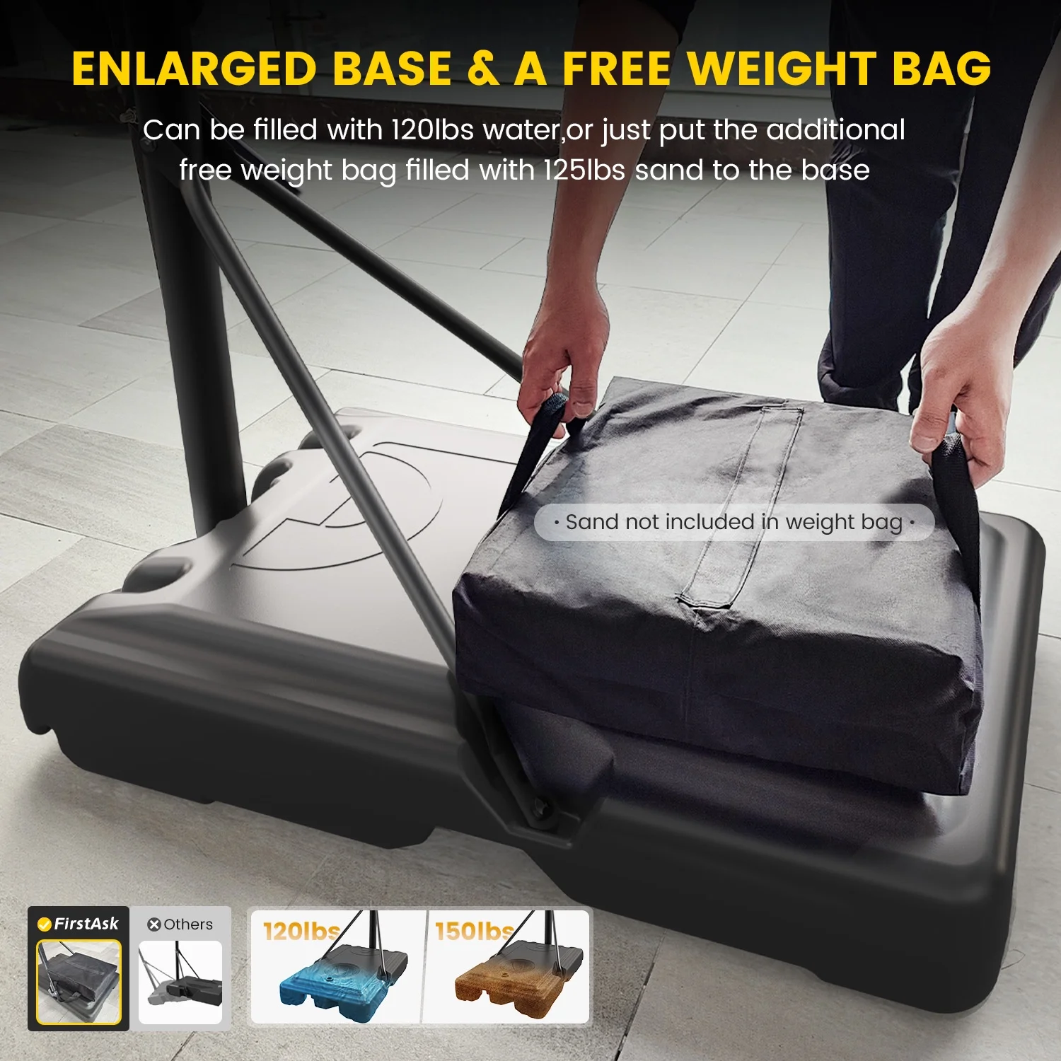 - Sturdy Base: Fill the 35.4 x 23.6 x 6 in base with up to 179 lbs of water or 268 lbs of sand for enhanced stability, reinforced with four support rods.