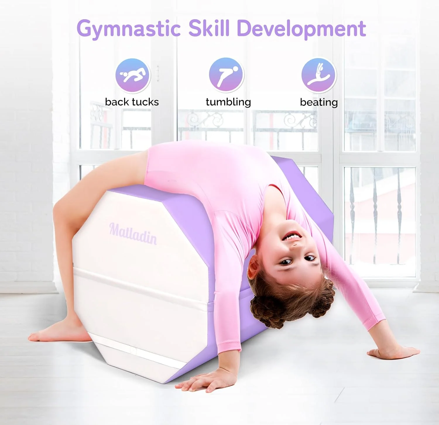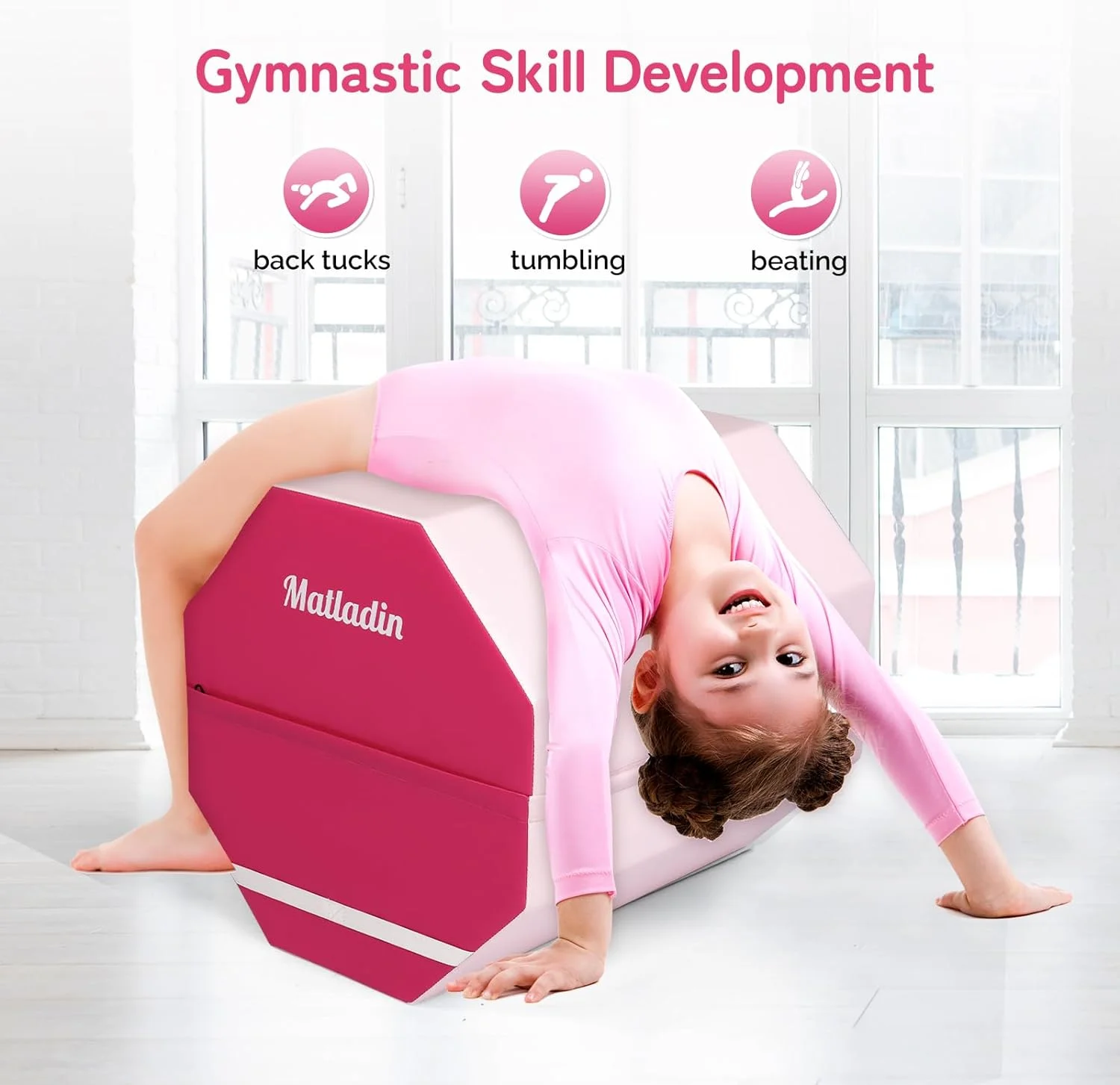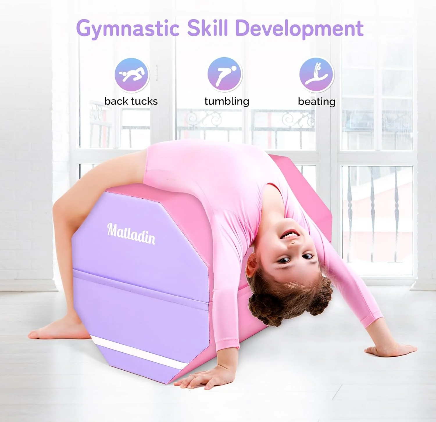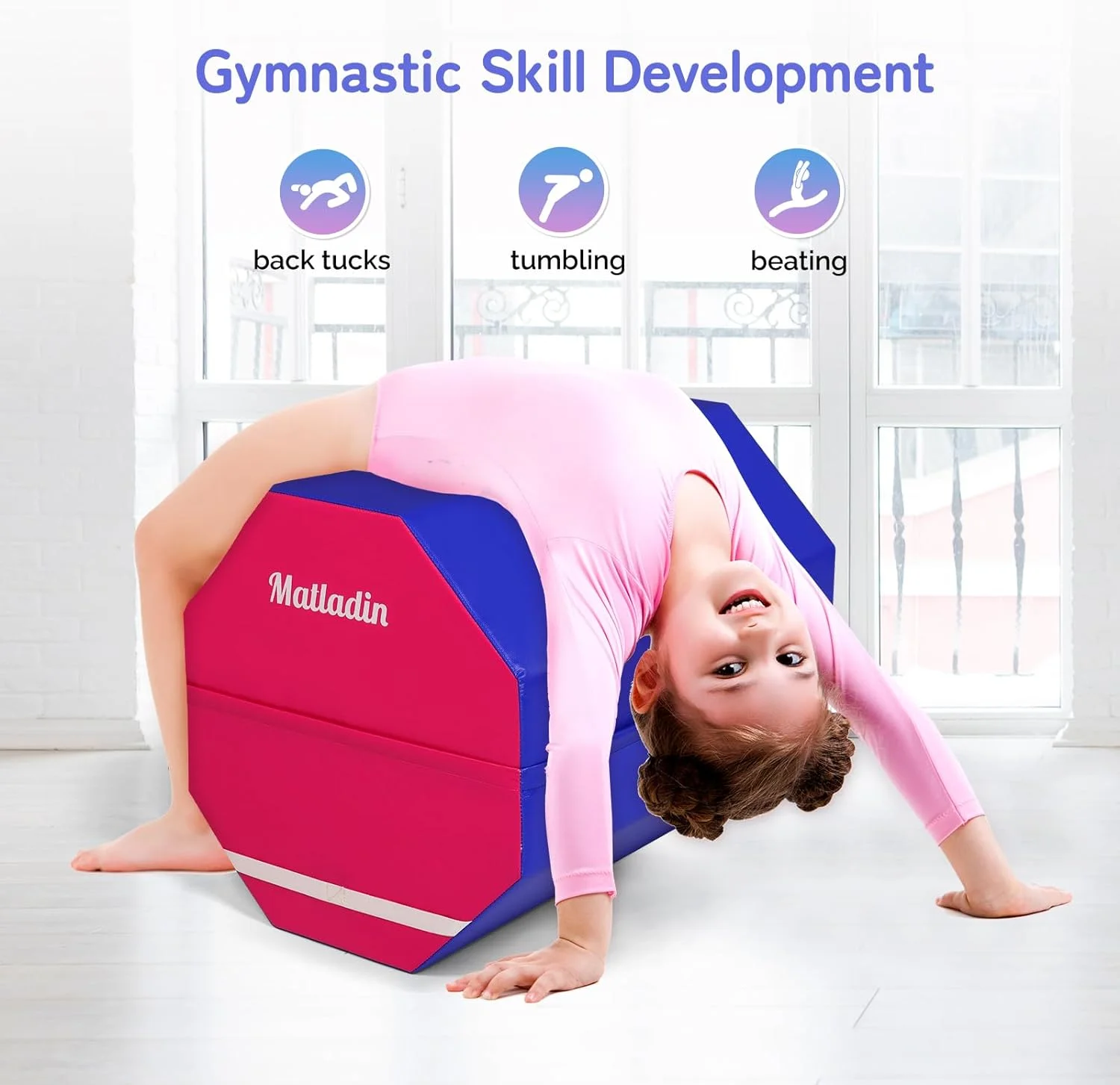 - Versatile: This mat is perfect for a variety of activities, including gymnastics, cheerleading, tumbling, stretching, and more. It's also great for home gyms, schools, and fitness centers. It help enhancing the gymnastic skills kids learn at their class, at home