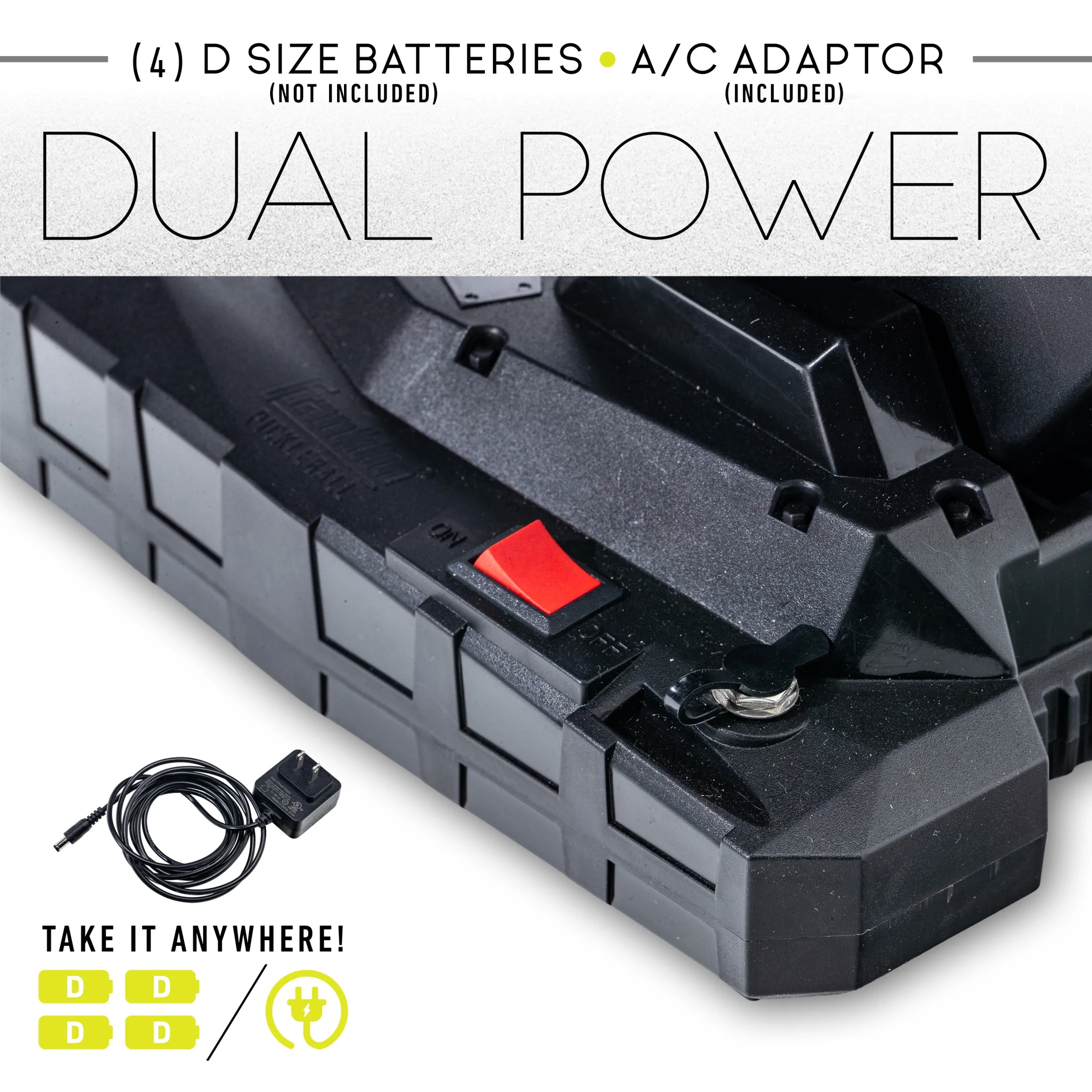 - PORTABLE: This portable automatic ball launcher can be powered with (4) D batteries (not included), or the attached A/C power adapter so you can play at home or take it out to the courts with ease