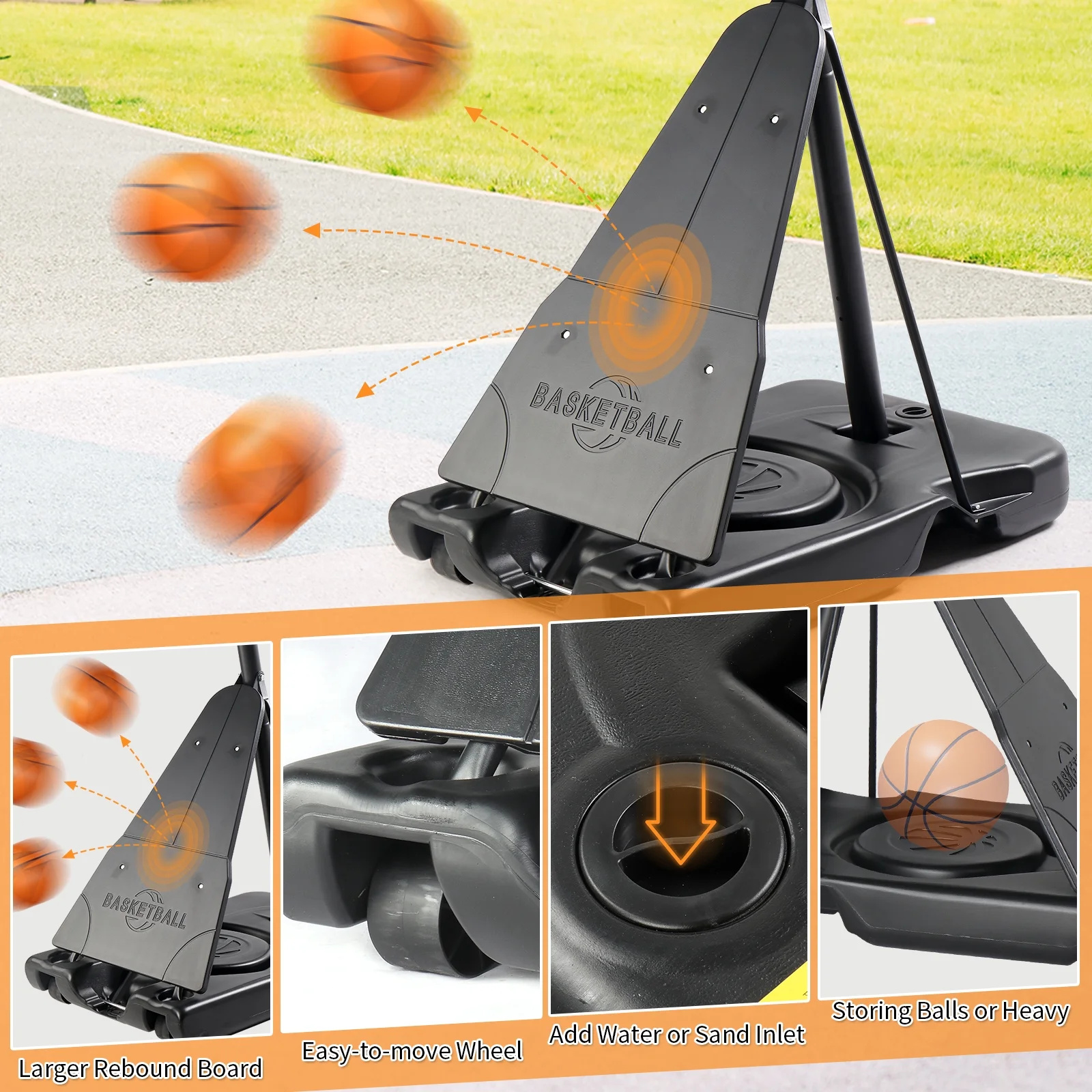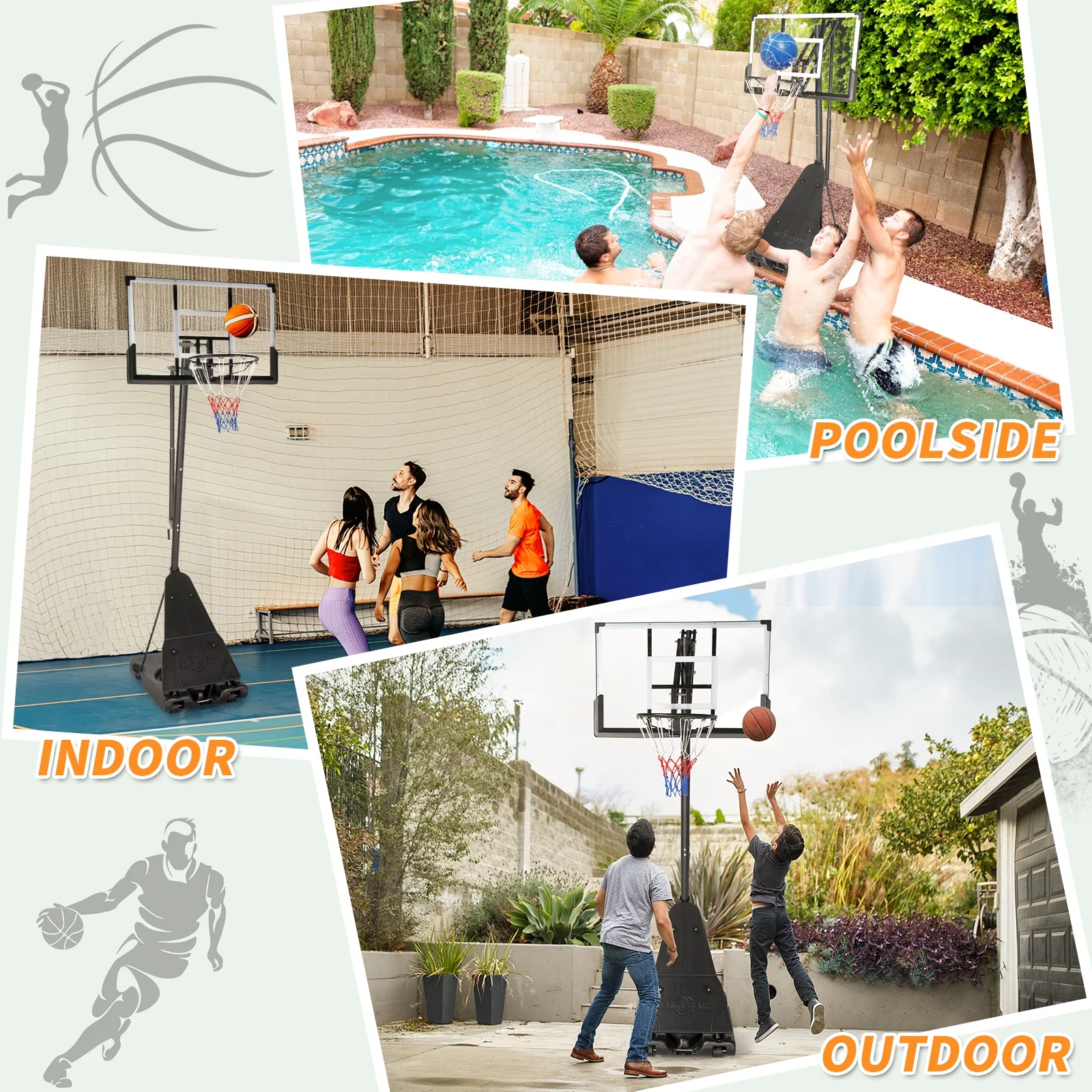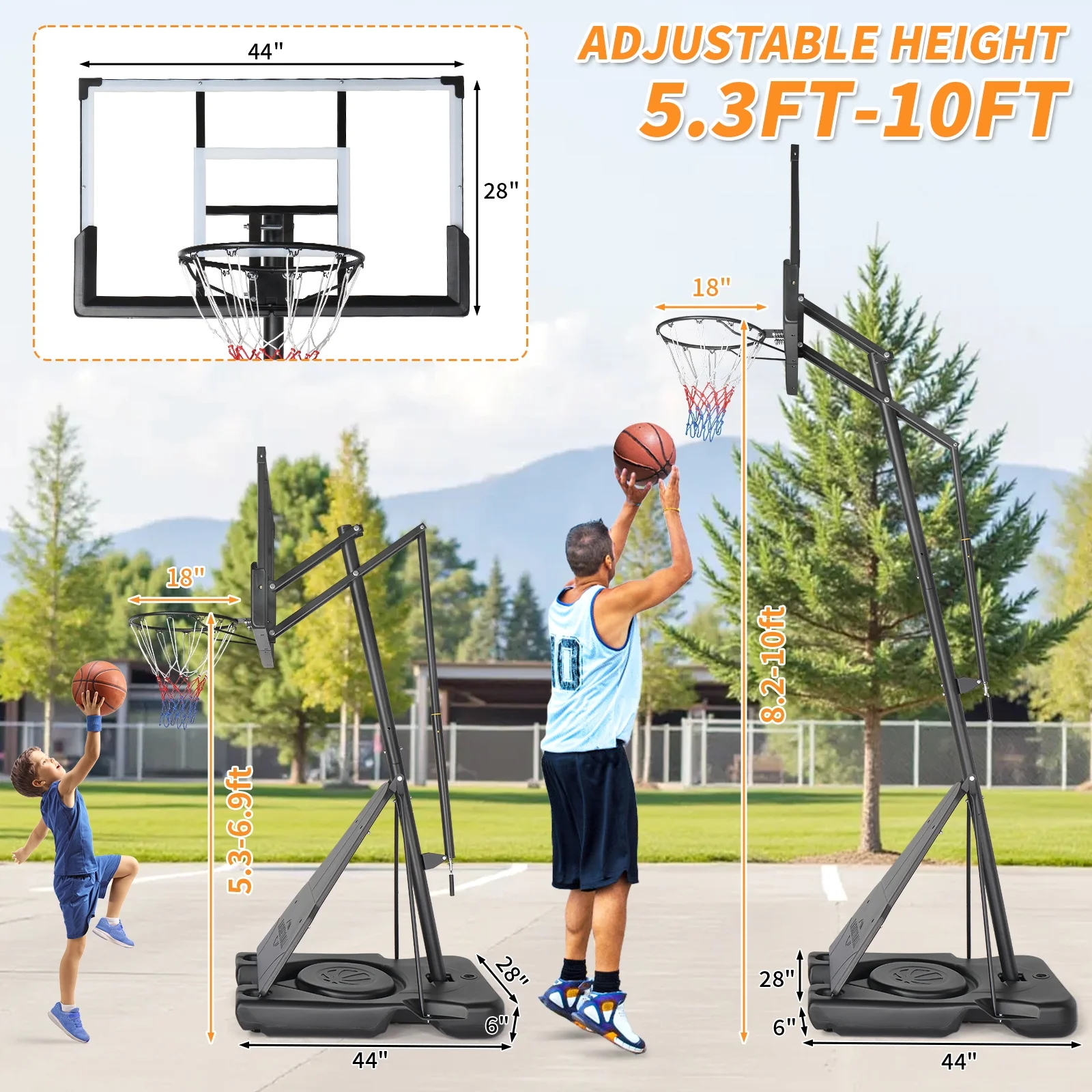 ADJUSTABLE HEIGHT FOR ALL AGES & SKILL LEVELS--Our basketball hoop offers versatile height adjustments to suit players of all levels. Choose from 5.3-6.9ft with two poles or 8-10ft with three poles, making it ideal for teens, and adults to enjoy the game in various settings��whether in the driveway, backyard, or sports court.