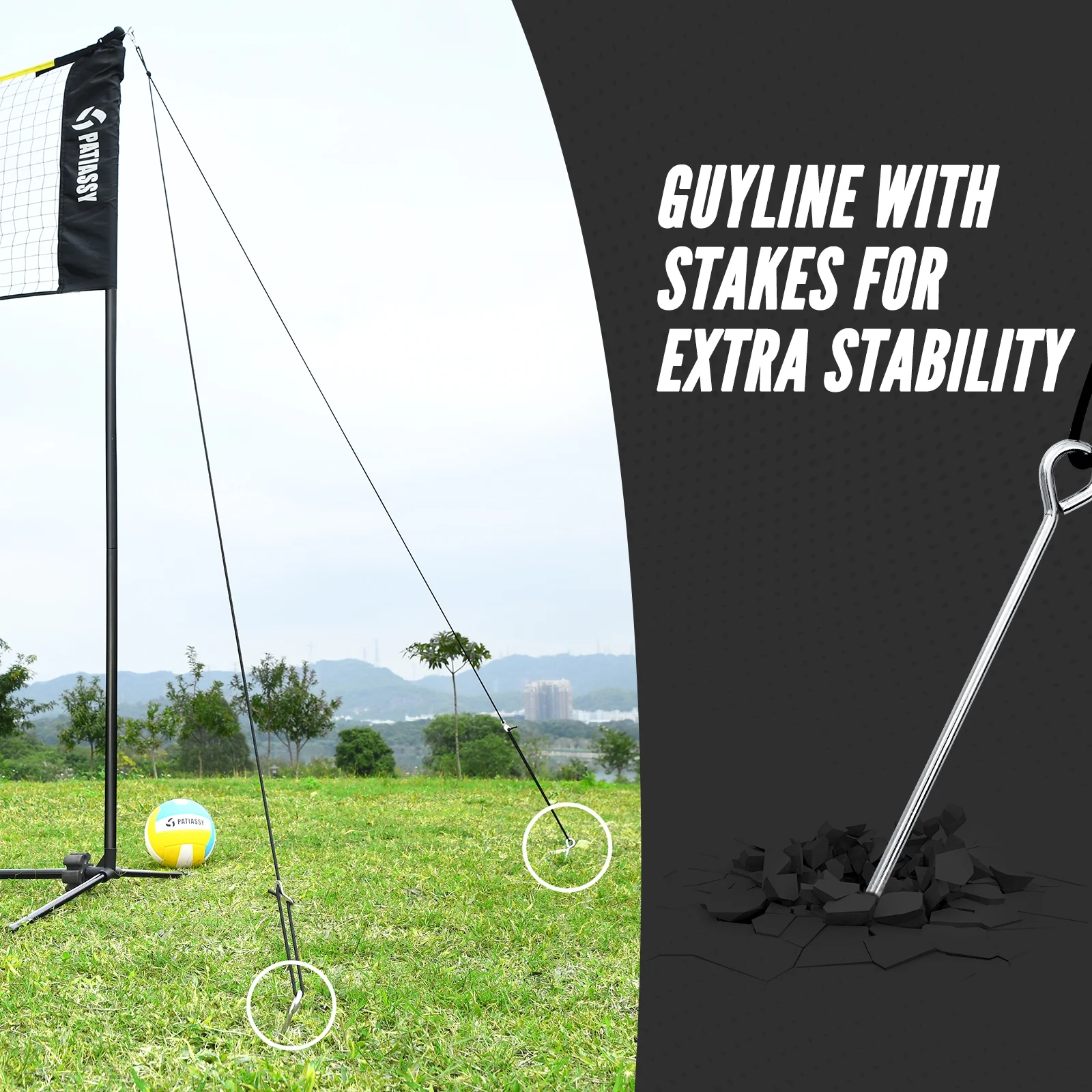 - Enhanced Stability: You could use the set in the backyard, driveway, park or any flat area. Designed for maximum stability in different ground conditions, the set comes with durable guylines and stakes which ensure the net remains tensioned
