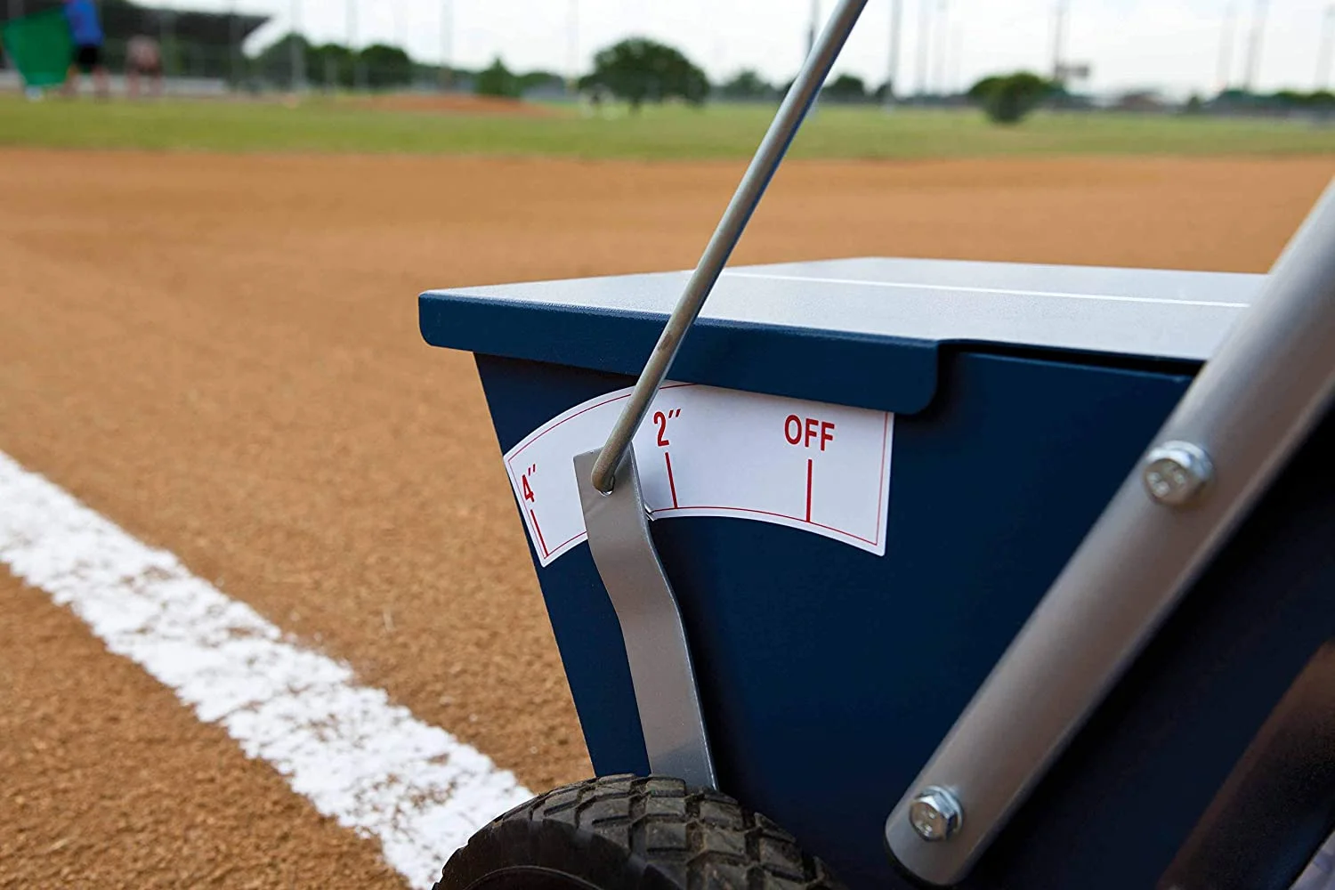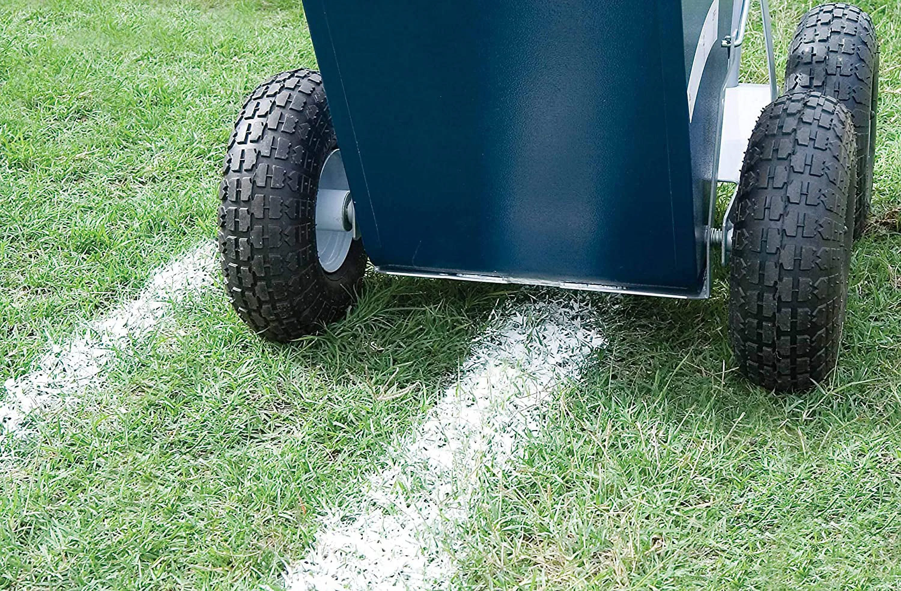 Set the boundaries for practice and game time. The Alumagoal Heavy Duty 100lb Dry Line Marker is among the most durable line markers on the market. The all structural steel with 11 gauge frame and 18 month make it a must have. There s an 18 gallon galvanized steel bucket steel axle bushings and 4 pneumatic tires that measure 3.5"W x 10" in diameter. SKU: ATCO1390.