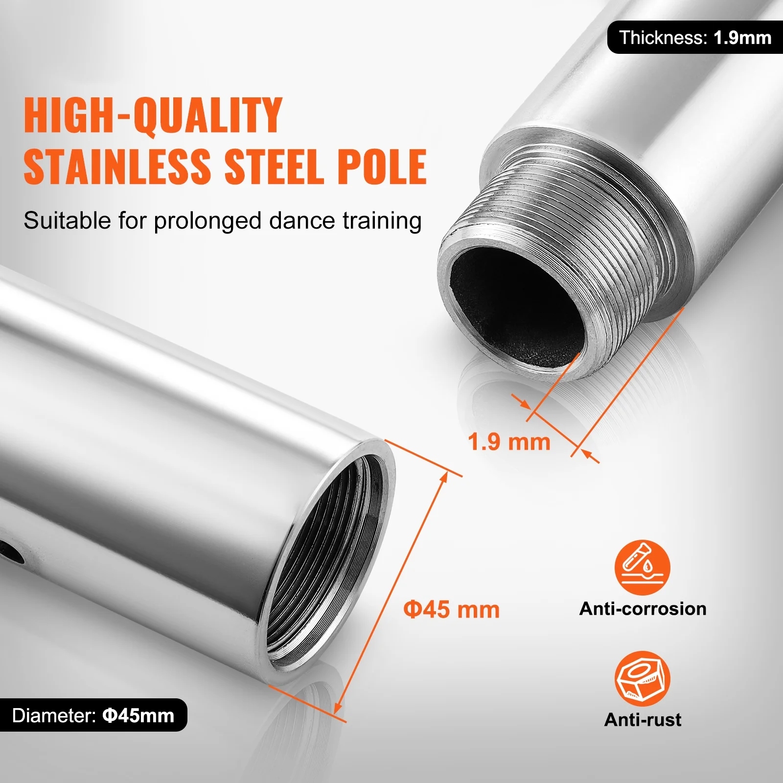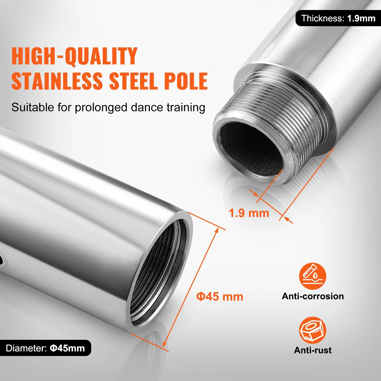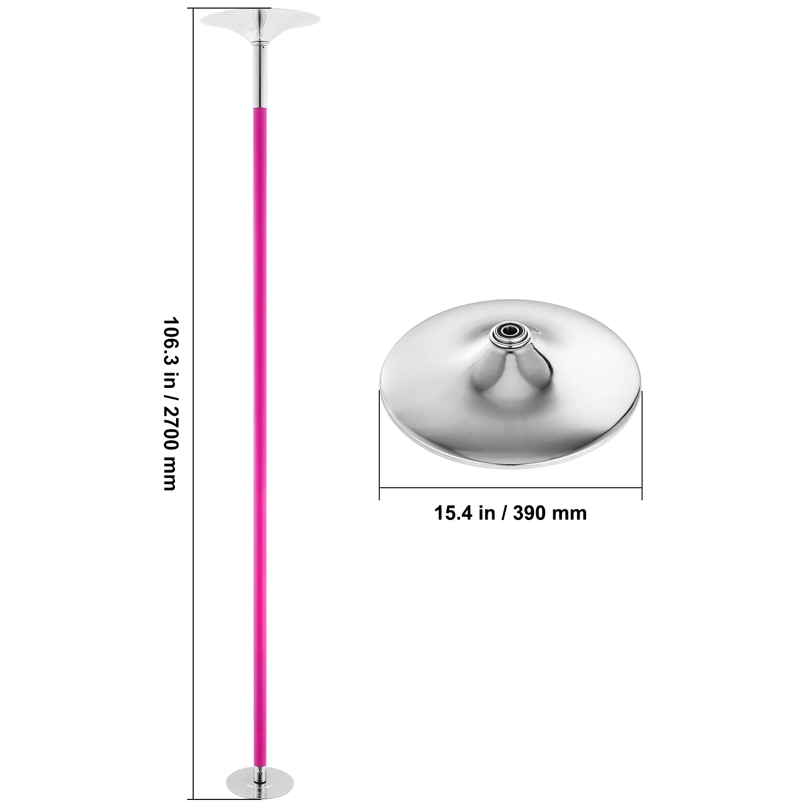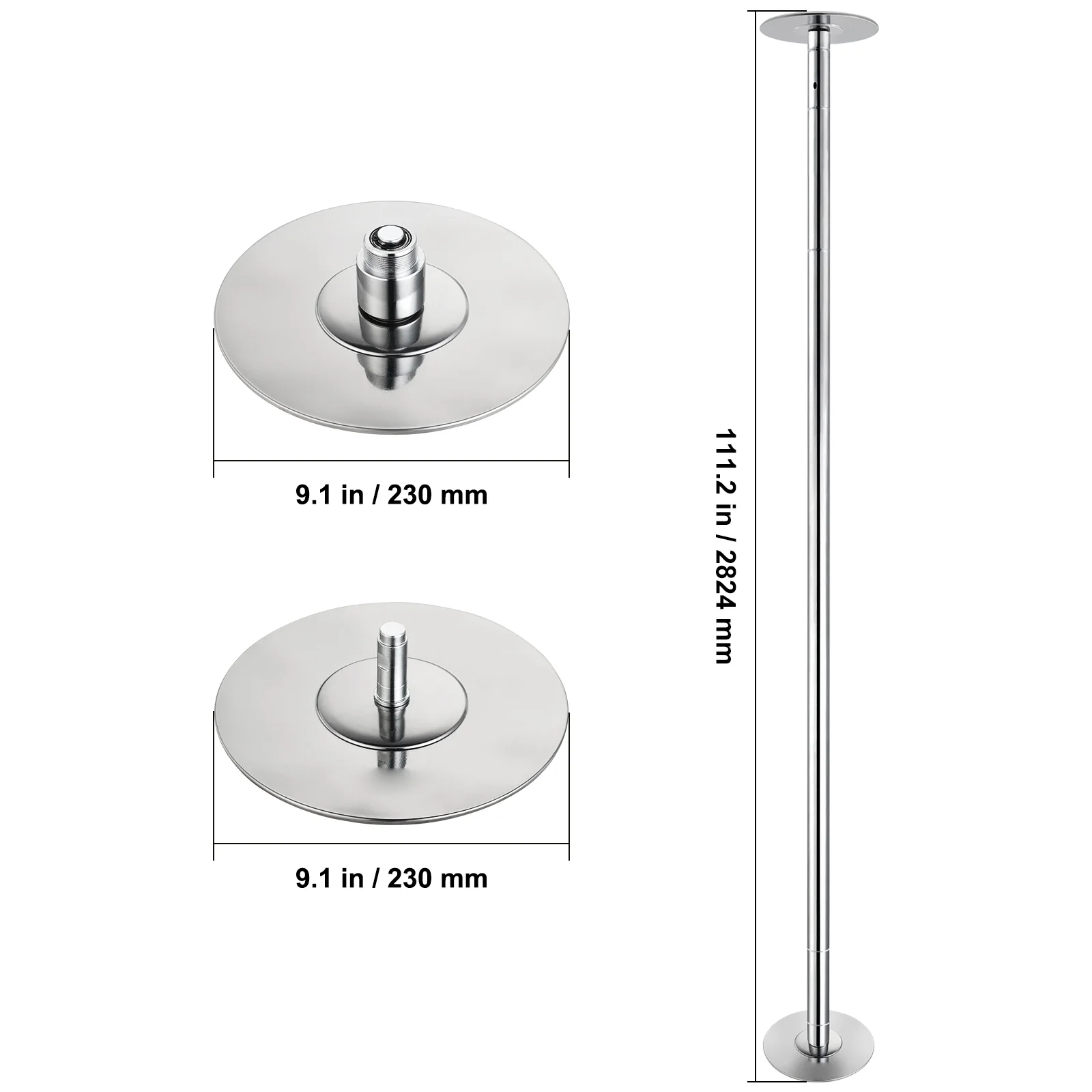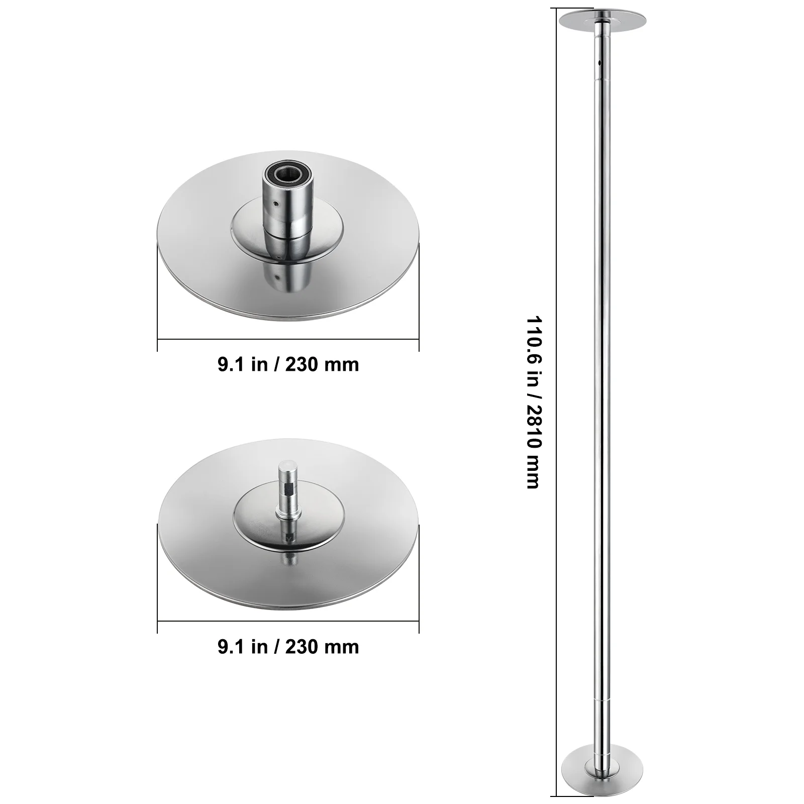 KFFKFF Expert Dance Pole, Rotating and Stationary Dance Pole Set, Detachable Portable Pole, 45mm Robust Stainless Steel Pole, Fitness Pole with Adjustable Height, Suitable for Workout Home, Silver