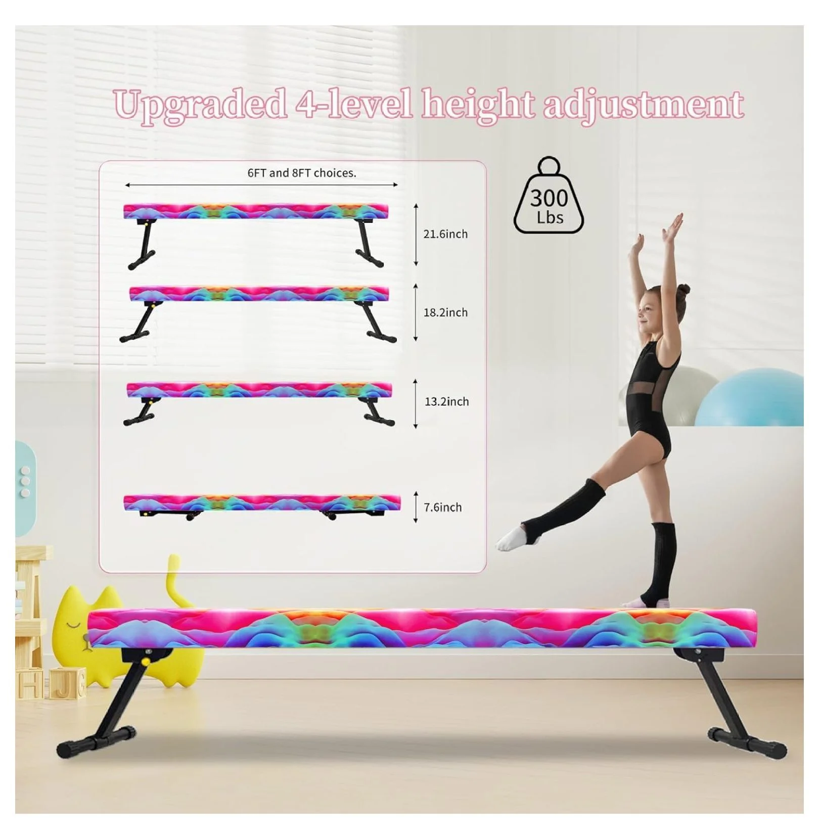 - ��FOUR HEIGHT OPTION��Perfect Design gym beam for beginners and training level 7 or below.8ft in length,4�� width .Floor beam height 7.5�� and Adjustable height from 13.4��,18.5��,22.5�� perfect for turning, walkover, jumping, leaping, handsprings and more