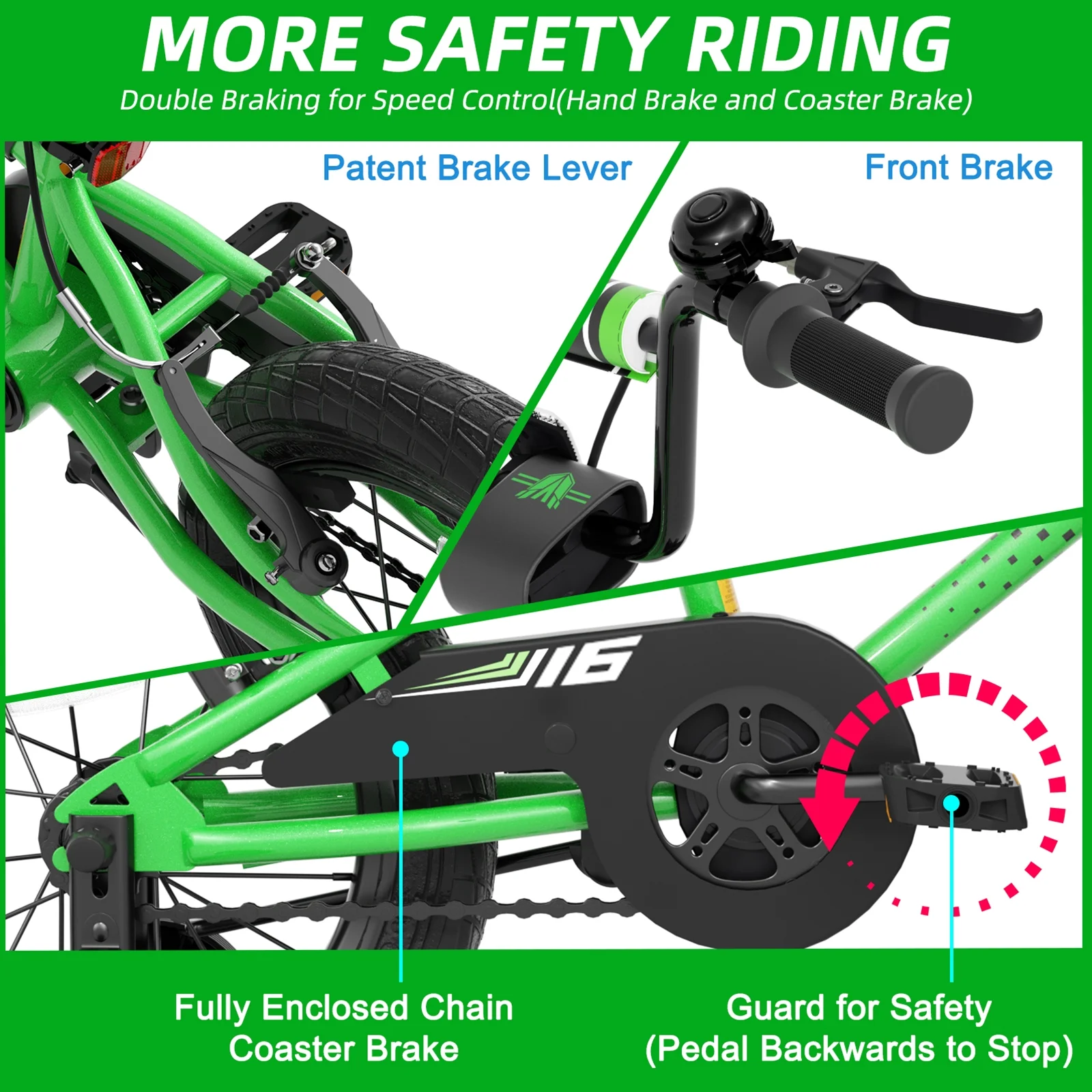 - Coaster Brake for Safety �C Simple coaster (pedal) brakes ensure easy stopping power, ideal for young riders still mastering hand brakes.