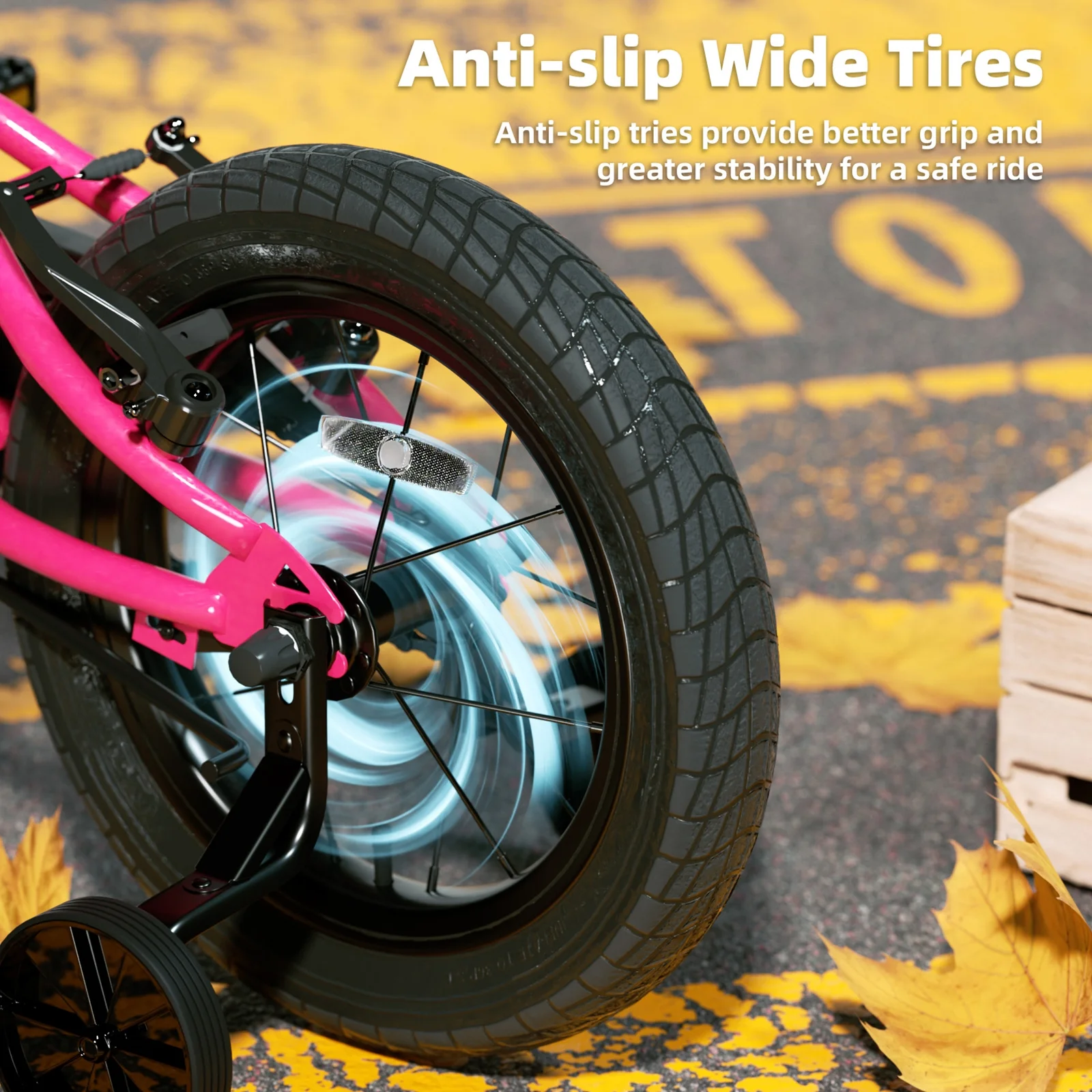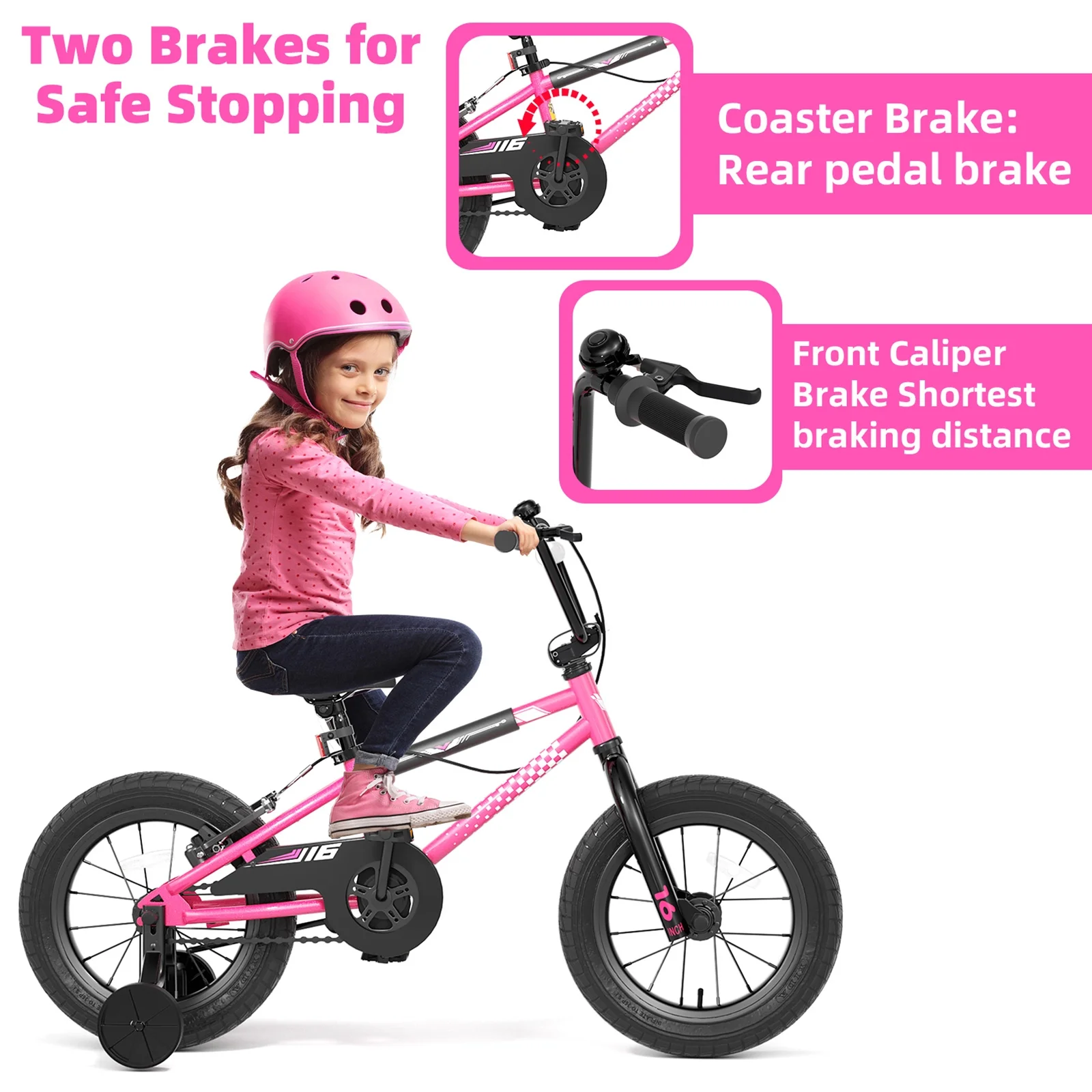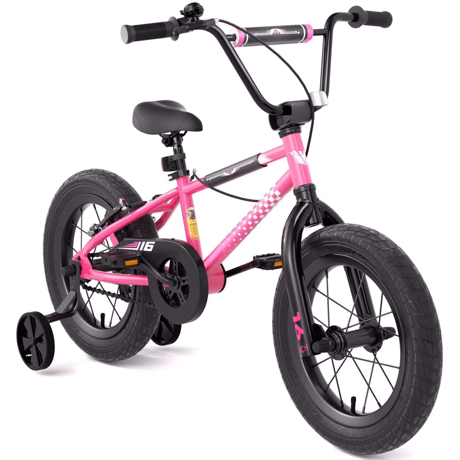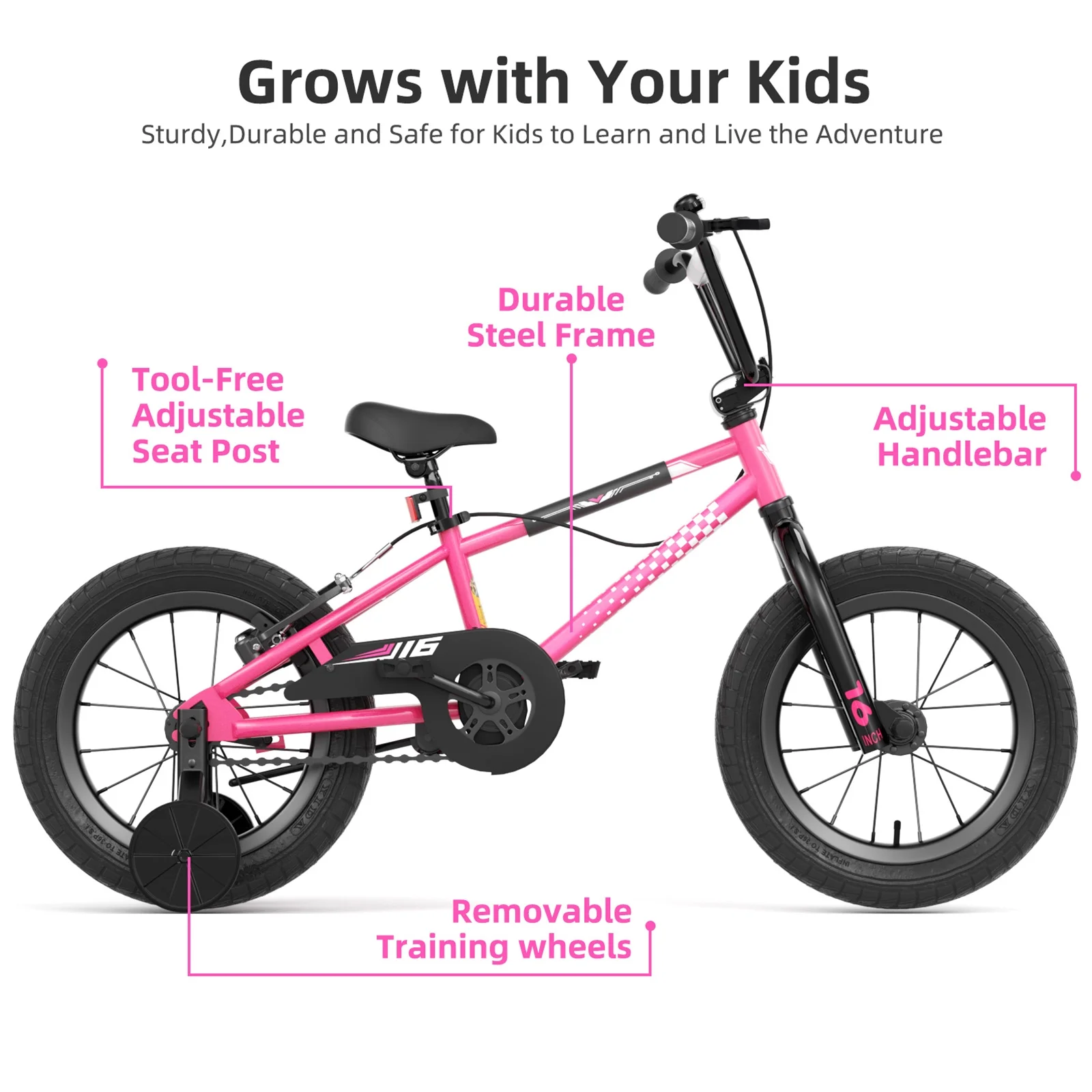 - ?Durable BMX Style Design �C Made with sturdy carbon steel frames, these bikes feature a classic BMX look with vibrant pink/green colors, perfect for kids aged 3-8.