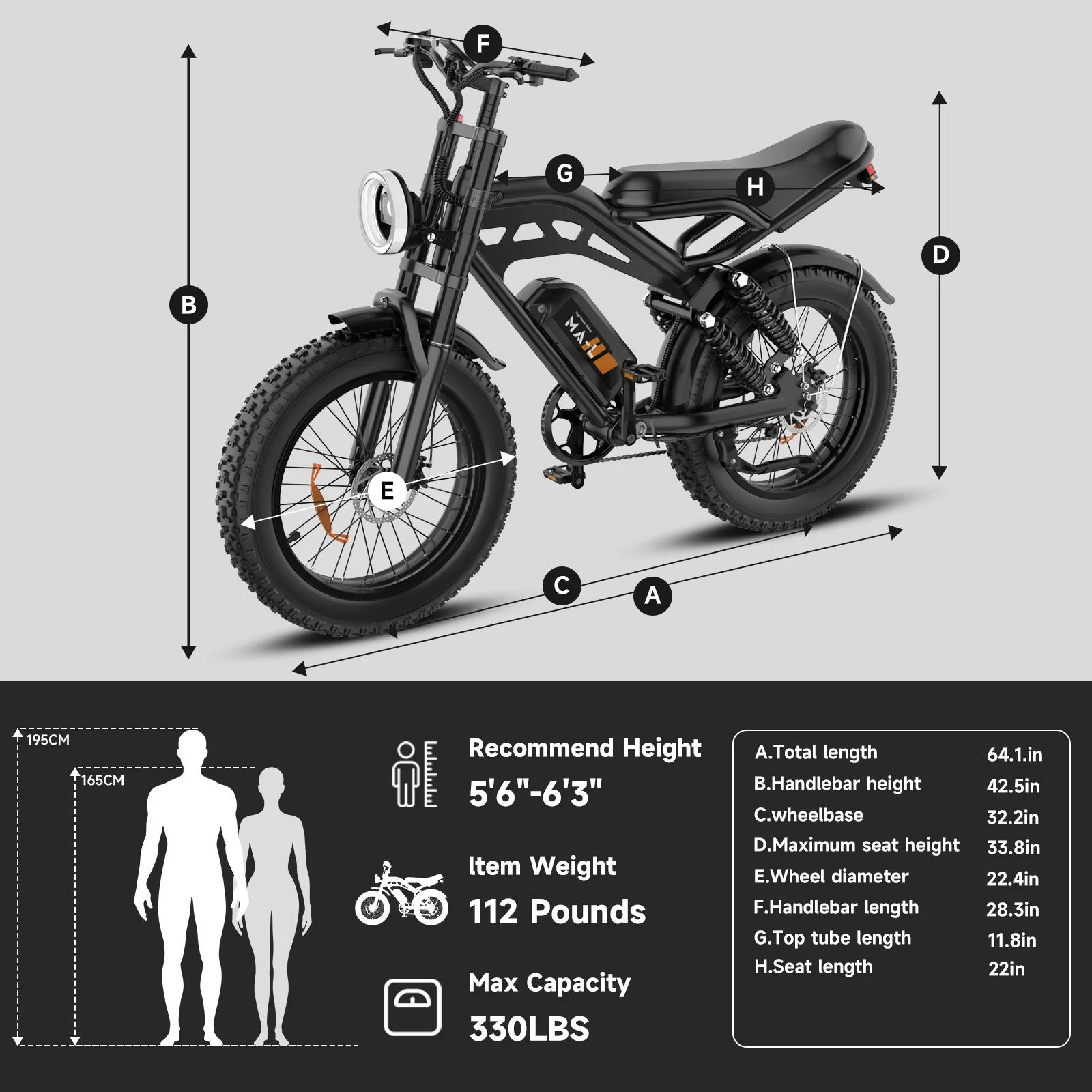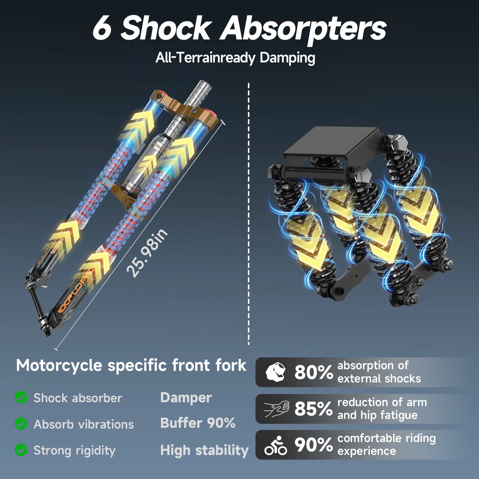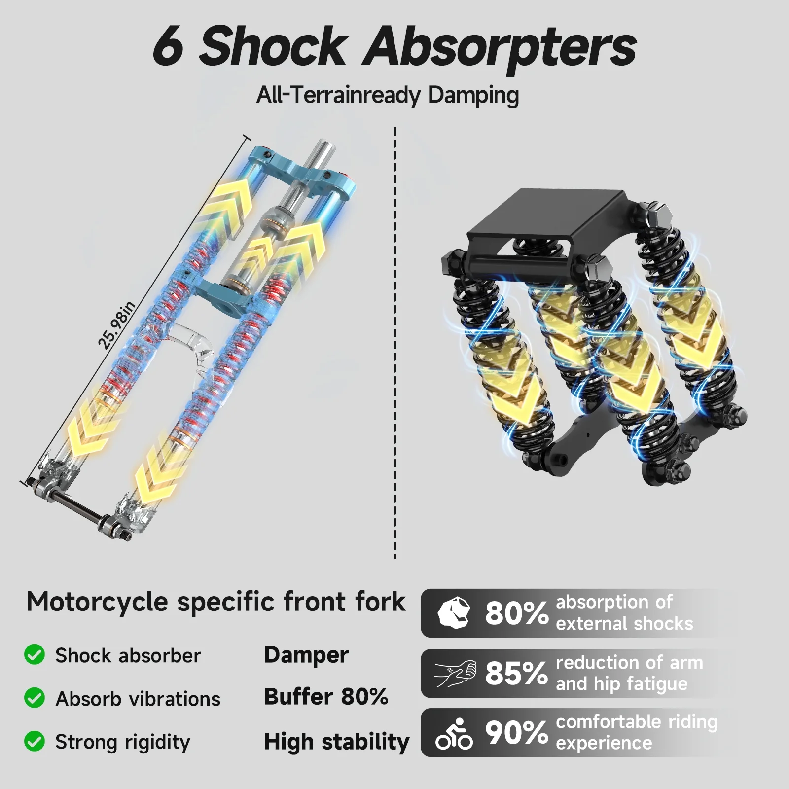 ??Dual Suspension System for Ultra Comfort: Engineered with a heavy-duty front fork suspension and rear quad spring shocks, the MA-L offers enhanced shock absorption. Whether you're cruising on uneven surfaces or need more control at speed, this dual system helps reduce bumps and fatigue.