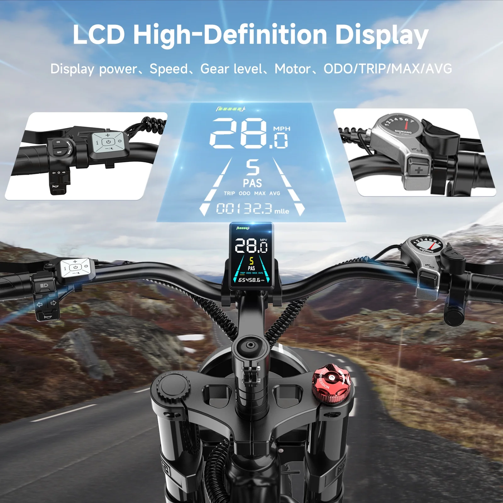 ??Smart LCD Display + Integrated Safety Features: Monitor your speed, battery level, trip distance, and more with the LCD display. The system also includes integrated LED front light, and a power cut-off brake system for added safety and visibility.