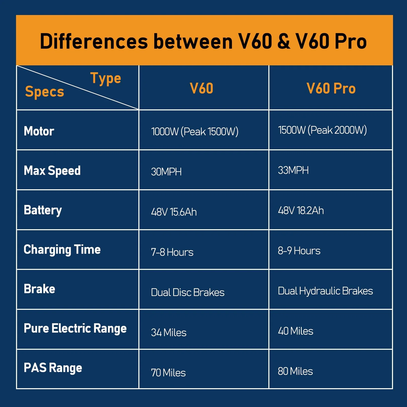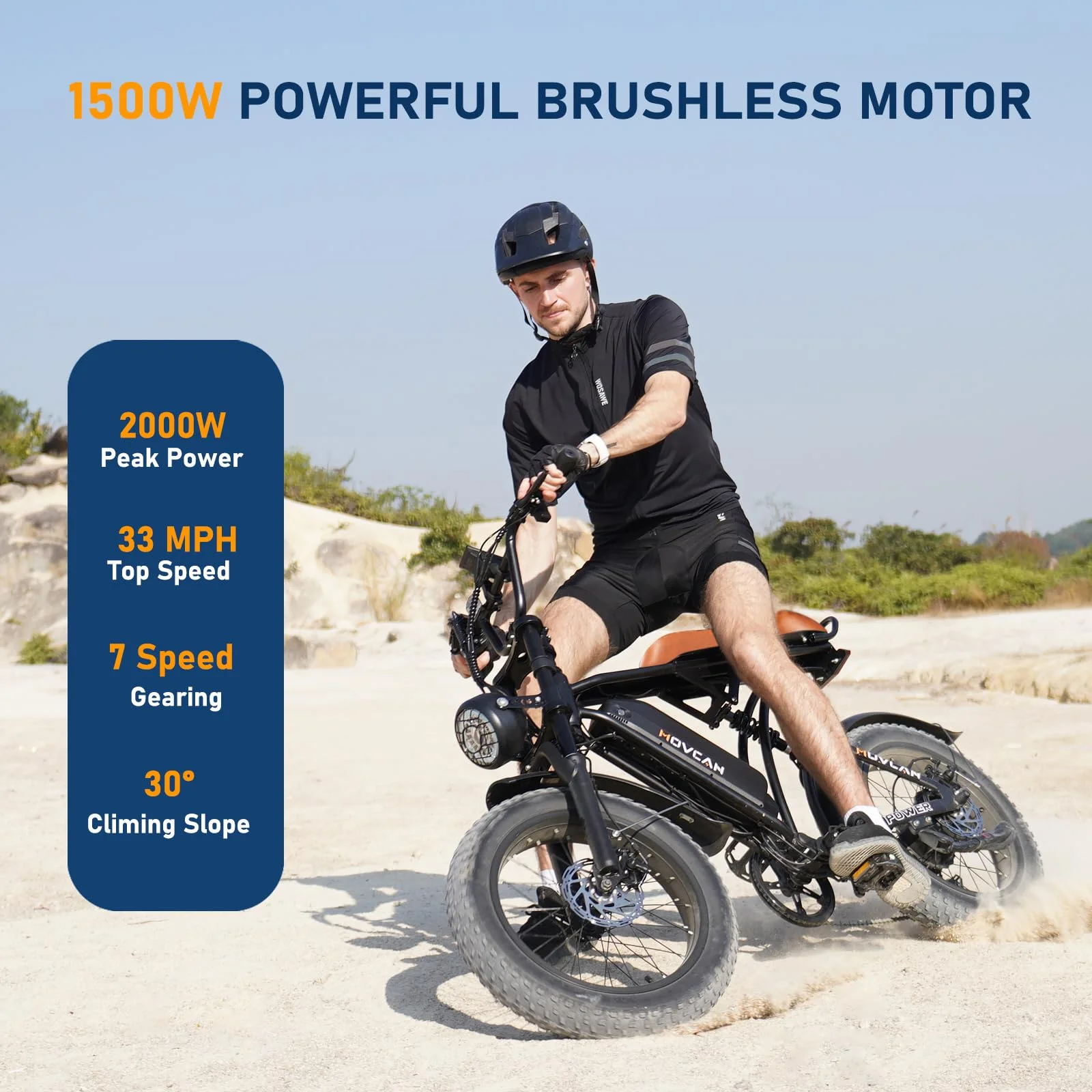 ??1500W Powerful Motor & 33MPH Max Speed - Built-in a 1500W brushless hub motor, Movcan V60 Pro electric bike for adults can reach a top speed of 33MPH and easily overcome 30�� steep hills. Compared with 500W/750W motor ebikes in the market, our 1500W powerful electric bike adult is bound to provide more torque and power.