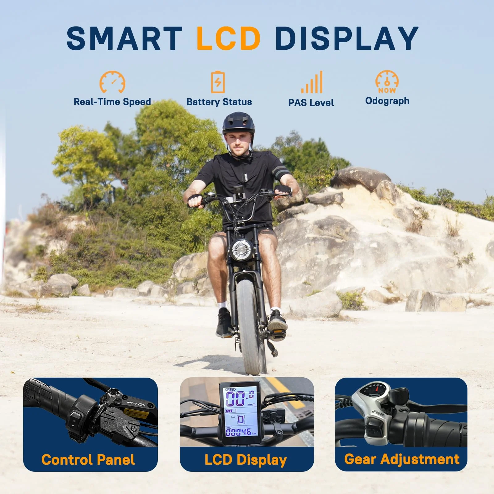 - Smart LCD Display - You can get real-time speed, battery status PAS level and mileage of your ebike at a single glance with LCD display.