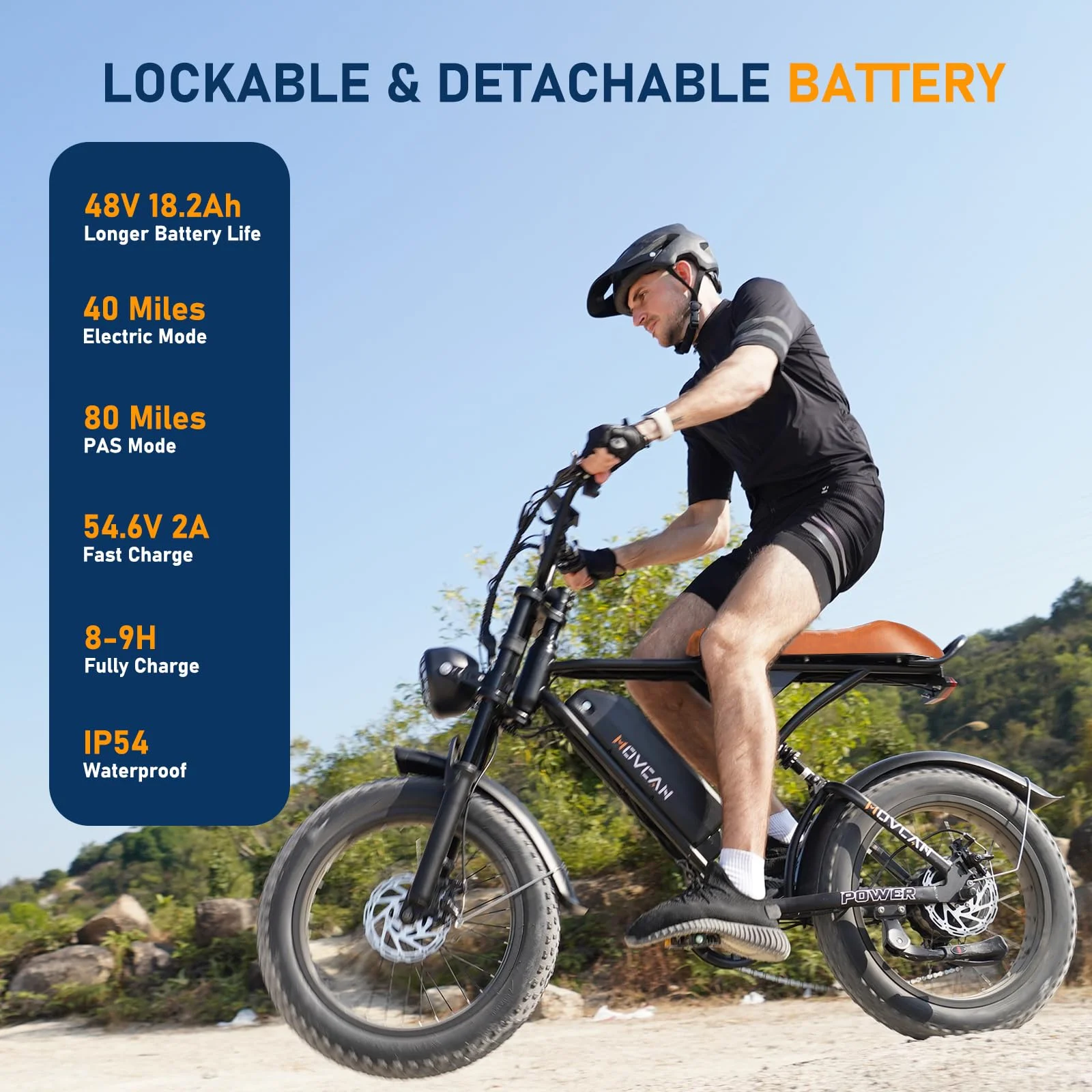 ??48V 18.2Ah Removable Battery & 80 Miles Longer Distance - Equipped with 48V 18.2Ah large Li-ion battery, our electric motorcycle for adults ensures a longer ride time, providing up to 80 miles range per charge (PAS mode) and 40 miles in pure electric mode. The removable battery makes it easy to recharge, whether your are at home or outside.