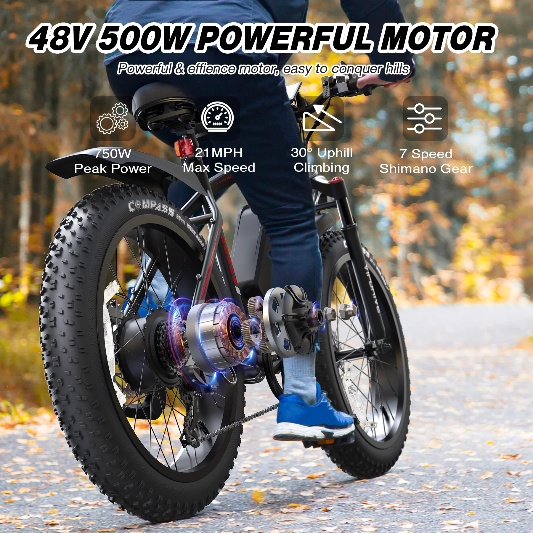 - ?��Powerful Performance���� The 500W (peak 750W) brushless motor delivers efficient power output, reaching a top speed of 25 MPH and easily conquering 30�� inclines, making your riding experience full of excitement and fun.