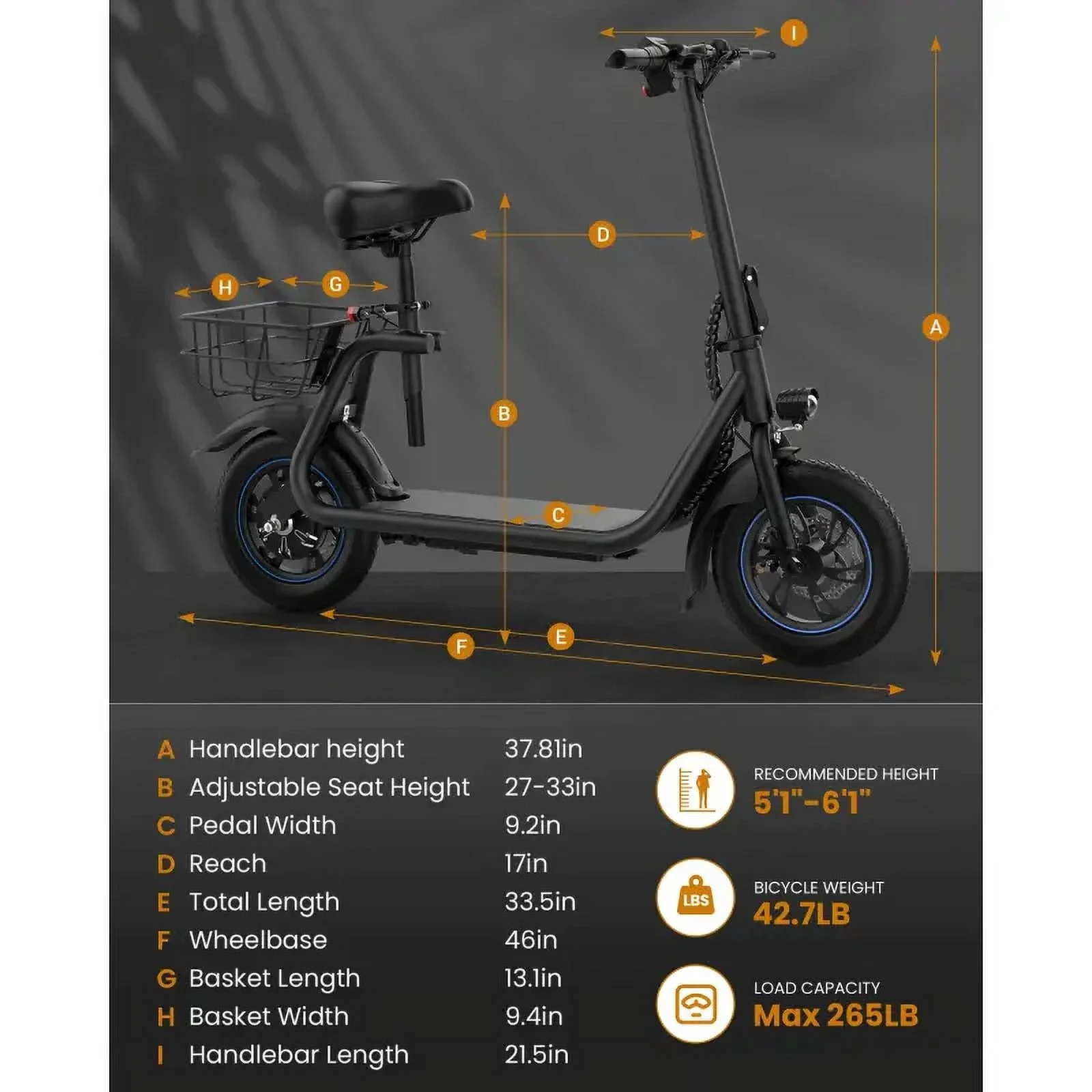 - SPACIOUS STORAGE: Featuring a large detachable middle basket and a small rear basket, this bike offers ample storage space, making transportation of bulky items a breeze. Wide Deck: The 9.5" wide deck offers plenty of room for your feet or even a small pet. Shock-Absorbing Tires: Equipped with thick and sturdy 12" tires that absorb most shocks, providing a smooth and comfortable riding experience.