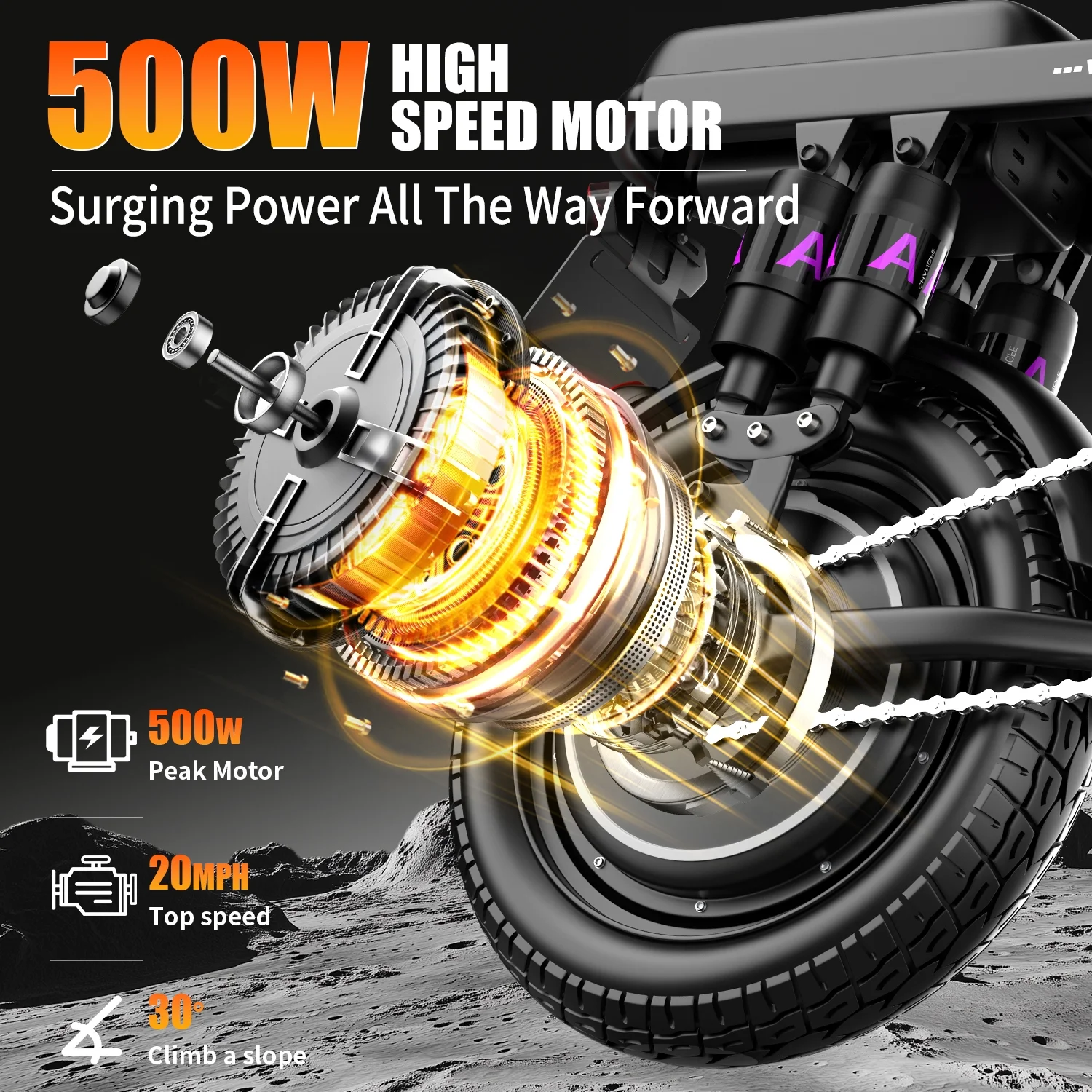 - The adult electric bike adopts multiple shock absorption systems and dual braking systems, and is equipped with 14" pneumatic tires. You'll enjoy a smooth, comfortable ride even on bumpy roads.
