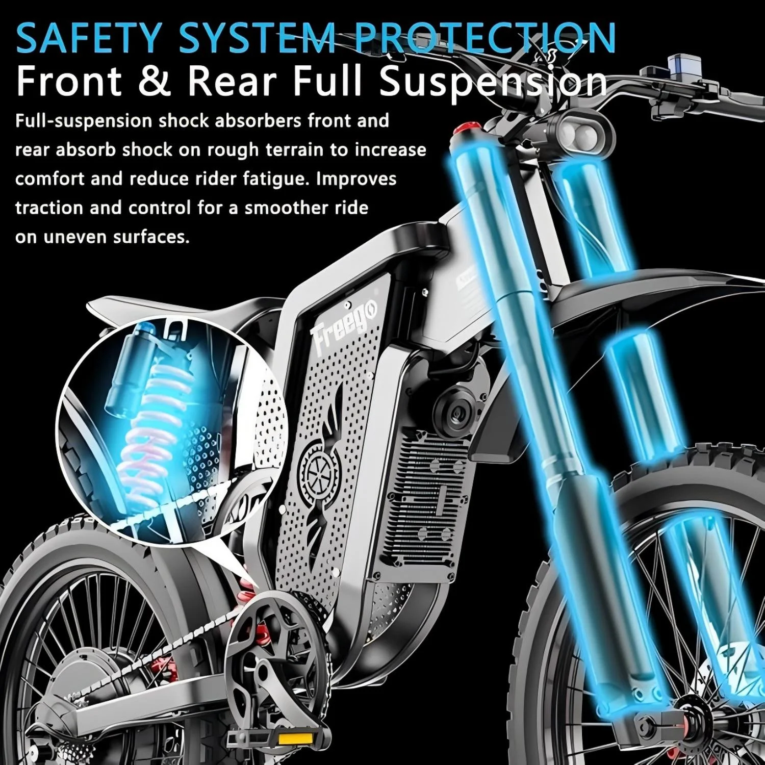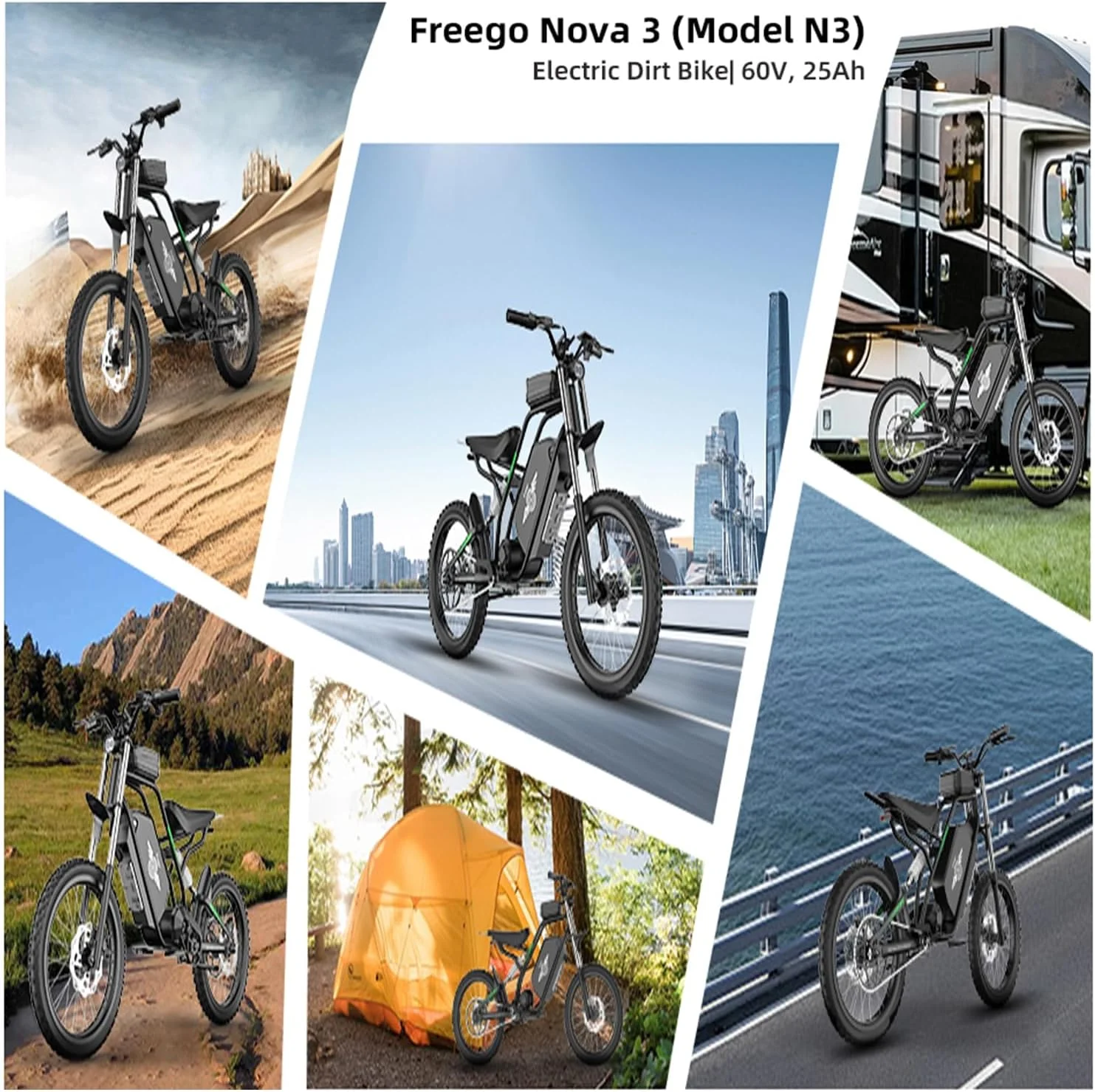 40MPH Electric Bicycle, Dual - Mode Electric Dirt Bike 3000W(Peak)Freego Nova3 Electric Motorcycle Bike for Adults, Mid - Drive Motor, 60V/25ah Battery, 17x3.15 Tire Full Suspension Hydraulic Brake