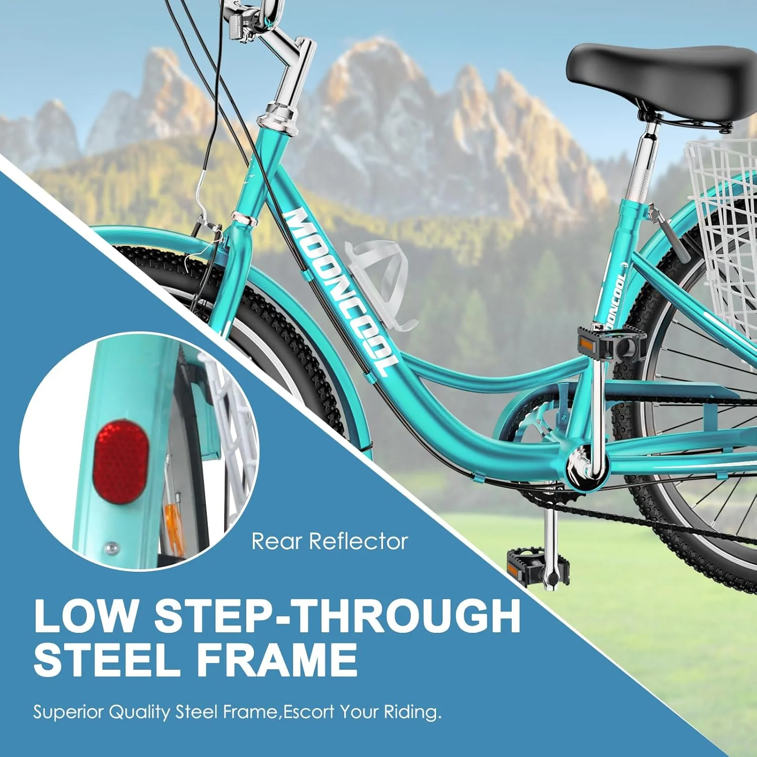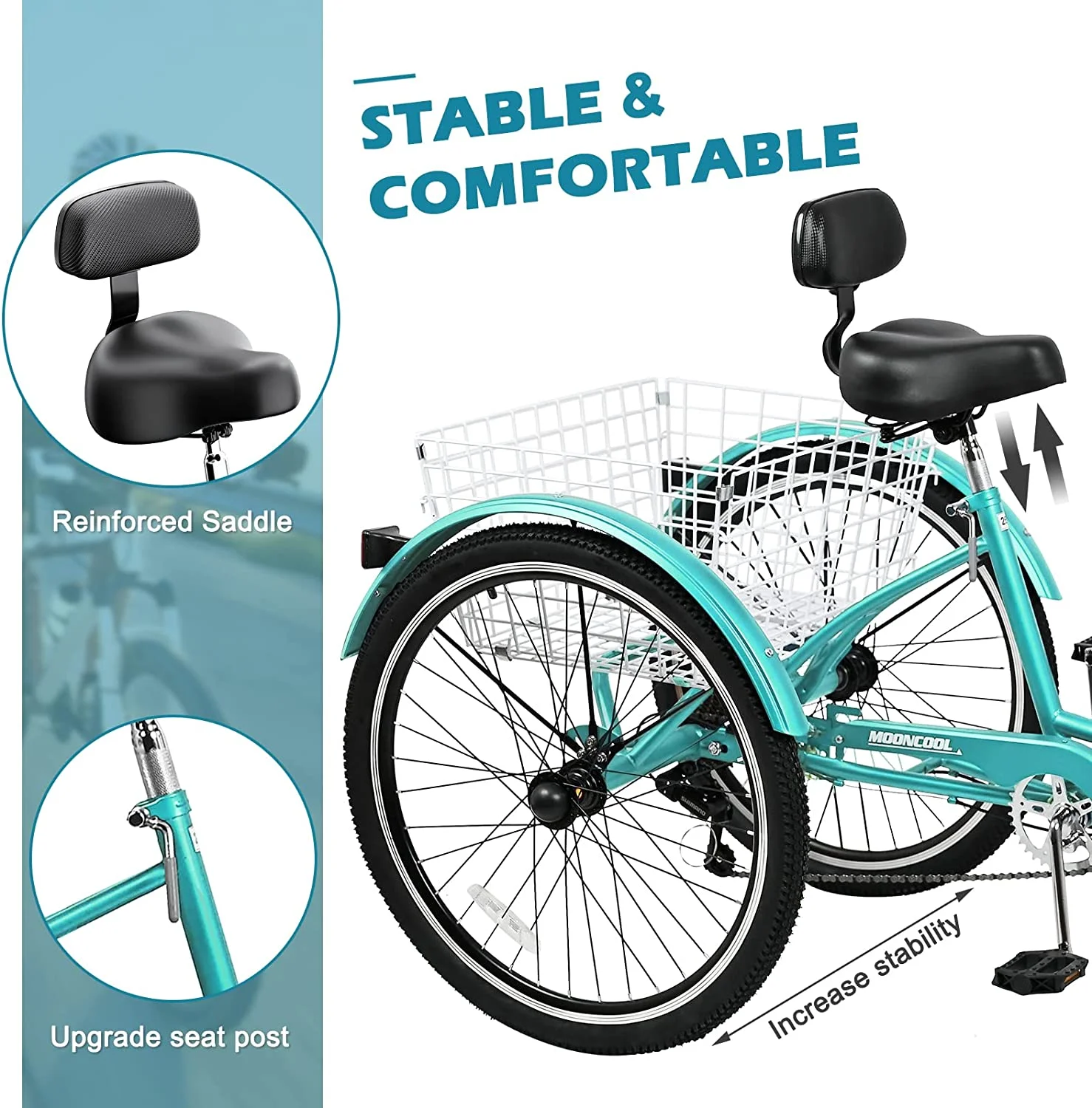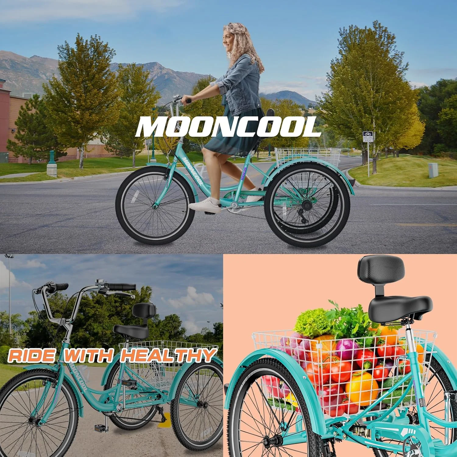 ��Practical Bicycle��: Mooncool tricycle will be a practical tool in your daily life. It can be used for recreation, shopping or exercise. You no longer need to worry about riding bicycle with many items. Comfortably for you enjoy riding around town, the beach, or on a bike path.