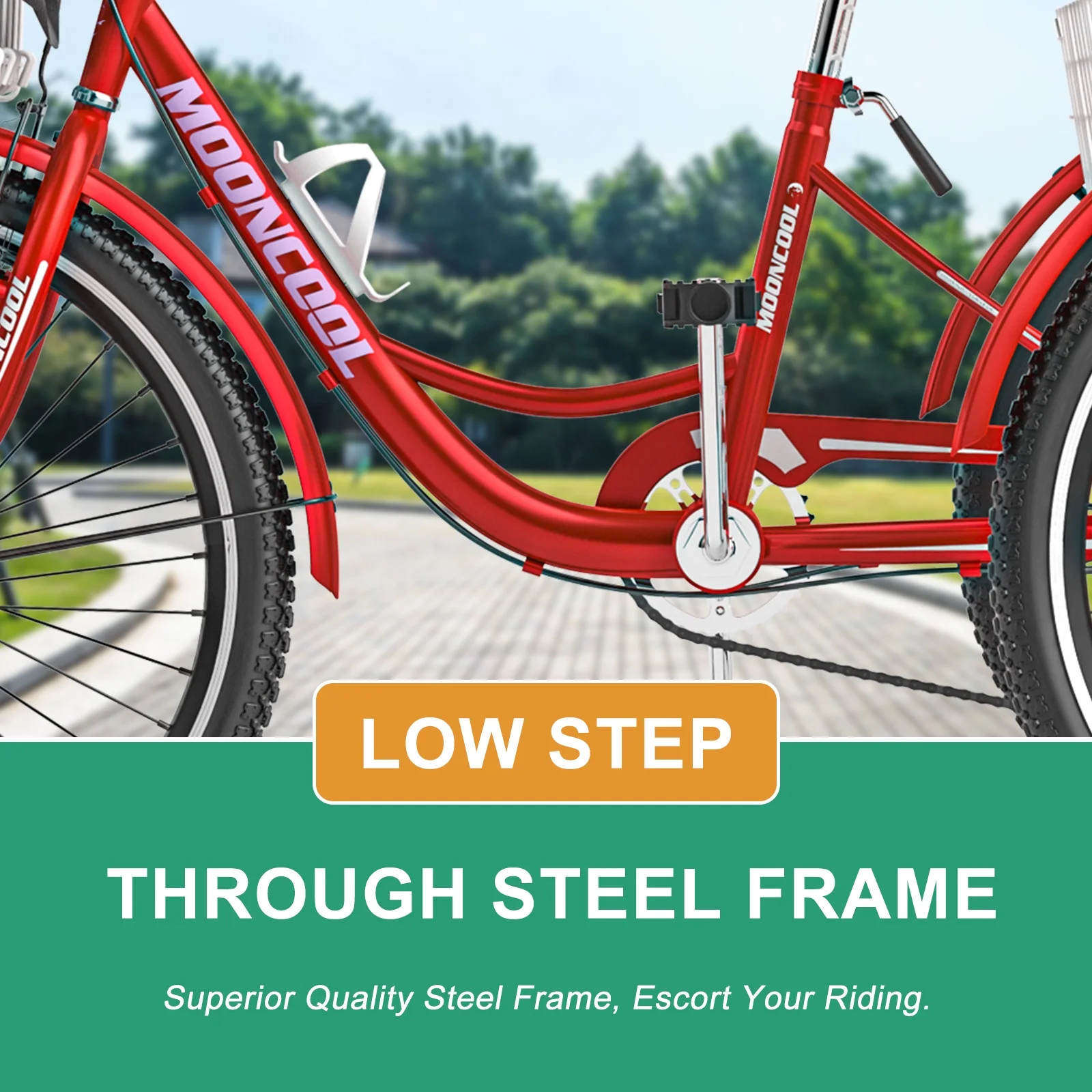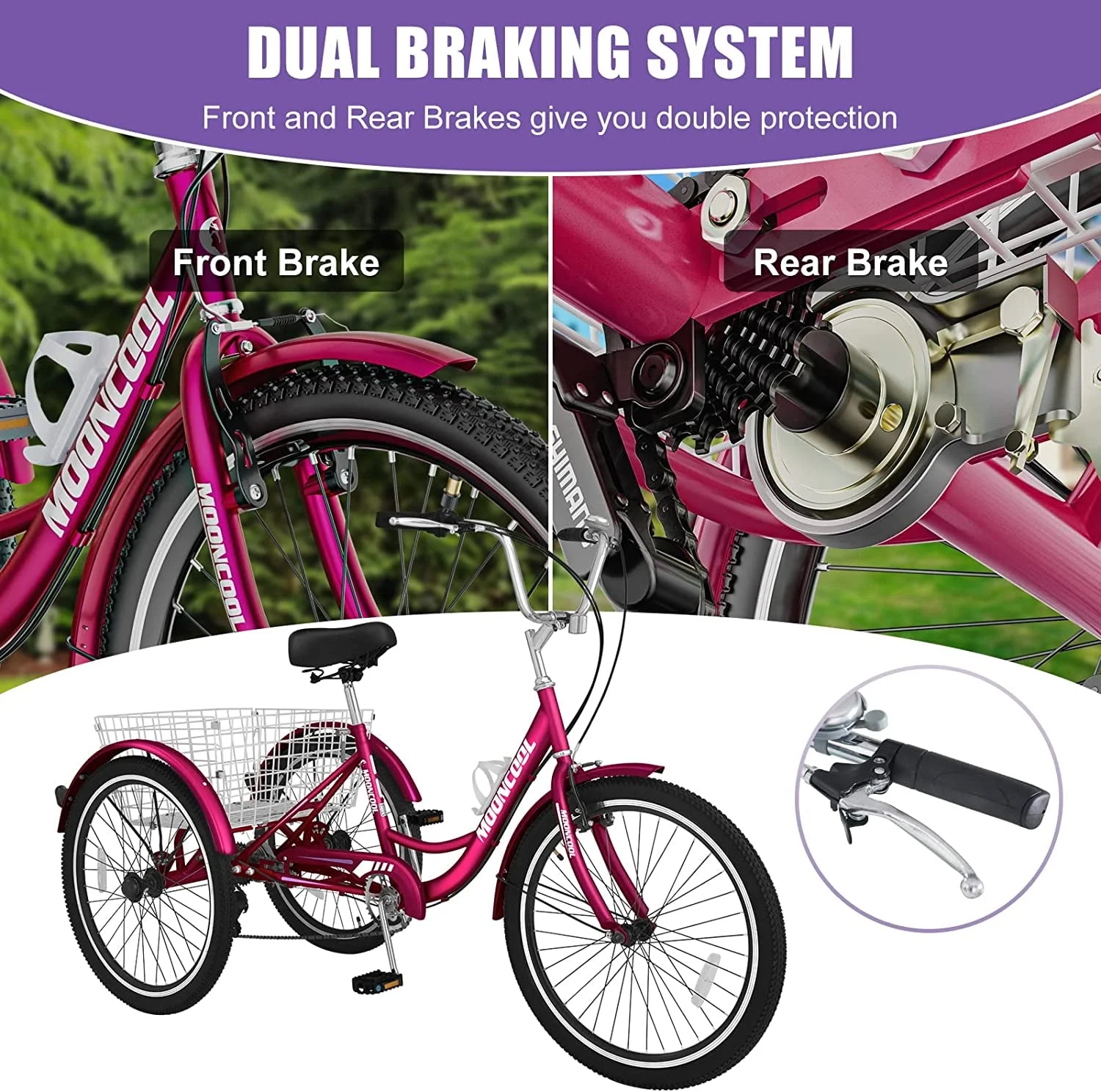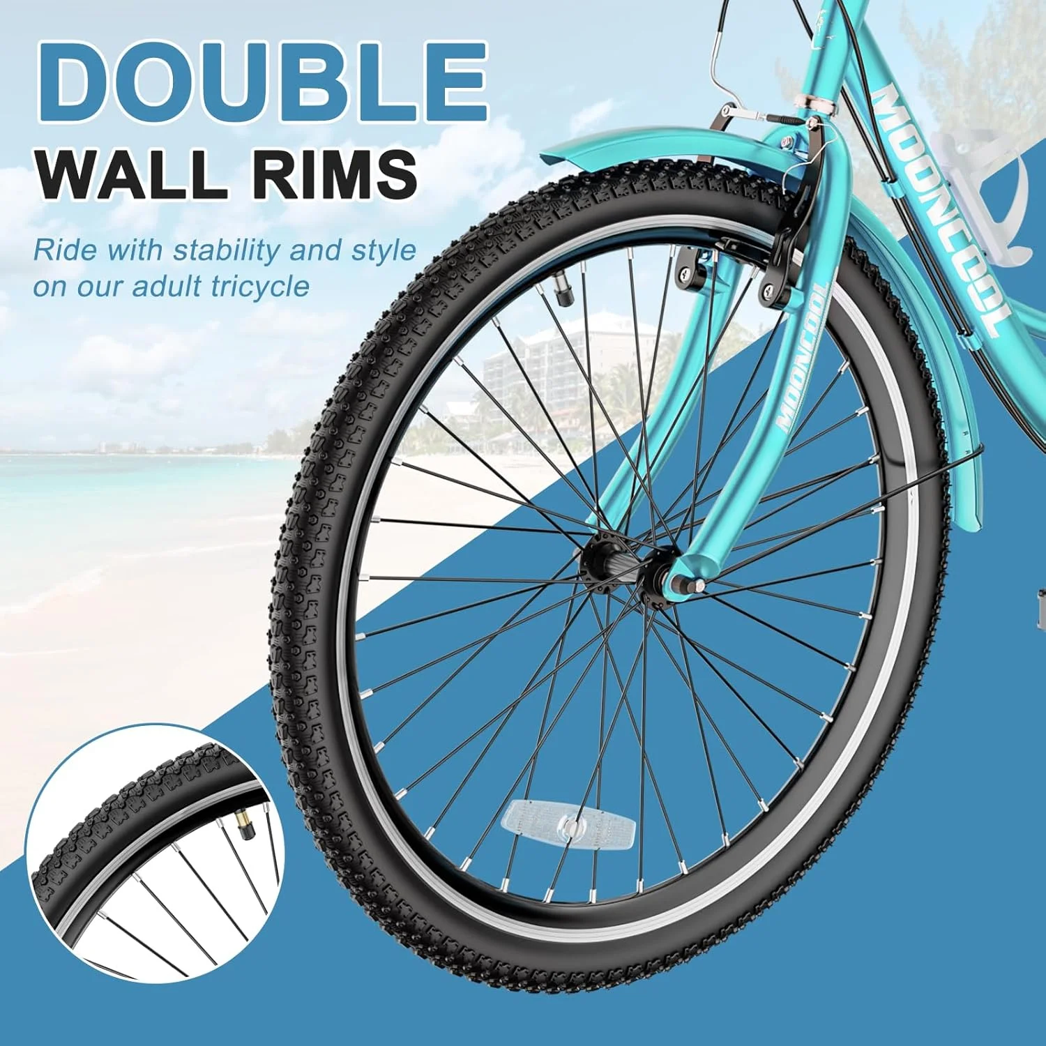 ��Practical Bicycle��: Mooncool tricycle will be a practical tool in your daily life. It can be used for recreation, shopping or exercise. You no longer need to worry about riding bicycle with many items. Comfortably for you enjoy riding around town, the beach, or on a bike path.