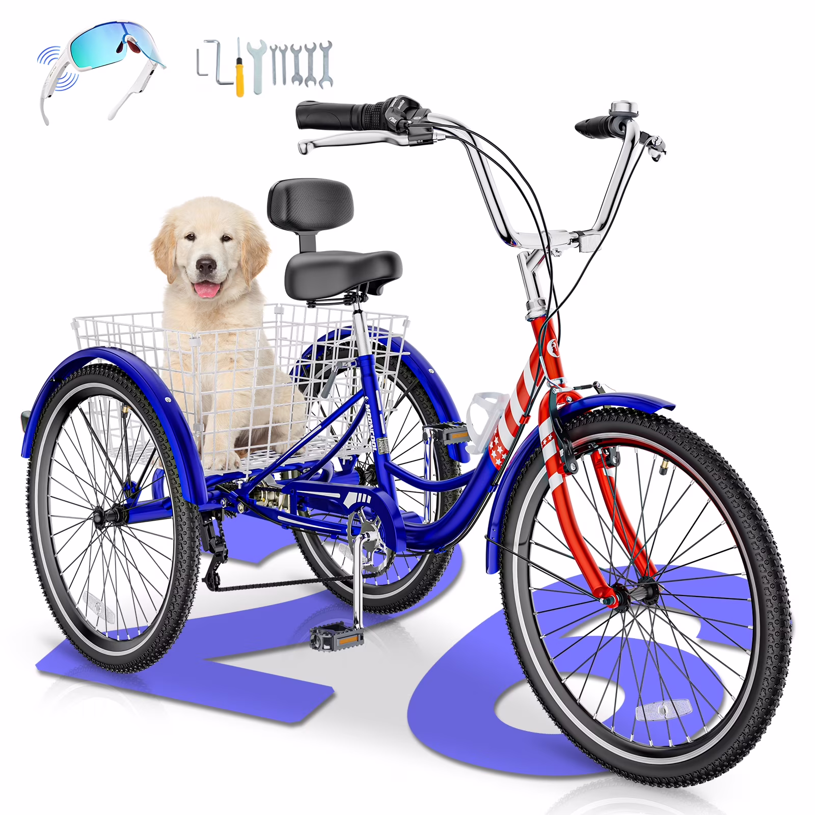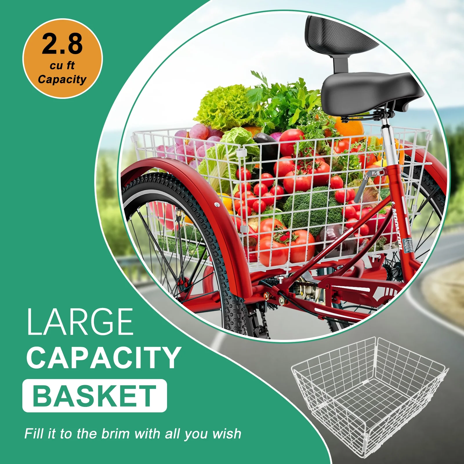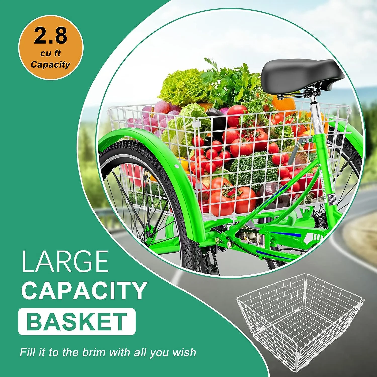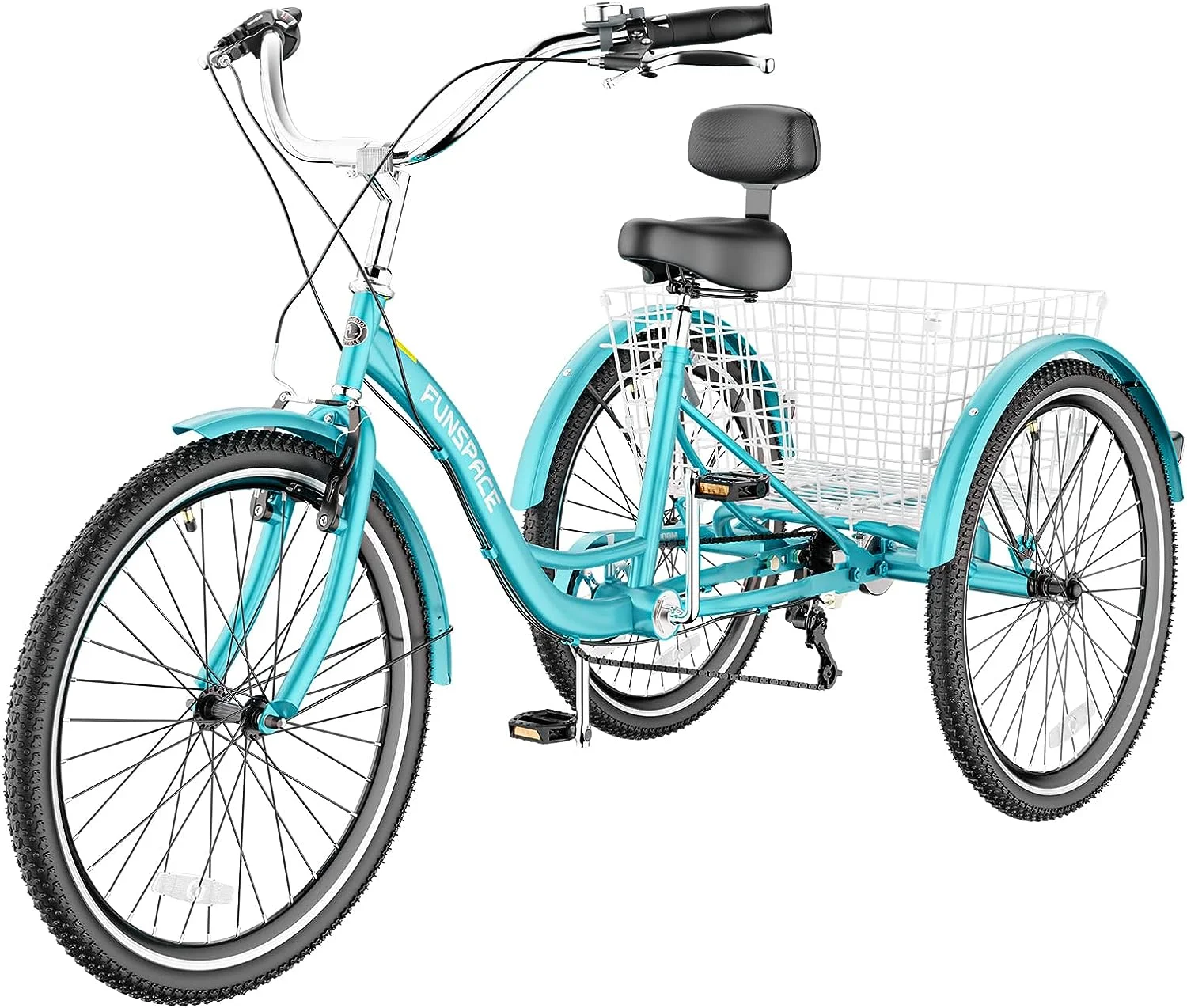 ��7-Speed Tricycle with Big Wheels & Fenders��: Equipped with three Upgraded big wheels with stylish full wrap fenders, it will make your bicycle clean and dry to the maximum extent.7-speed grip-twist shifters and the derailleur, providing a wide gear range and smooth shifting, making you more effortless and comfortable.The brake operation has quick response,can automatic reset,and has higher security.The pedal is updated which added the ball helps keep the ride light and smooth.