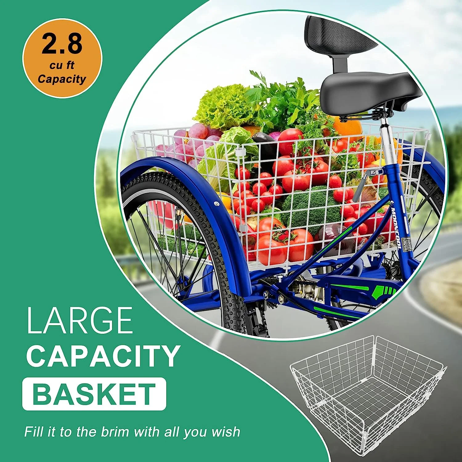 ��Large Capacity Basket��: The tricycle has a large rear basket, which are convenient for shopping and carrying enough thing as you want. Folding basket is also perfect for picnics or storing groceries. Soft padded seat makes you feel more comfortable.