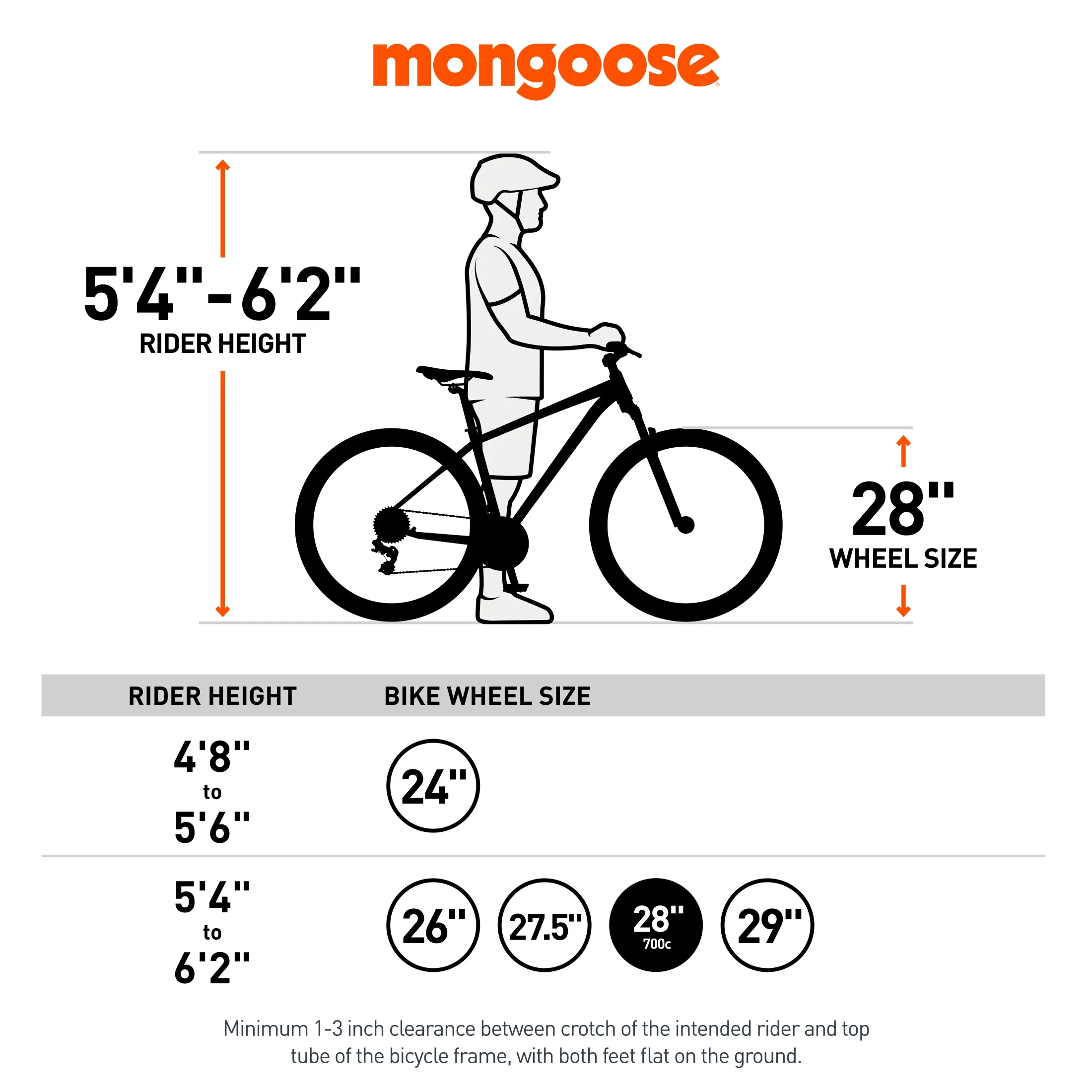 - Mongoose hydroformed aluminum gravel frame is lightweight and durable, with go anywhere capabilities. 700c wheels fit riders 64 to 74 inches tall.