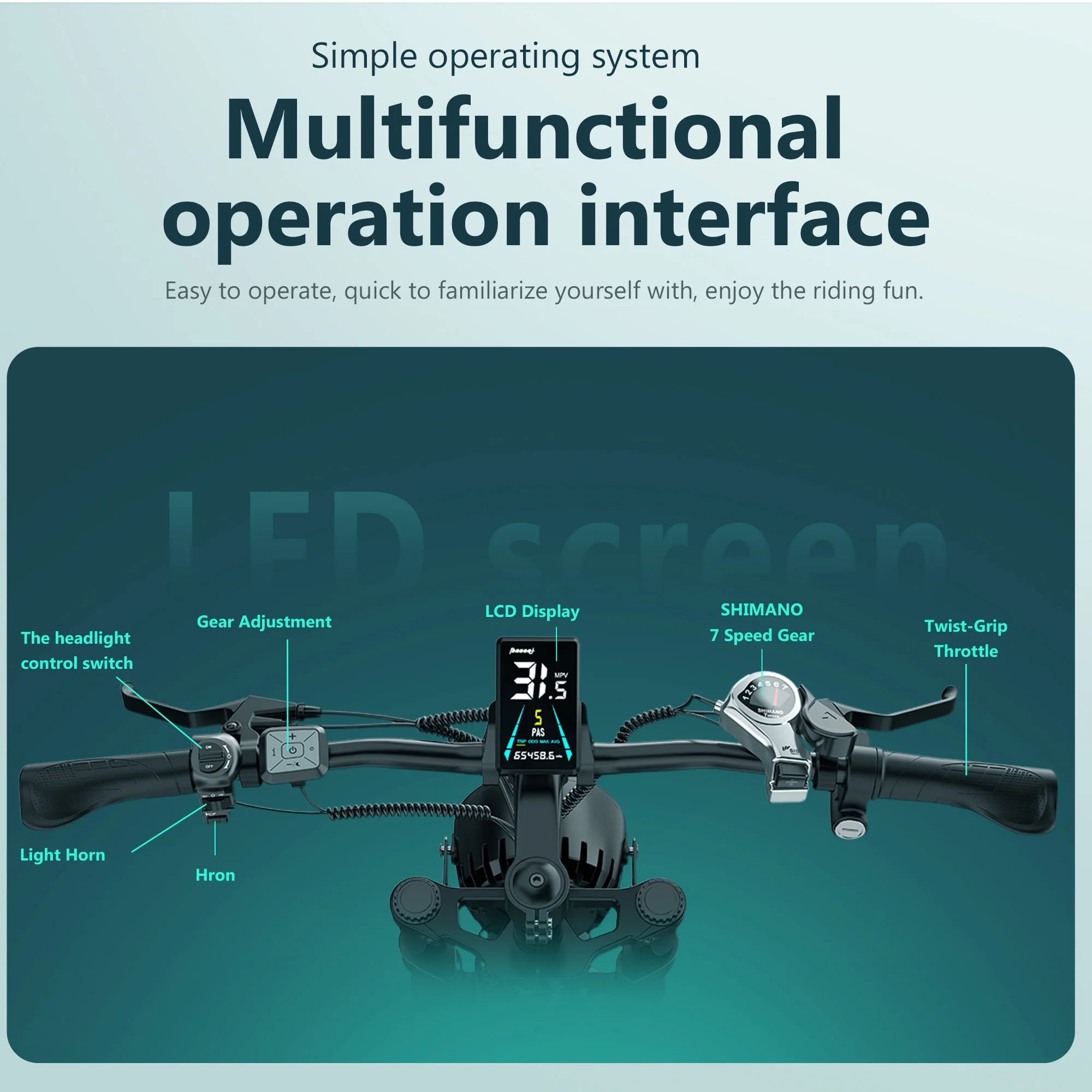 ???[LCD Display]: Our ebike has a smart LCD display! It shows speed, power level, and distance. Ride smarter, track your ride!