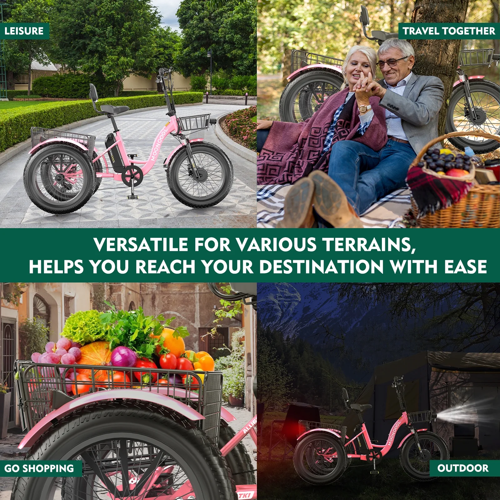 20" x 4" Fat Tire Electric Tricycle for Adult, 7 Speeds Electric Trike 48V 500W Motorized Tricycle, Electric Three Wheels Bicycle for Senior, Aluminum Frame & Rear Basket, 16mph
