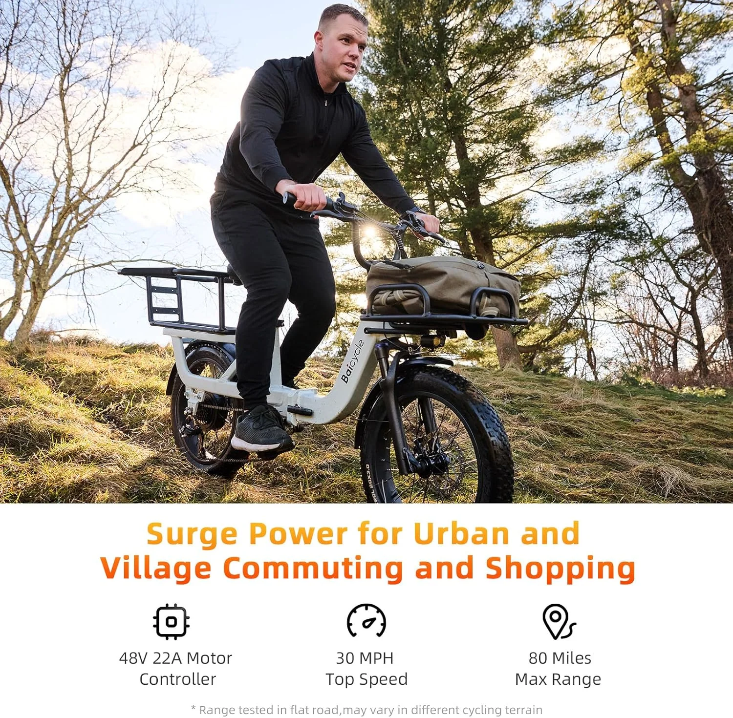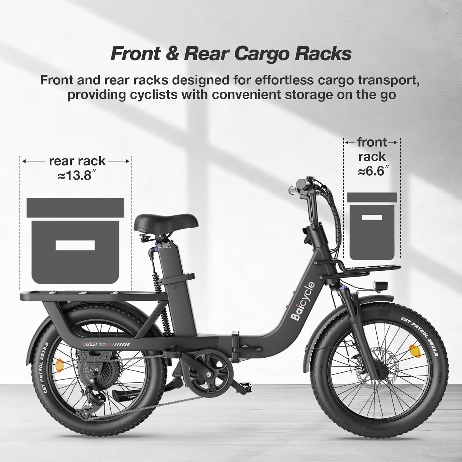 - Rides on 20-inch fat tires, providing enhanced traction and stability.