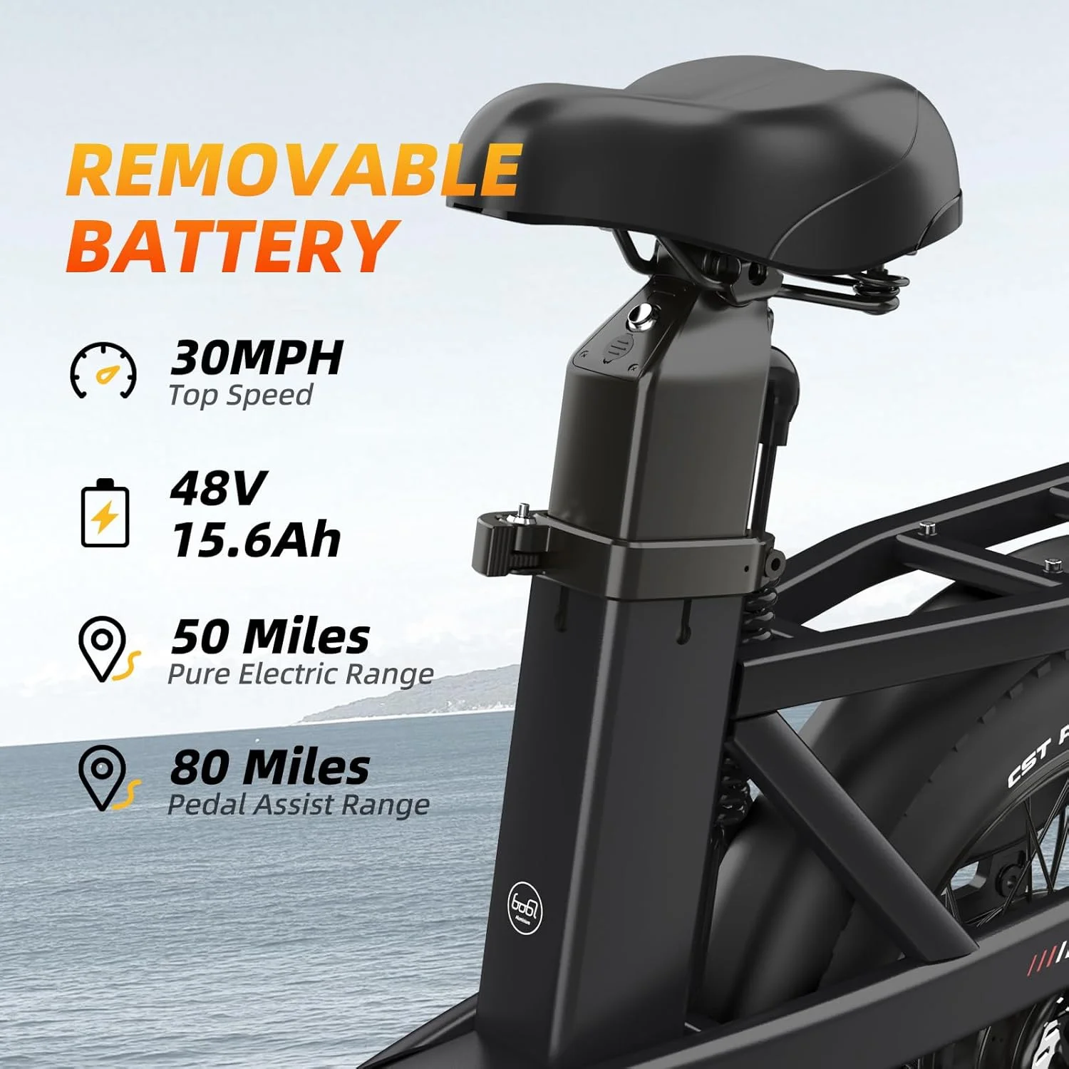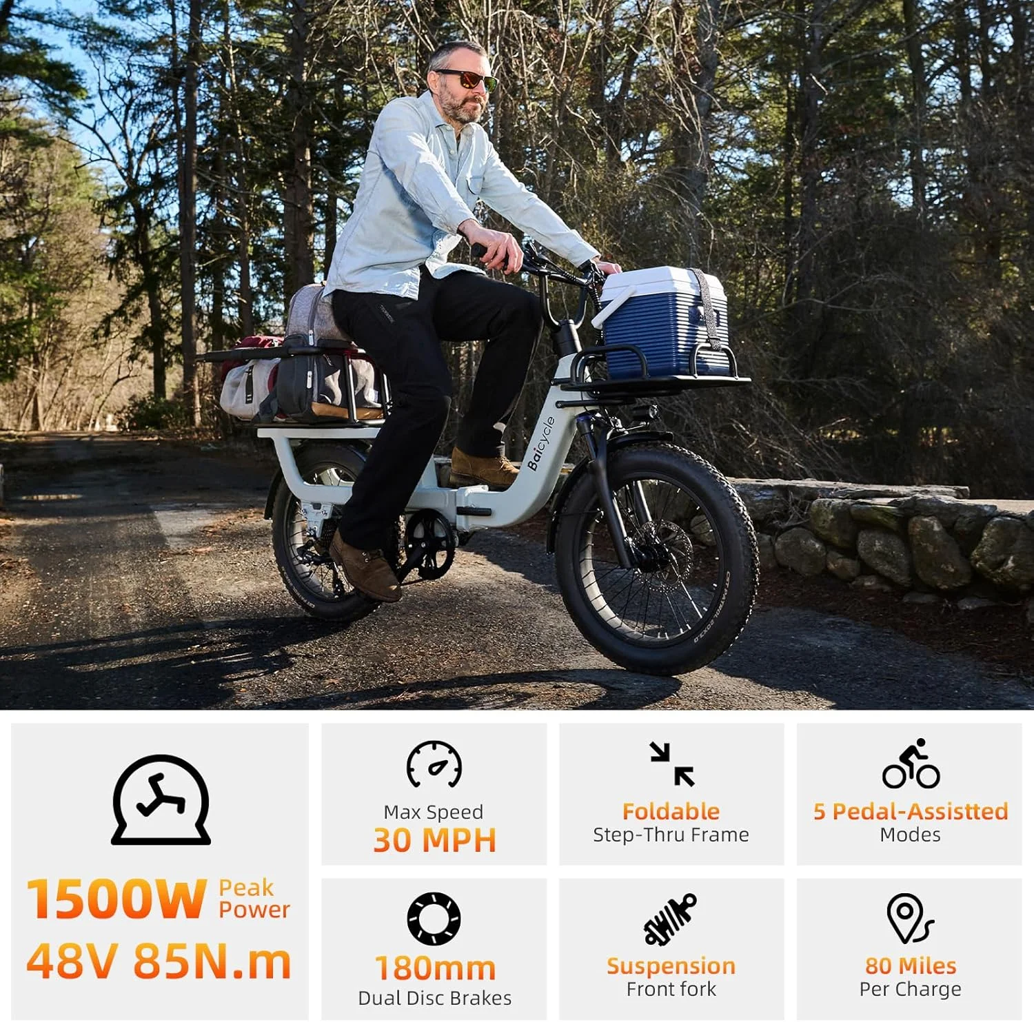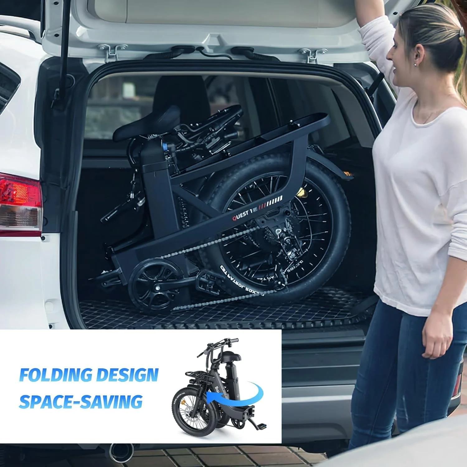 Electric Bike for Adults with 1500W Peak Motor, 80miles Max Range, 7 Speed Gear, 750WH Detachable Battery, Folding Ebike with 20'' Fat Tirefull Suspension UL Certificated Bicycle