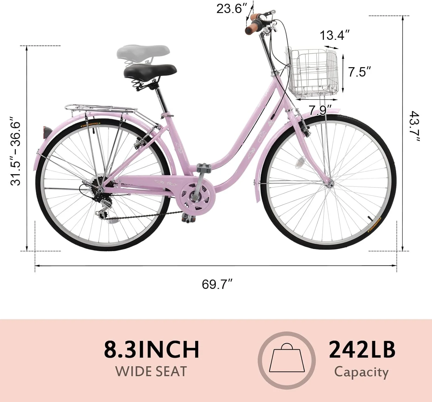 6. Equipped with mirror and canvas front basket