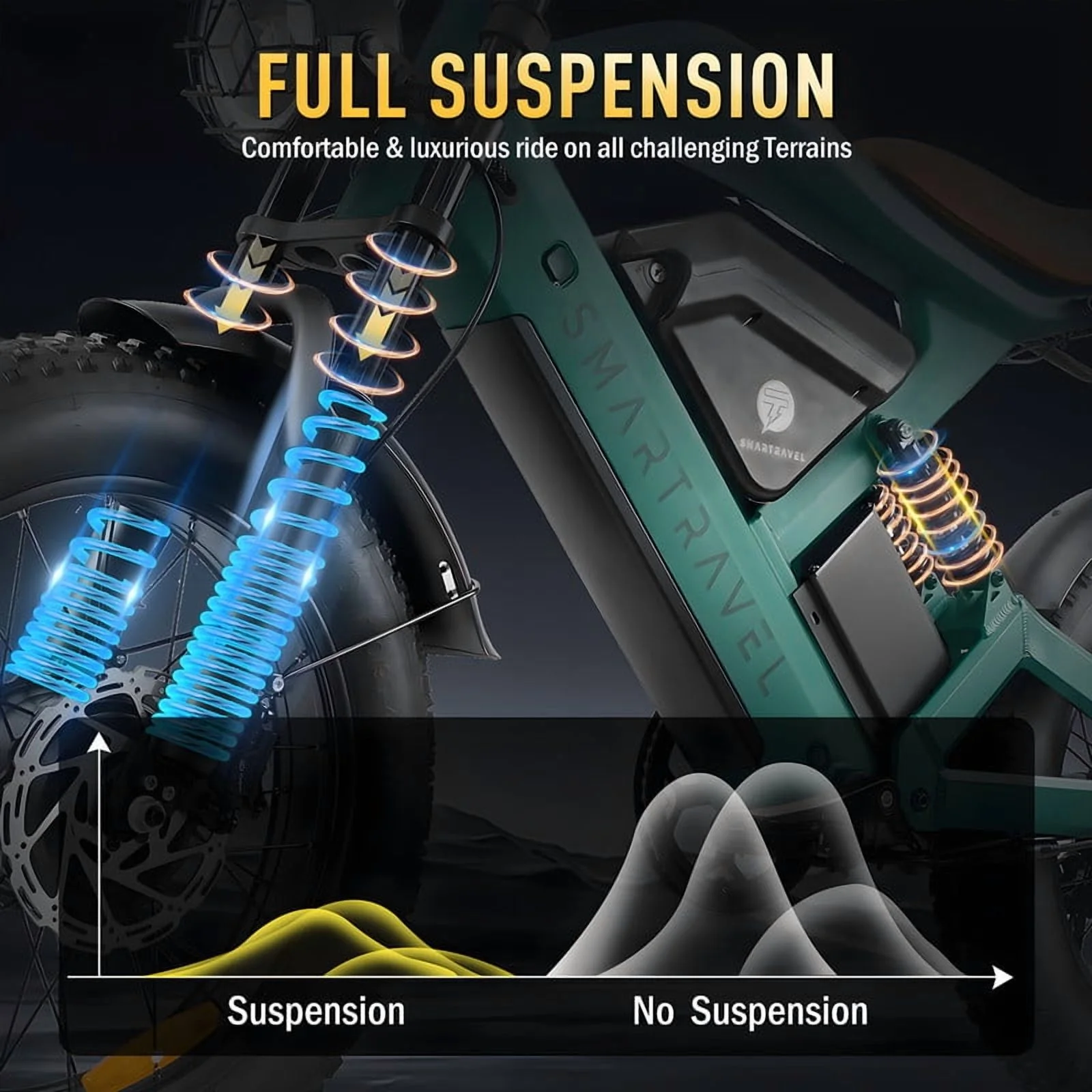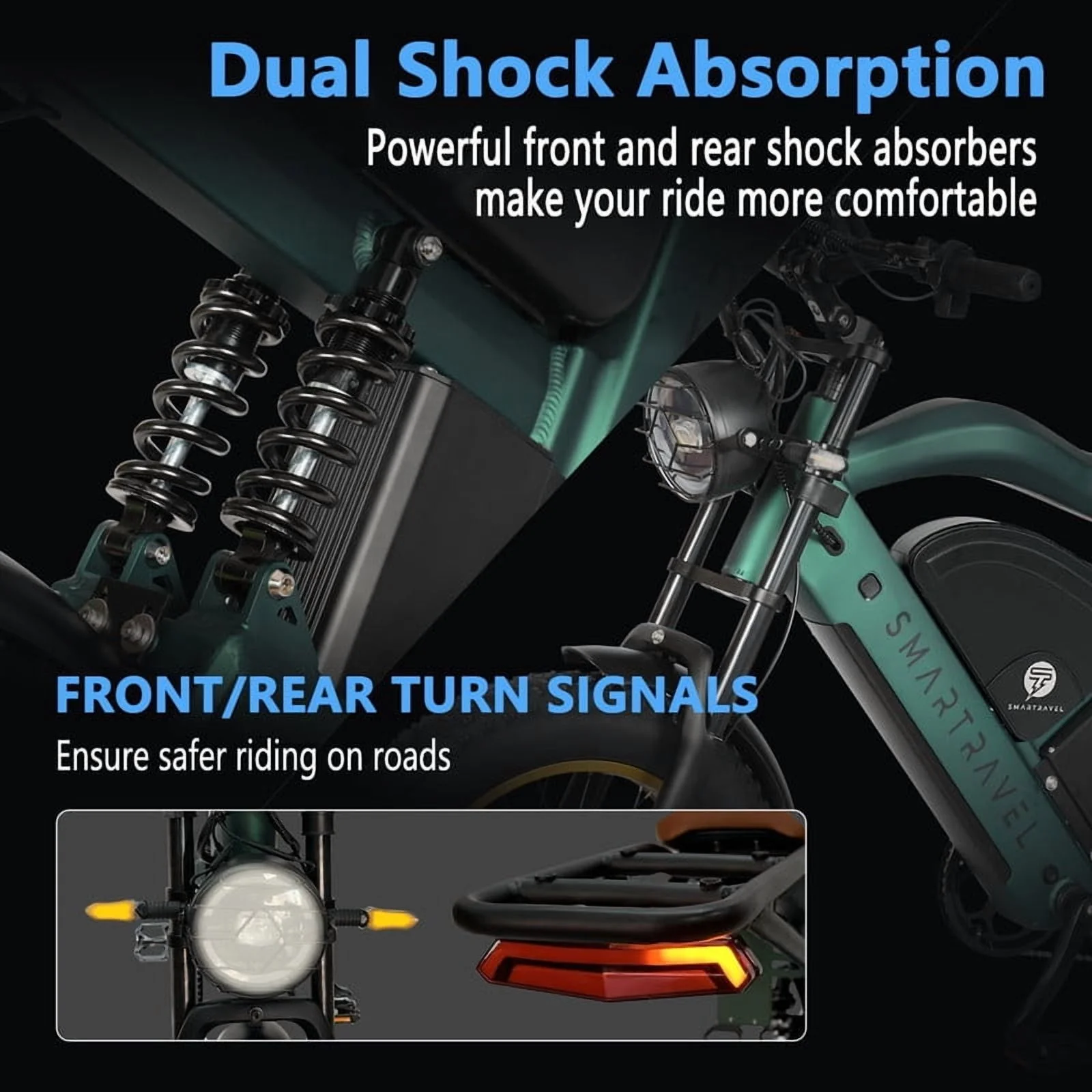- ��Powerful Dual 1500W Geared Hub Motor��The upgraded Dual 1500W brushless geared hub motor delivers strong performance with 86 N��m torque, making it easy to conquer steep hills and tough terrain. Built with a heat-resistant inner ring and enhanced heat dissipation, it ensures durability and longer motor life. Equipped with advanced FOC technology, the system automatically adjusts to real-time riding conditions for smooth, efficient power and reliable performance on every ride.