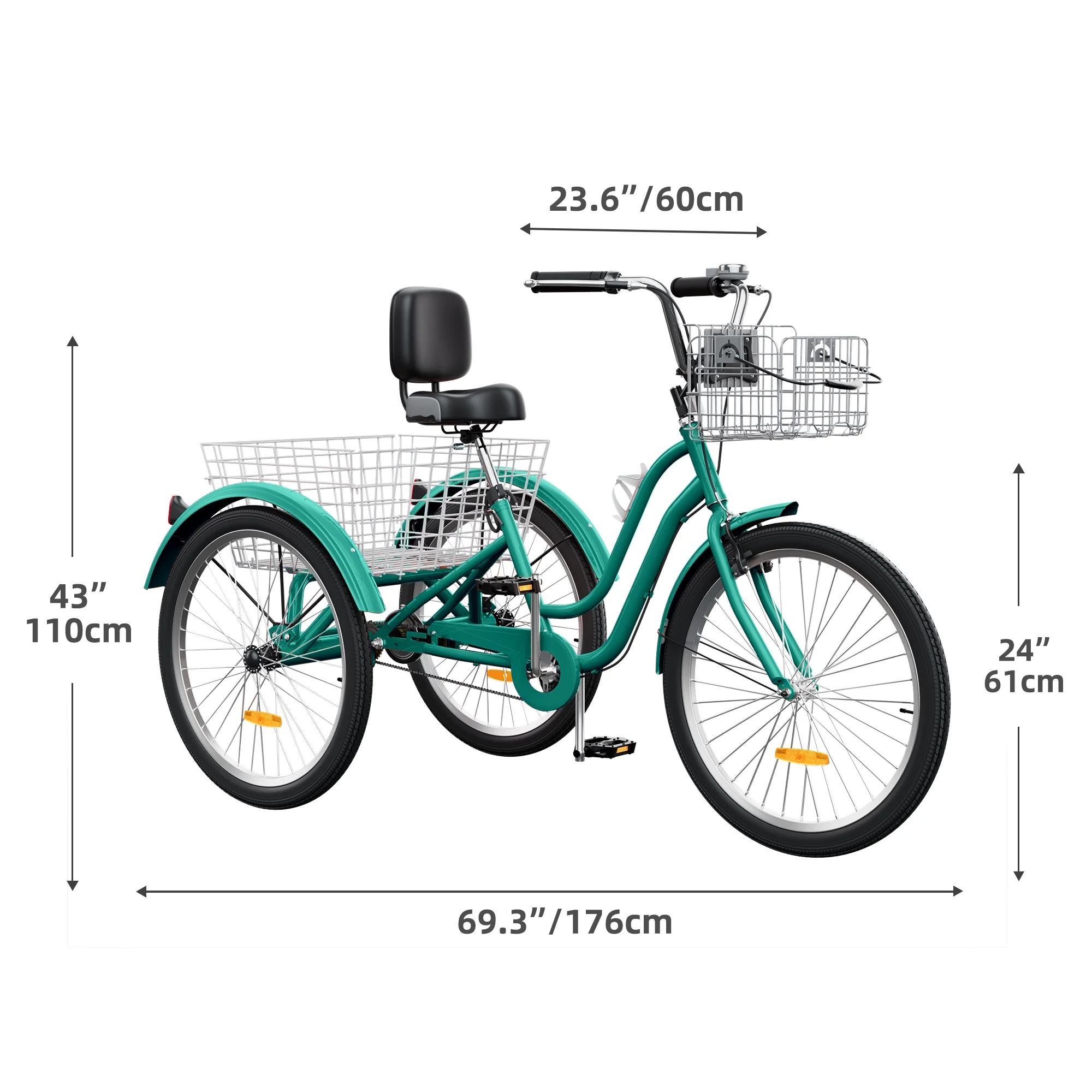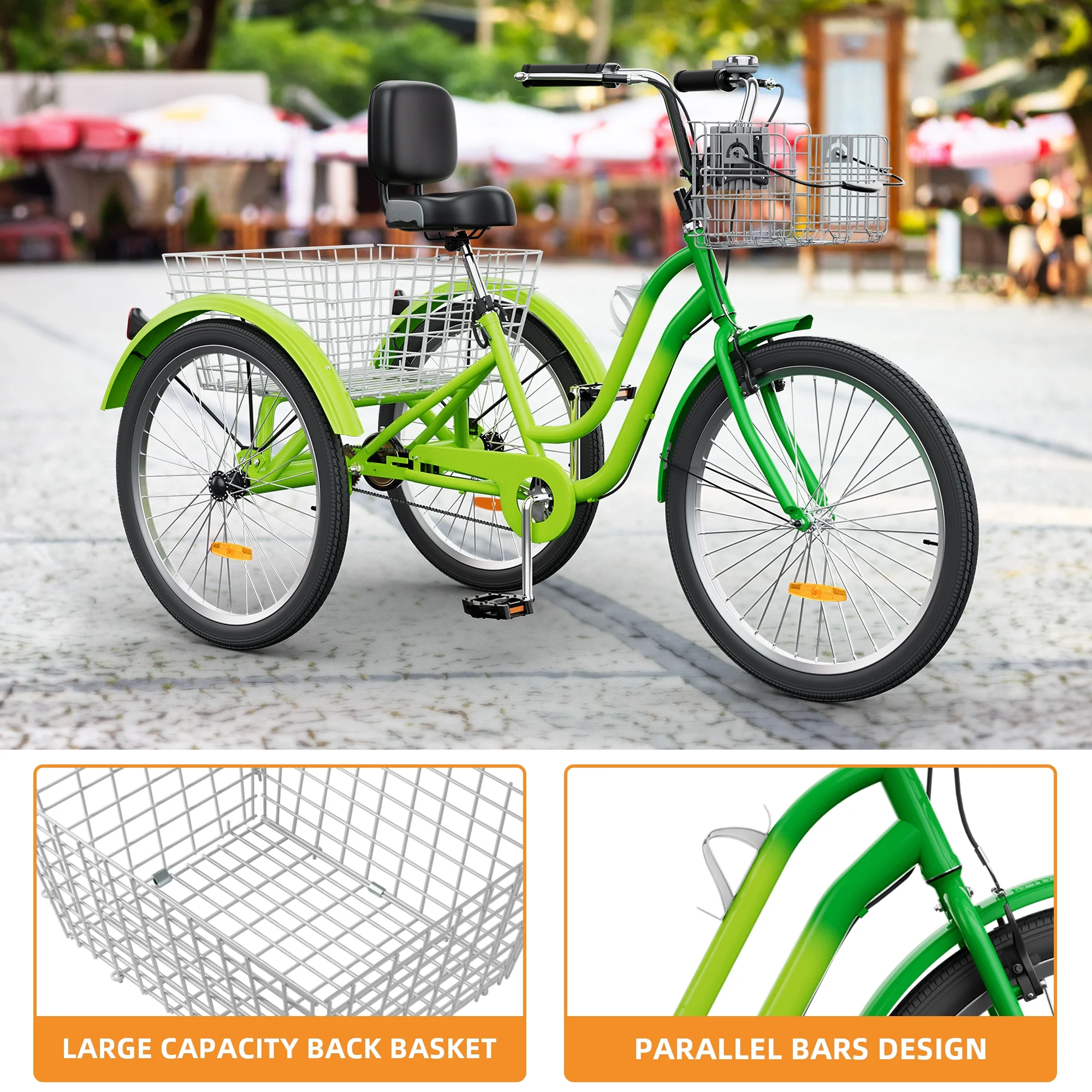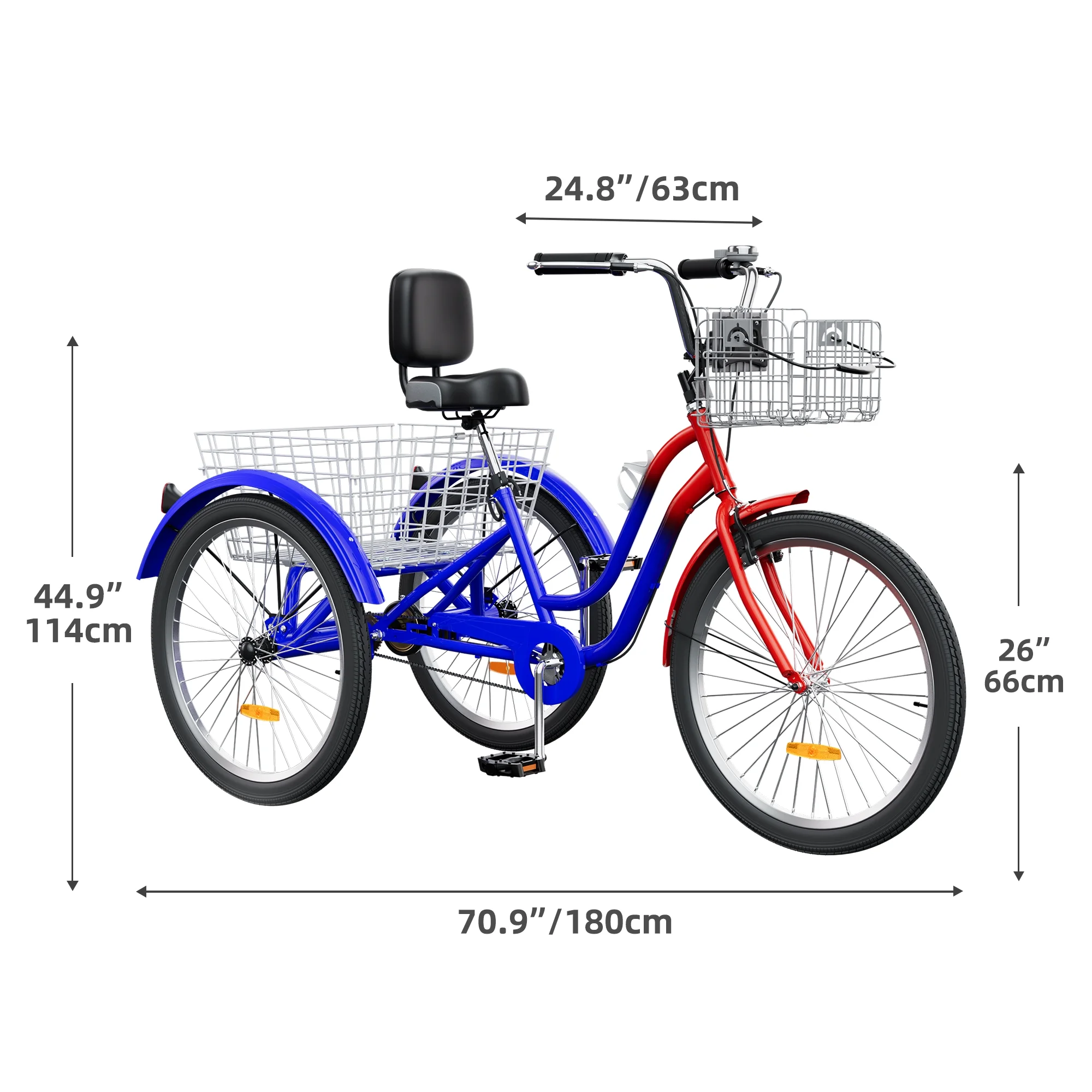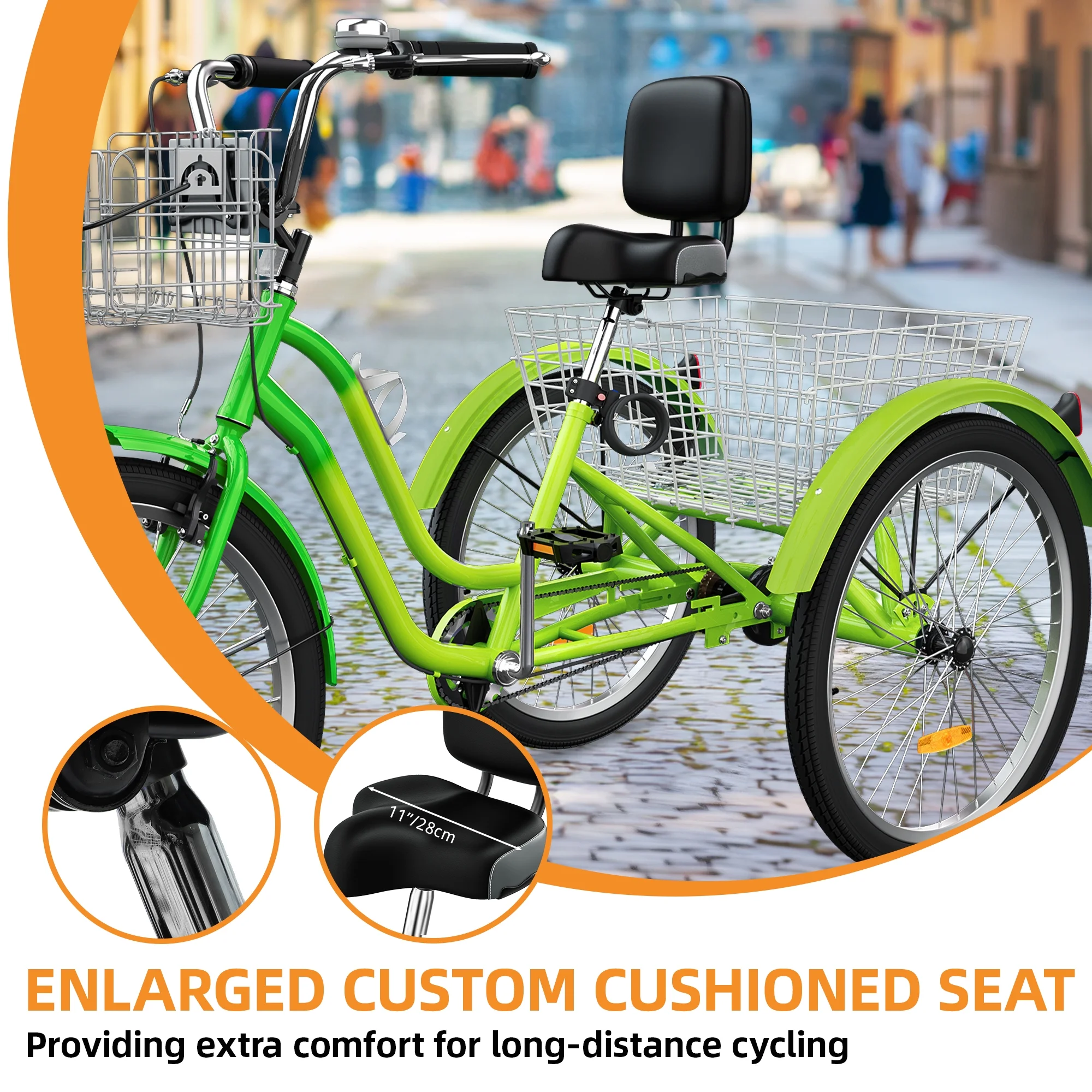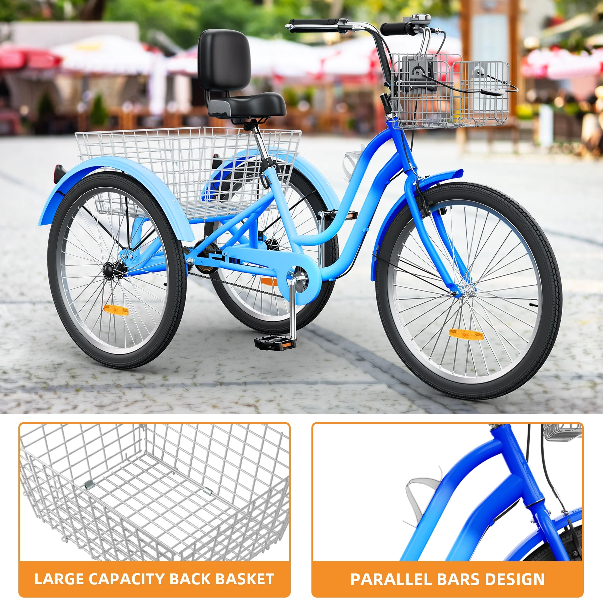 Dextrus 24 in 3 - Wheel Bike, Single Speed Adult Trike, Low Step - Through Cruiser with Front & Rear Baskets, Large Adjustable Seat with Backrest for Seniors, Men, and Women (Purple)