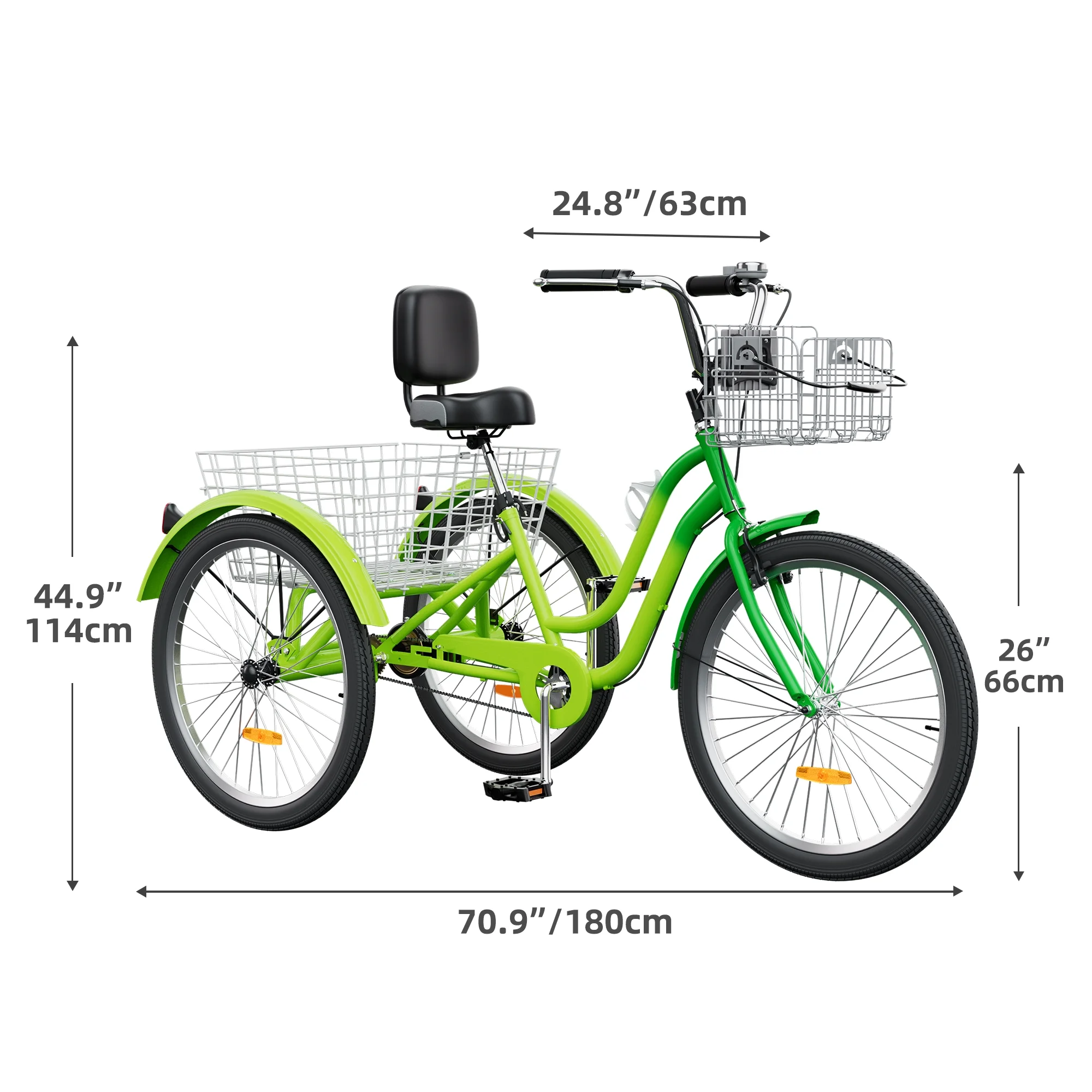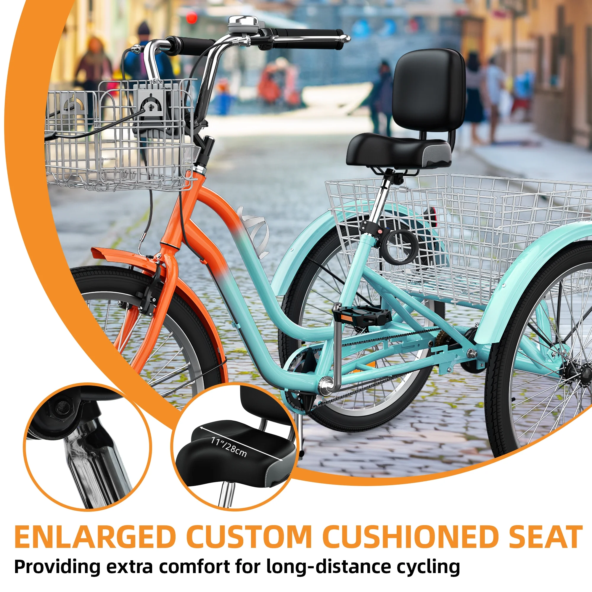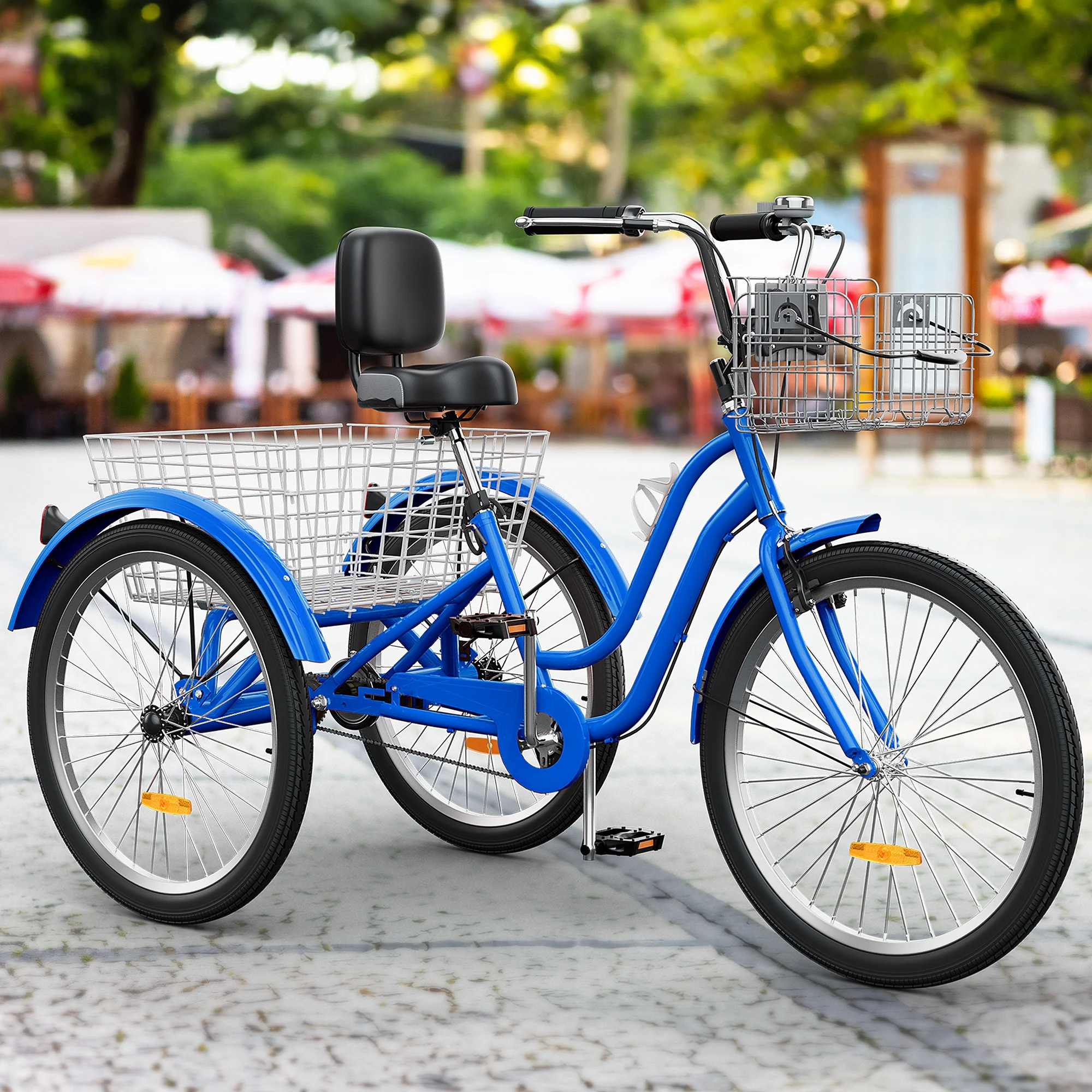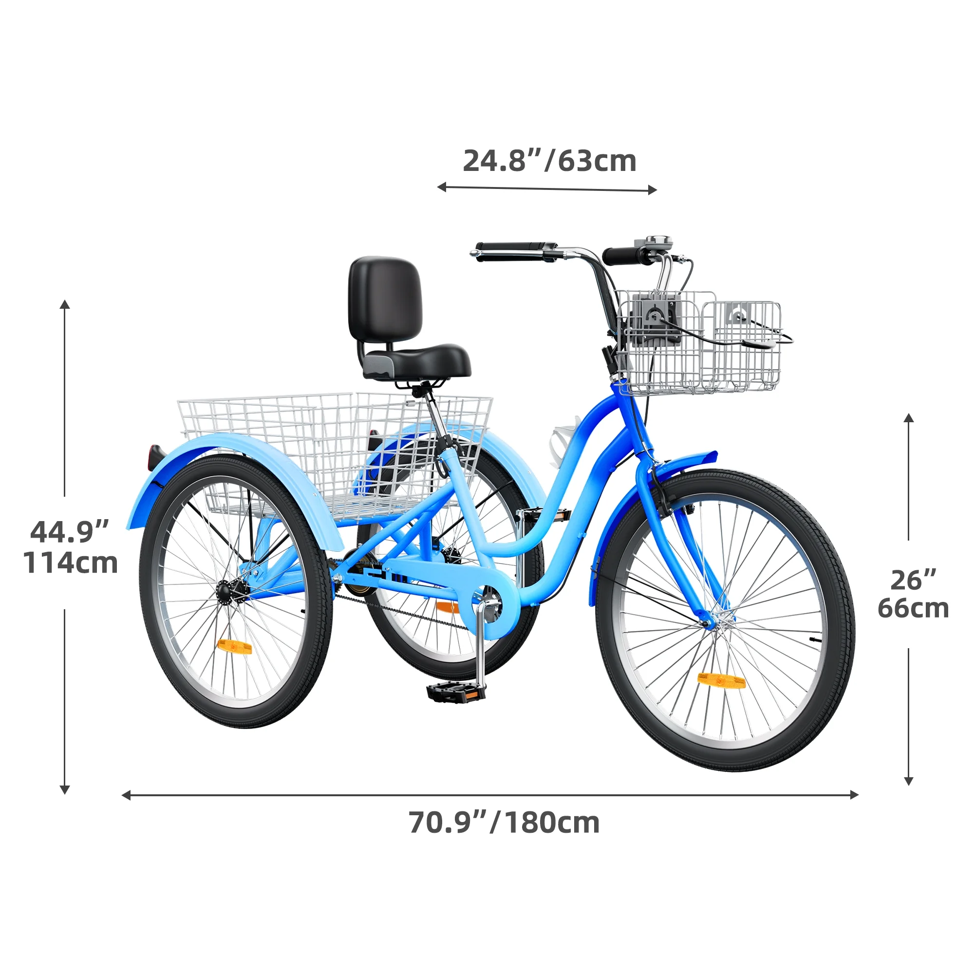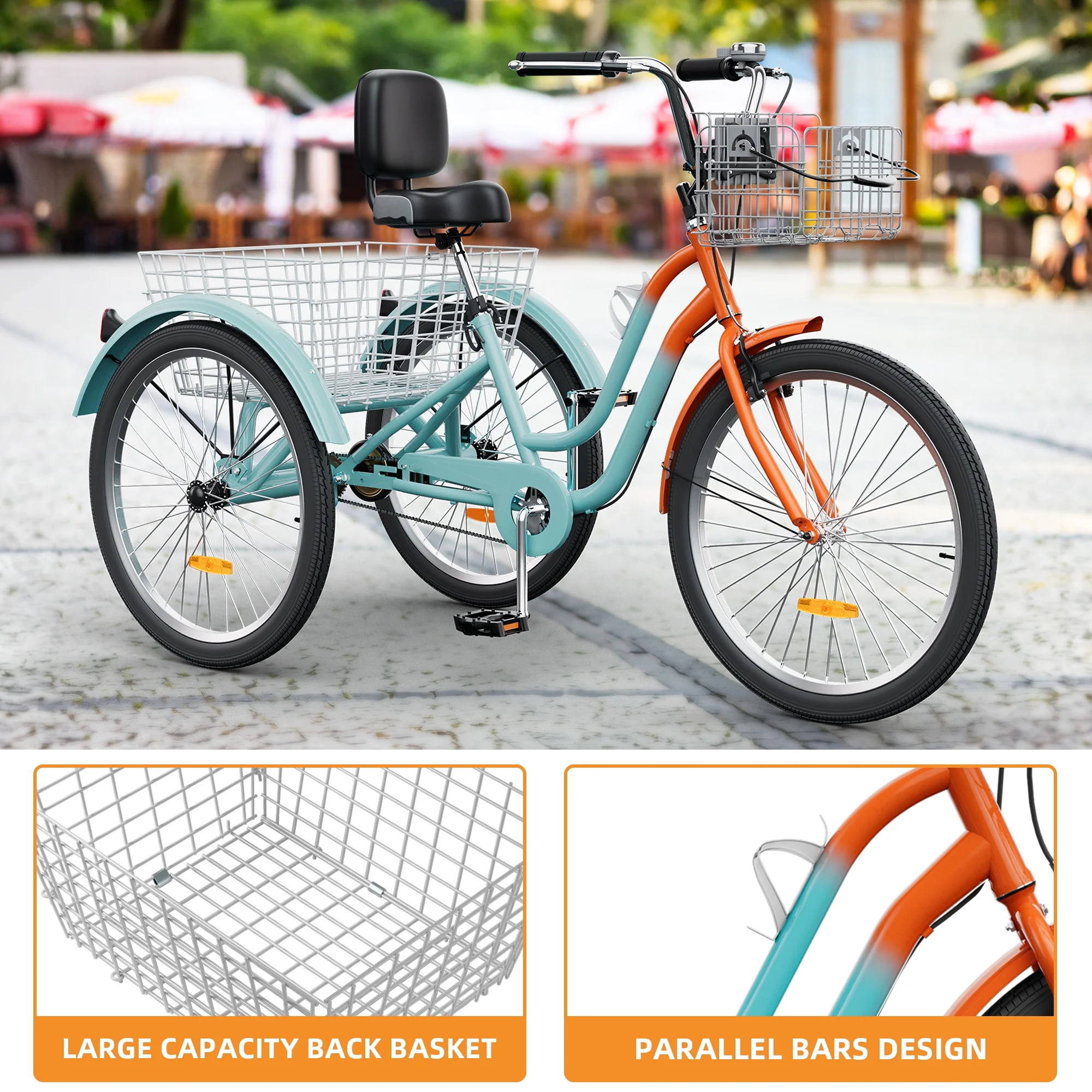 Dextrus 24 in 3 - Wheel Bike, Single Speed Adult Trike, Low Step - Through Cruiser with Front & Rear Baskets, Large Adjustable Seat with Backrest for Seniors, Men, and Women (Purple)