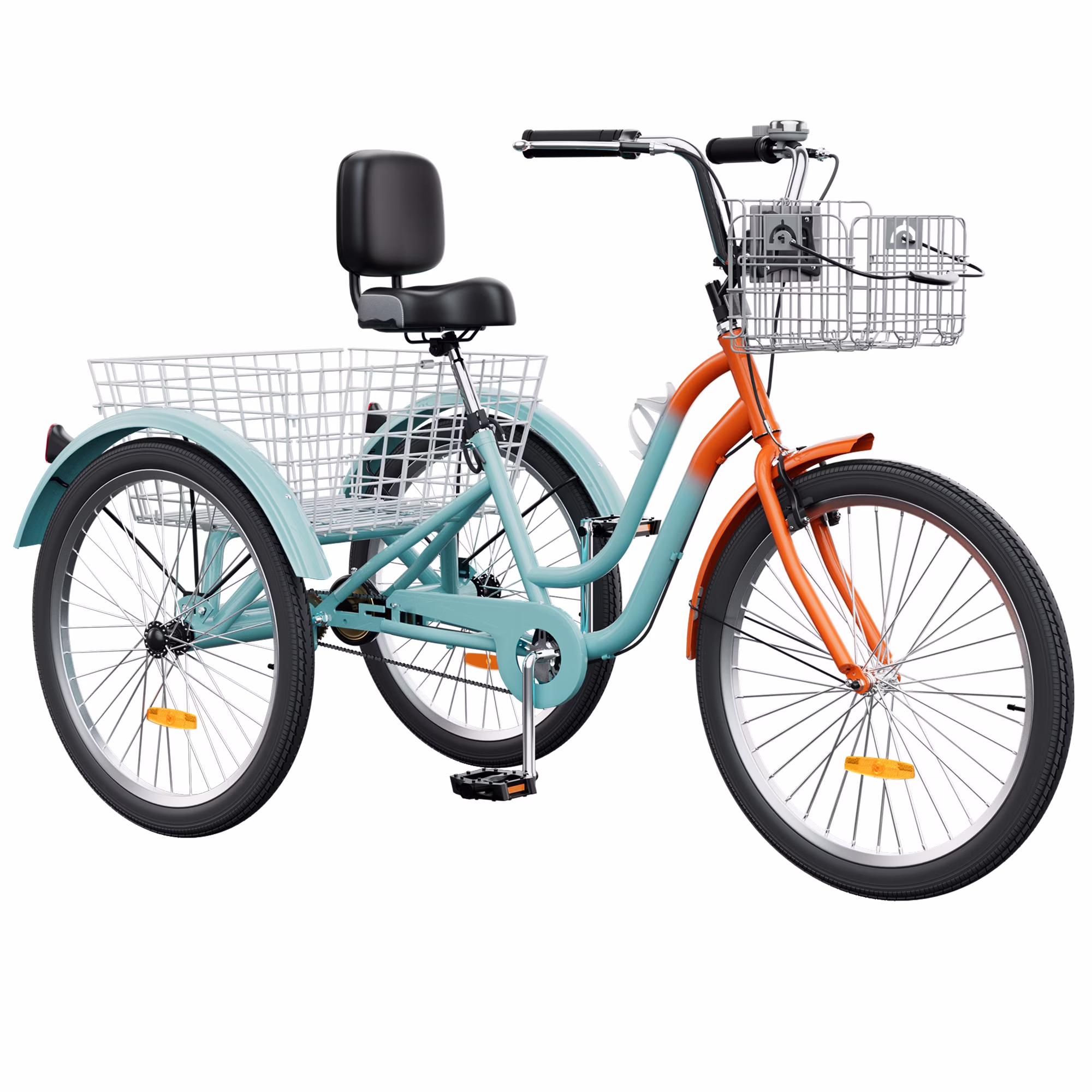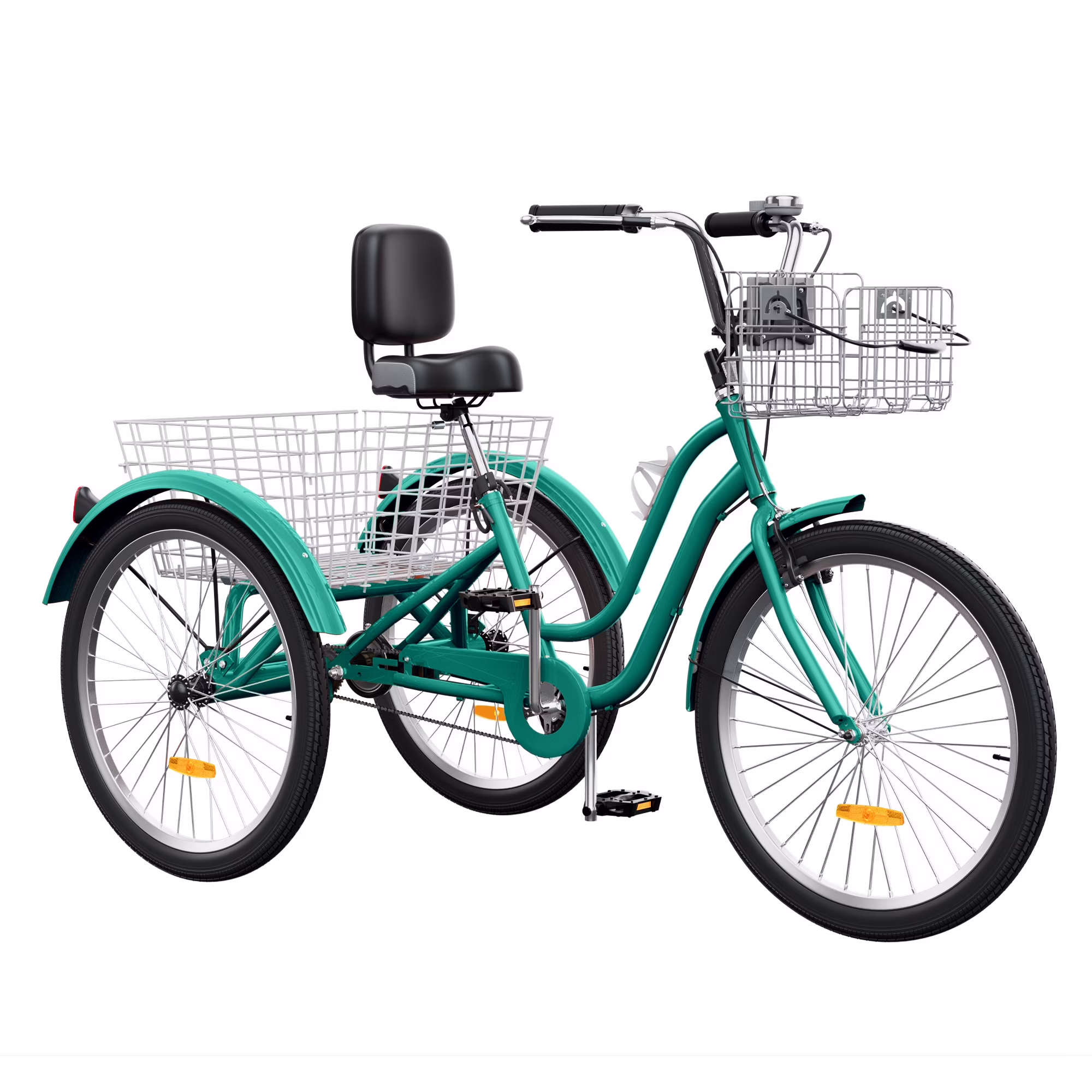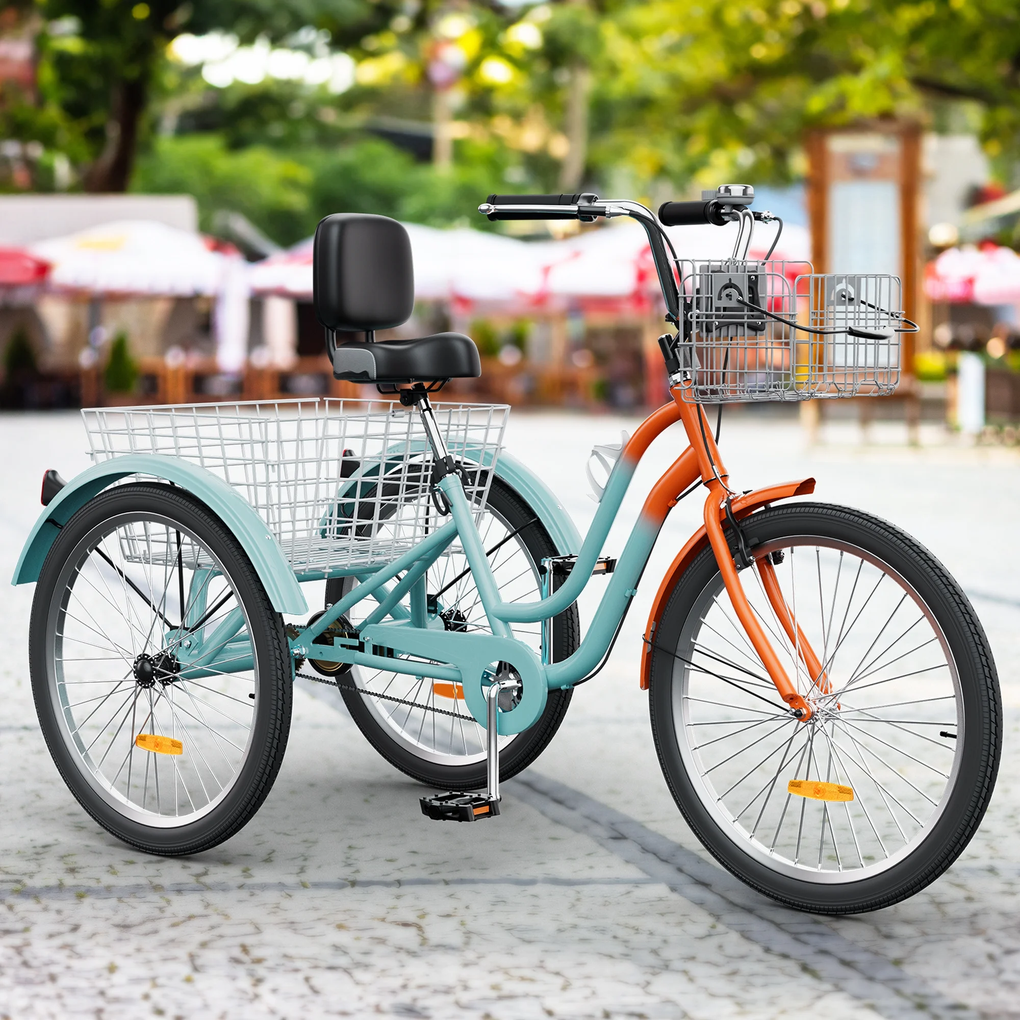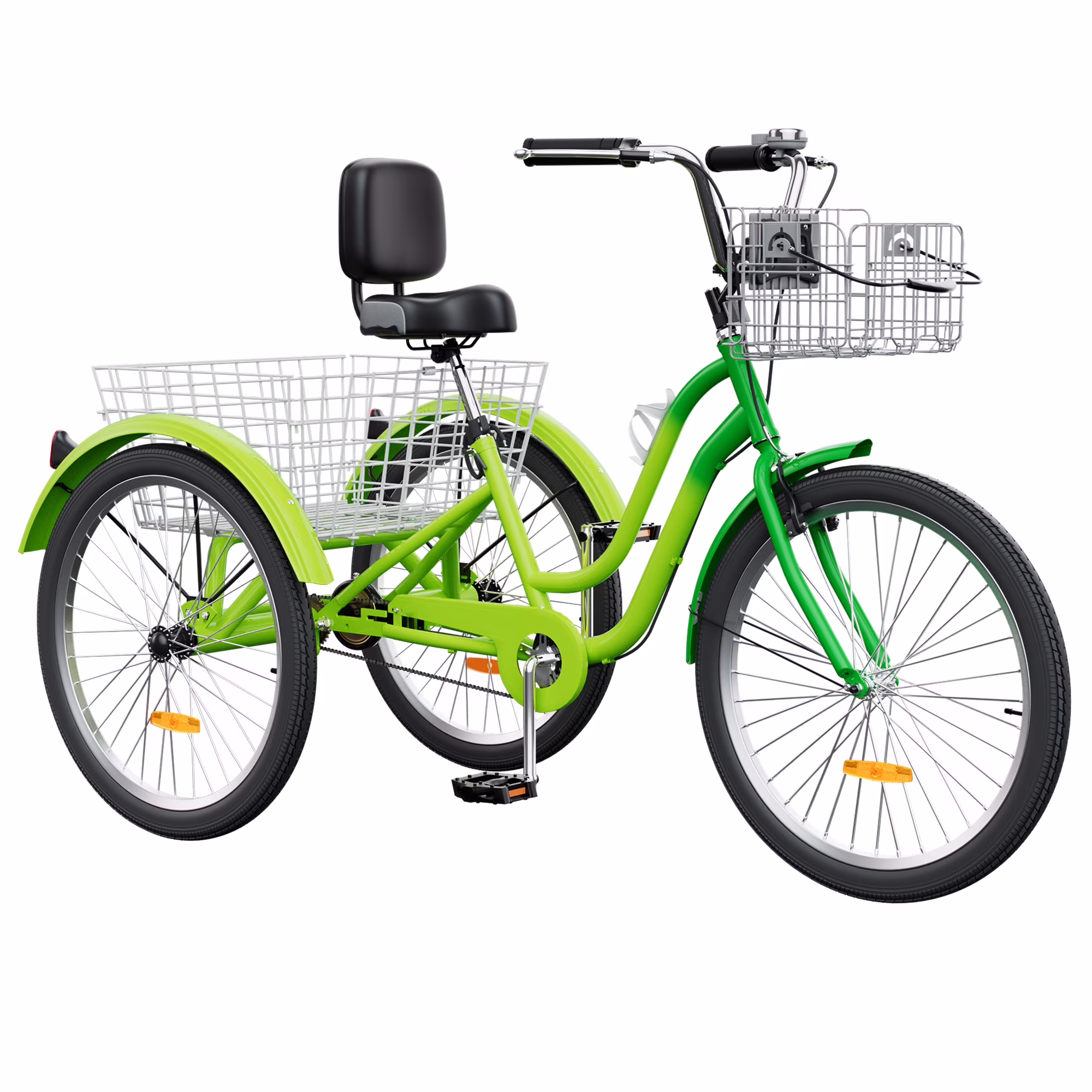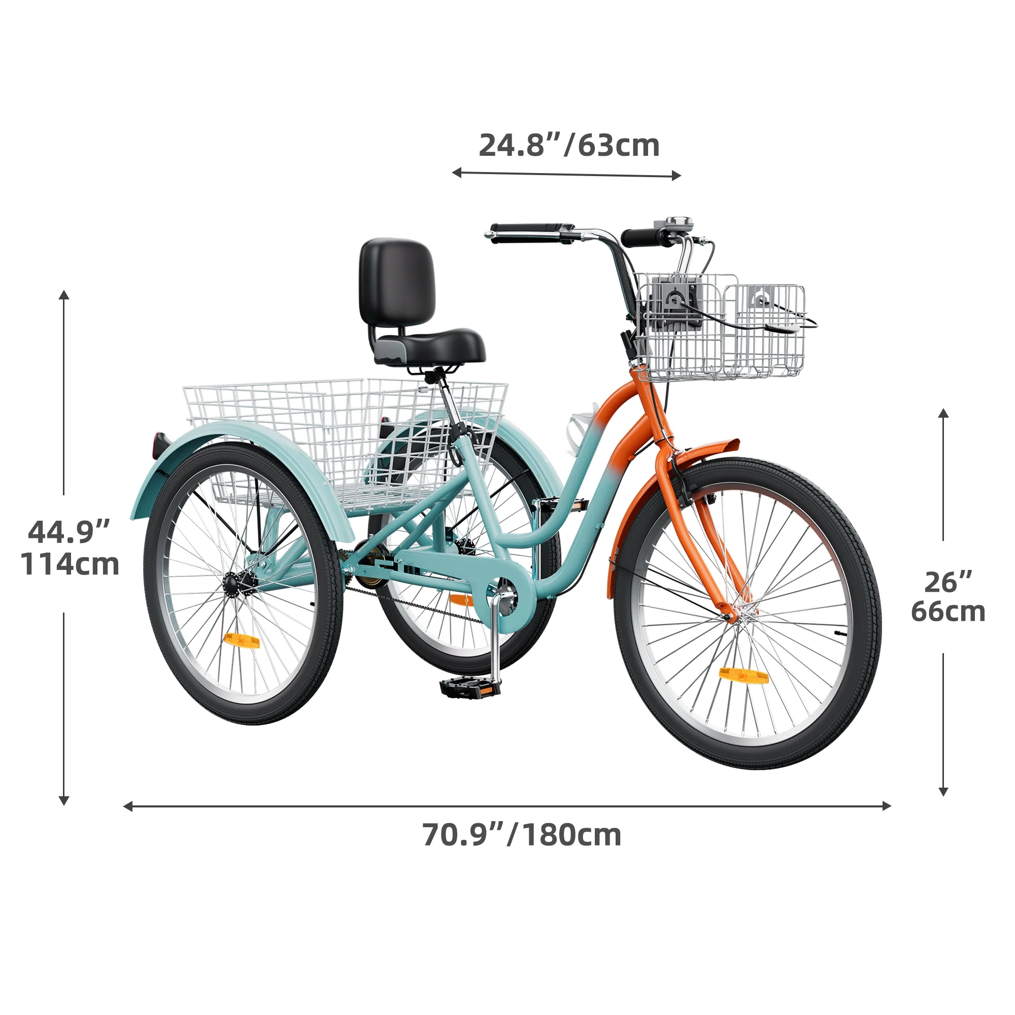Dextrus 24 in 3 - Wheel Bike, Single Speed Adult Trike, Low Step - Through Cruiser with Front & Rear Baskets, Large Adjustable Seat with Backrest for Seniors, Men, and Women (Purple)