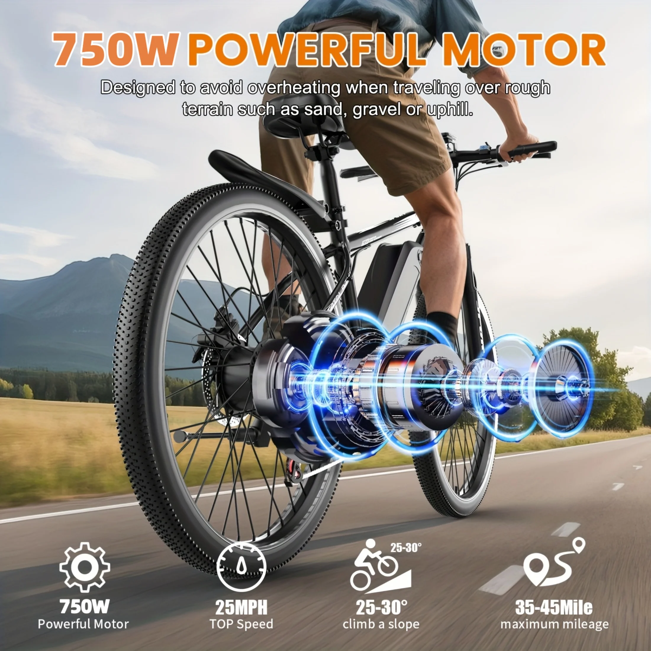- Pedal-Assisted Mode: Auto-motor activation for an easy, pedal-powered ride. Normal Mountain Bike Mode: Classic biking for a great workout. Walk-Assisted Mode: Light power assistance for easy walking alongside. Cruise Control Mode: Maintain speed without throttle adjustments for a relaxed ride.