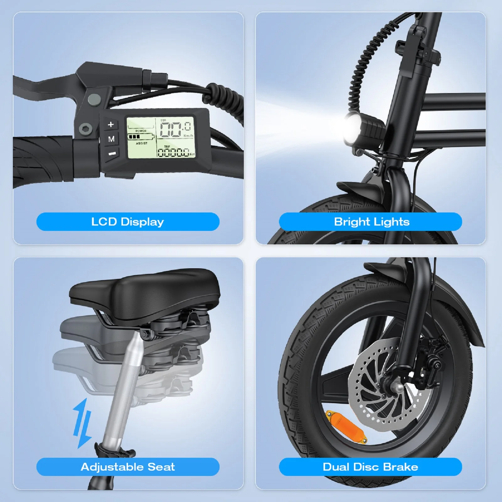 - ��Smart Uphill��- A 14 inch ebike doesn't have to be this nimble, but it is. Our 500W motor, seamlessly integrates intelligent algorithms. Effortlessly conquer inclines with automatic recognition and tailored assistance. Experience a breezy 15�� uphill journey, complemented by a top speed of 30mph