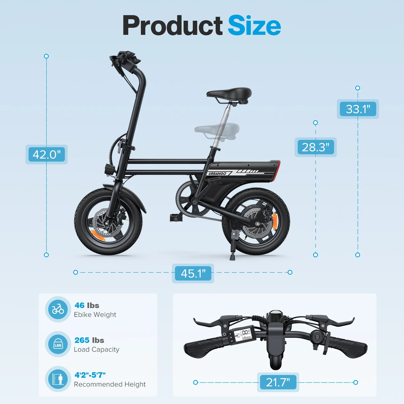 - ��Excellent Portability��- With foldable handlebars, pedals, and a height-adjustable seat, the U1 small electric bike is designed for minimal storage space (��0.15m3). Whether fitting in a car trunk, navigating elevators, or keeping your apartment uncluttered, it's your ideal first e bike