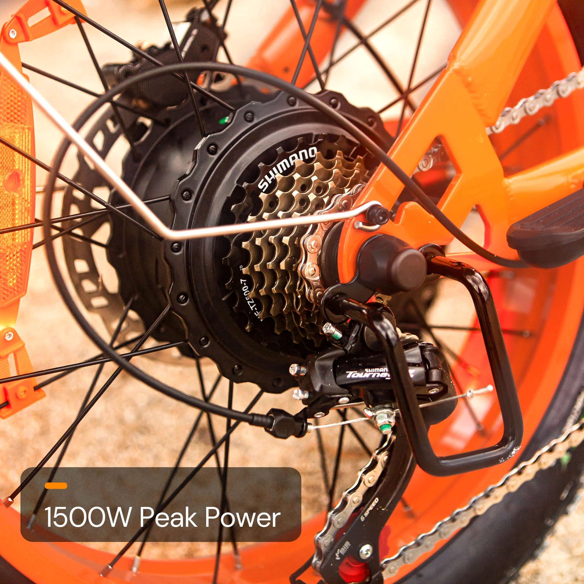 - Motor: Rear Geared Hub Brushless Motors, Rated 1000W (Peak 1500W)