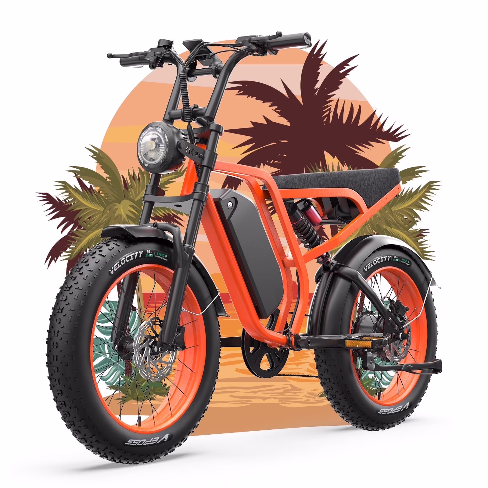 - ��??Full Suspension & 20" Puncture Resistant Fat Tires��Equipped with a dual-crown front suspension fork and rear shock absorber, which greatly reduces bumps during riding. 20" x 4" Puncture Resistant fat tires also provide good grip and excellent shock absorption. This full suspension ebike offers a more comfortable riding experience in the snow, beach, mountain, city roads, helps you conquer most road conditions