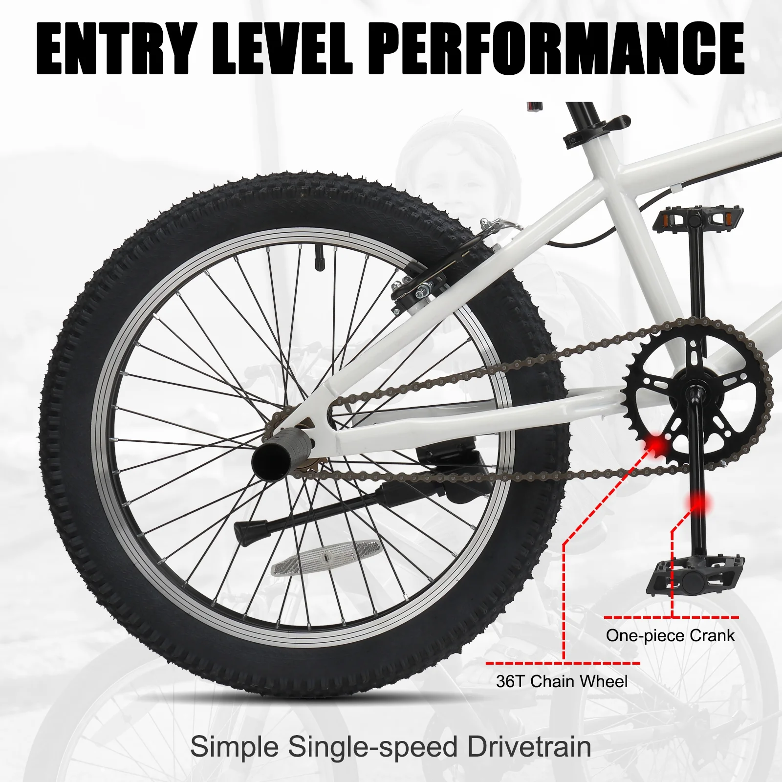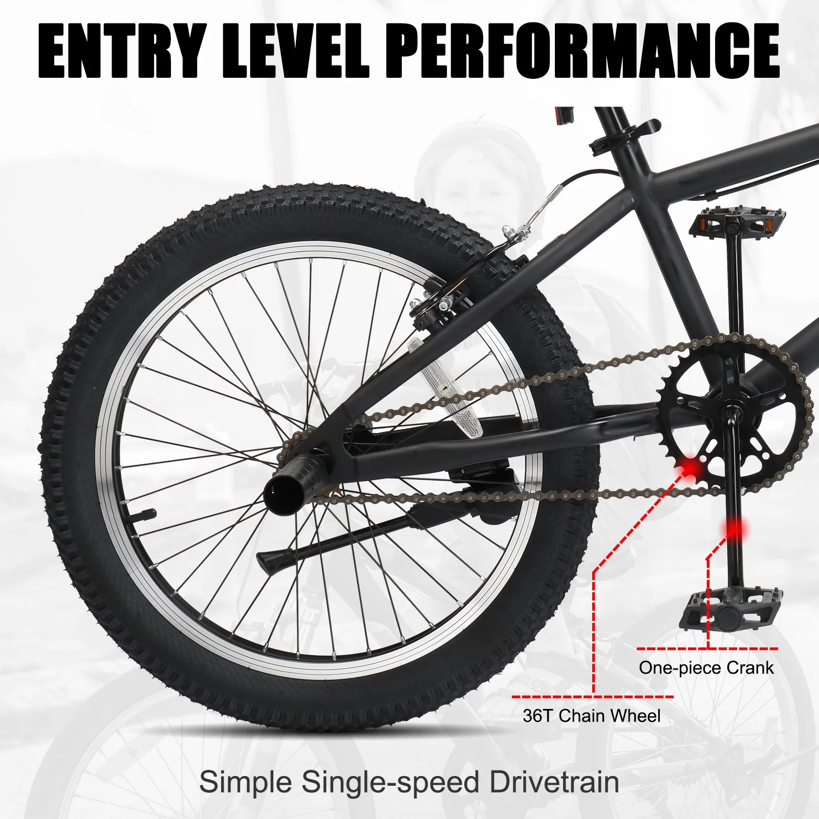 Built with a high-carbon steel frame and 20��2.35" tires, this BMX bike is designed to handle bumps, jumps, and uneven terrain with ease. The shock-absorbing tires help to cushion your ride, giving you comfort and stability, even on rough surfaces.
