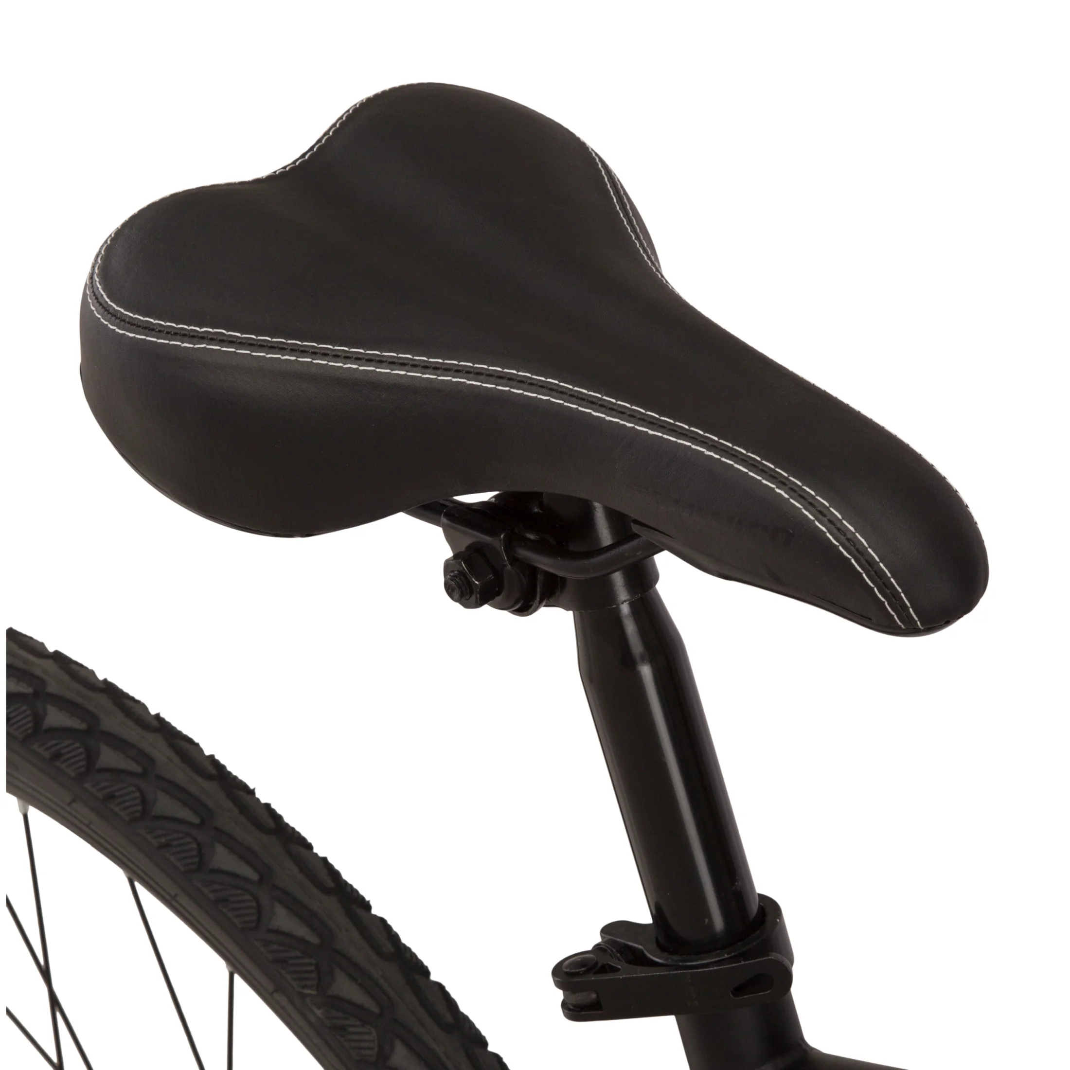 - Durable steel hybrid frame with suspension fork to absorb bumps in the road and provide a more comfortable ride.