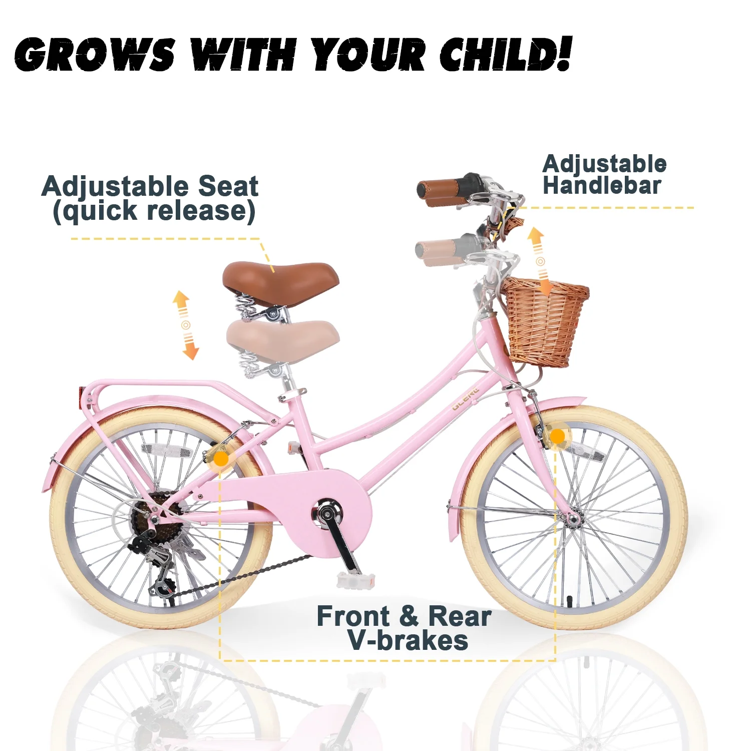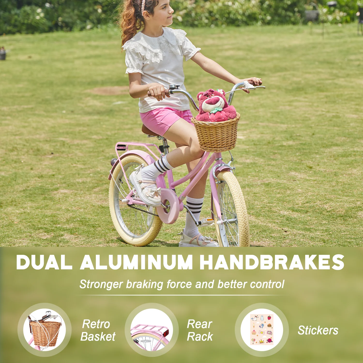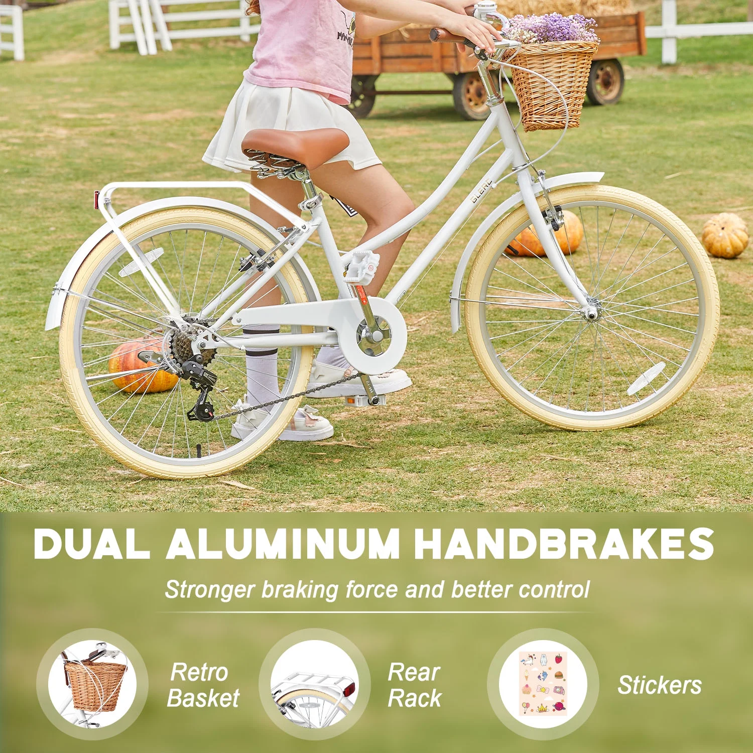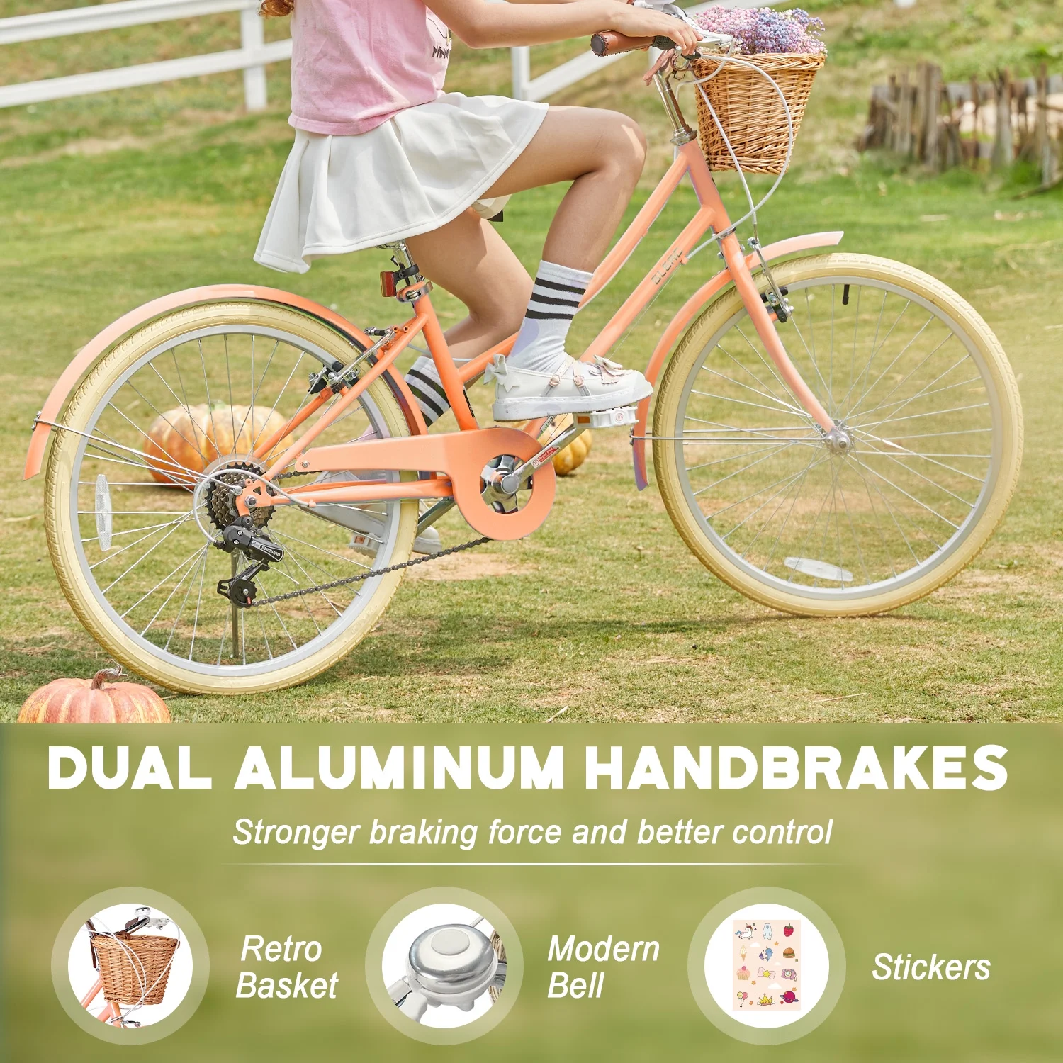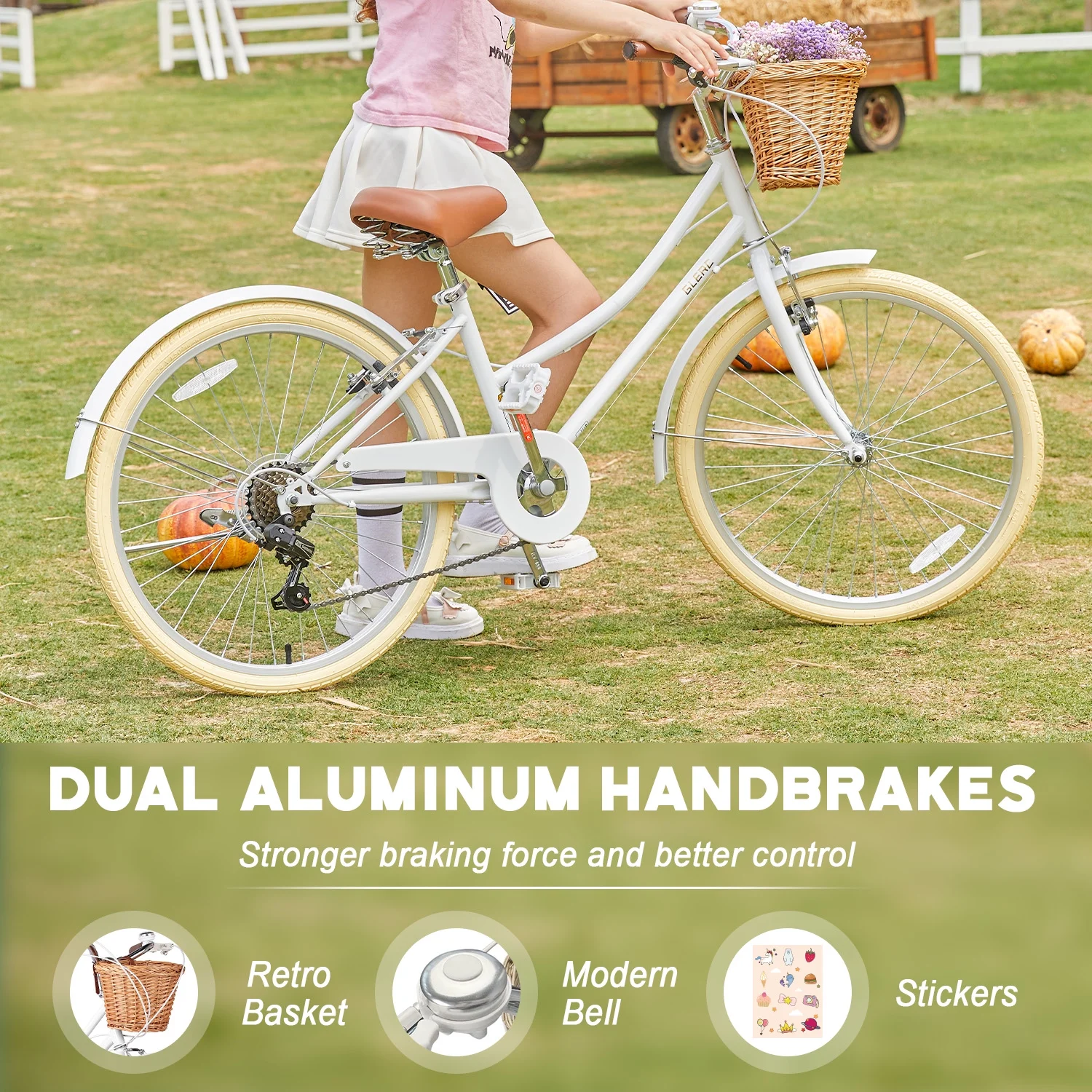 - ��Designed for Princess��The retro-style basket paired with brown synthetic leather saddle give this girls bike a unique and eye-catching appearance, making it an ideal gift for children.