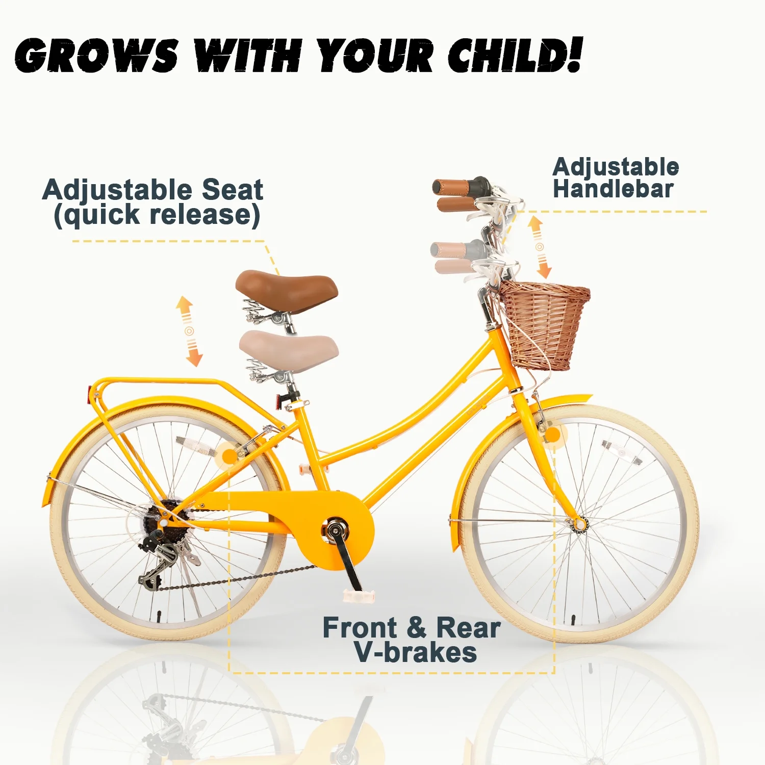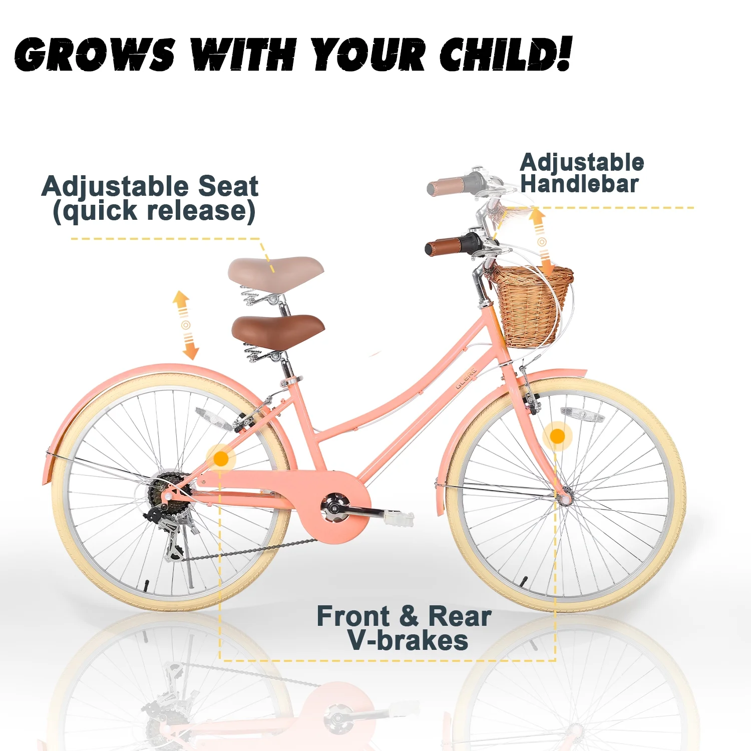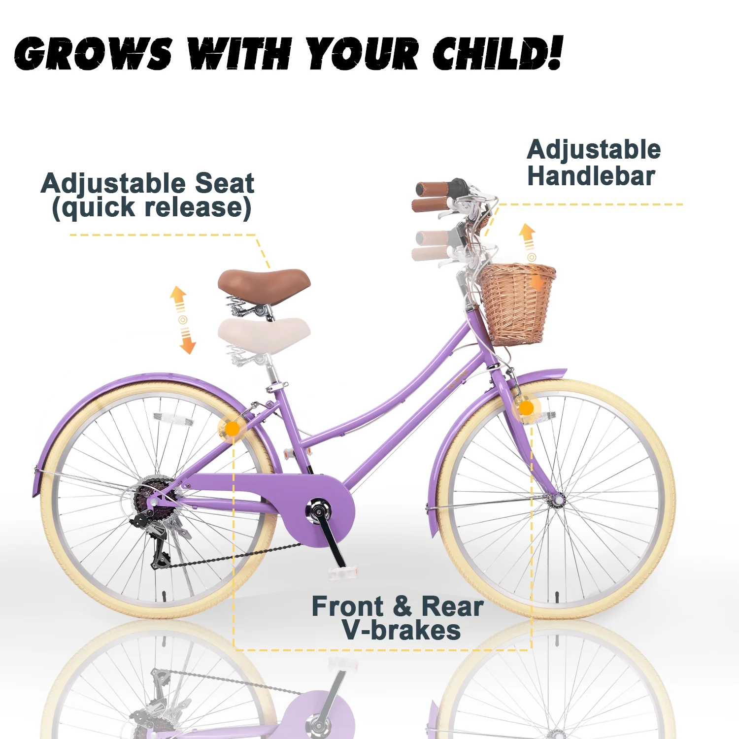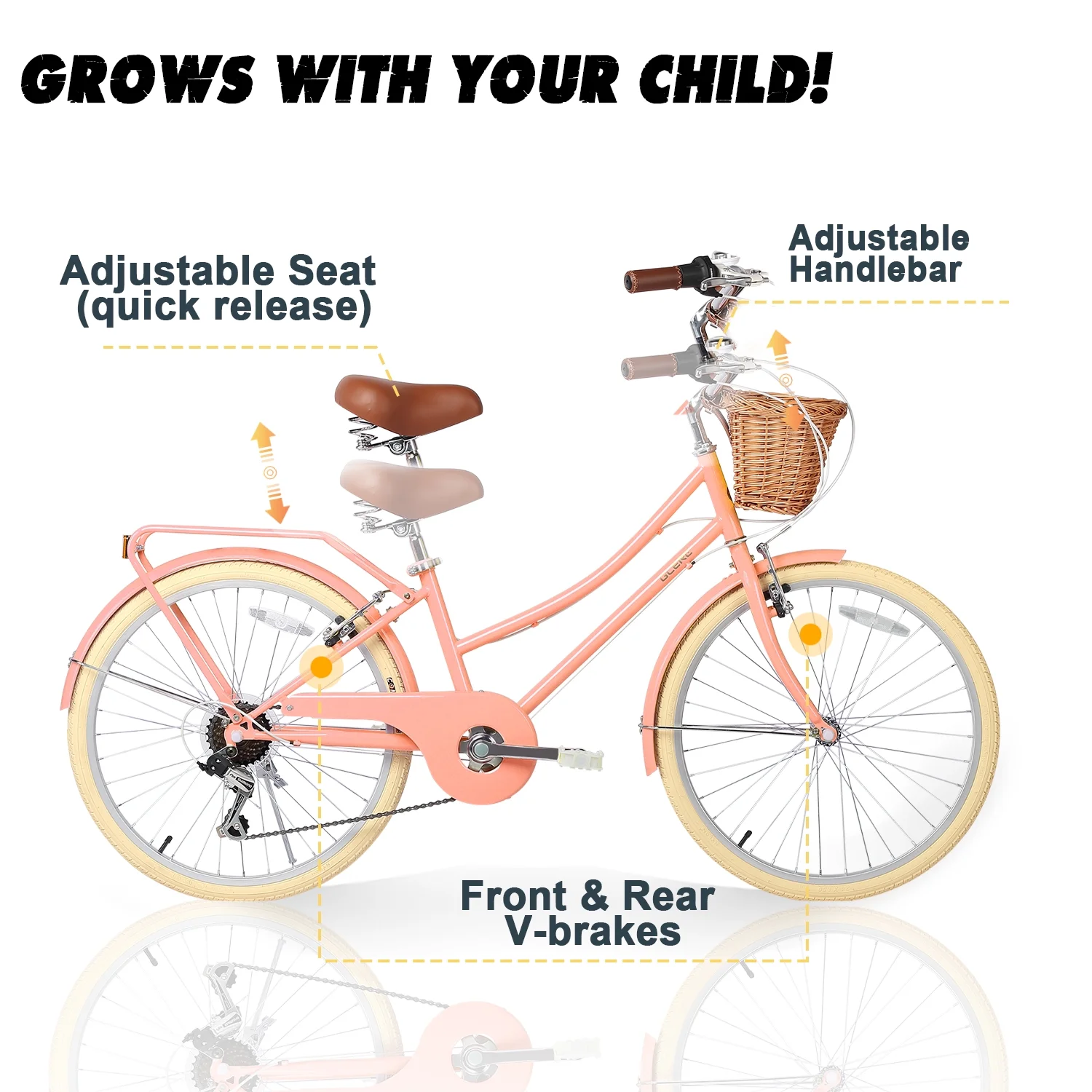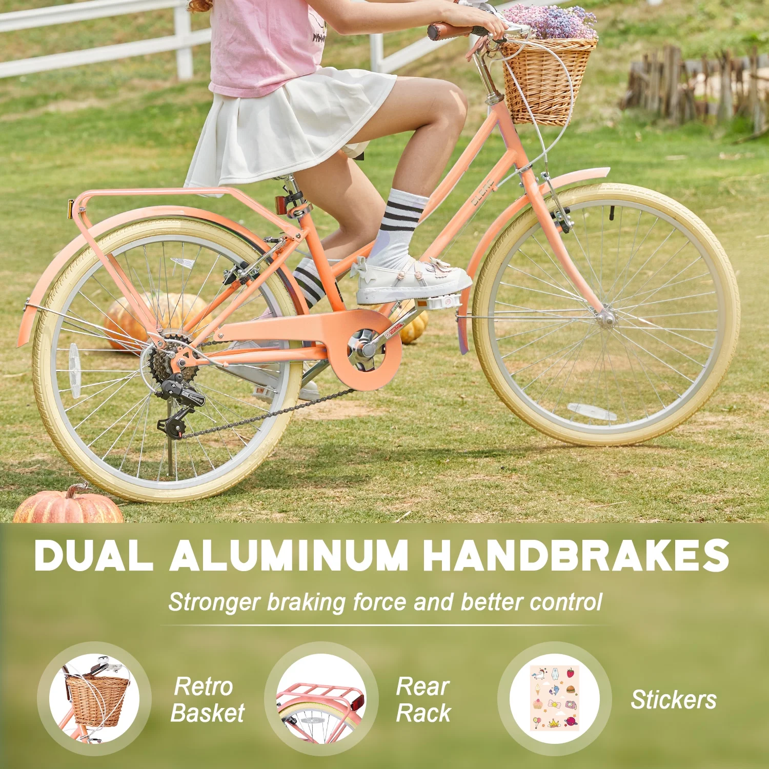 - ��Designed for Princess��The retro-style basket paired with brown synthetic leather saddle give this girls bike a unique and eye-catching appearance, making it an ideal gift for children.