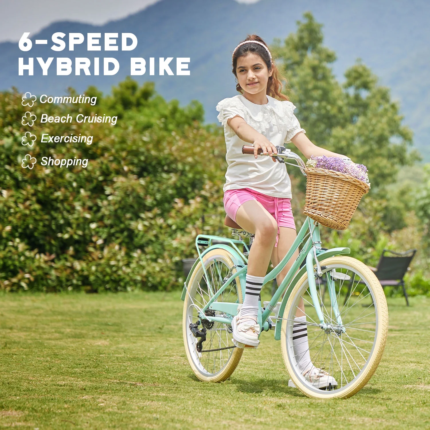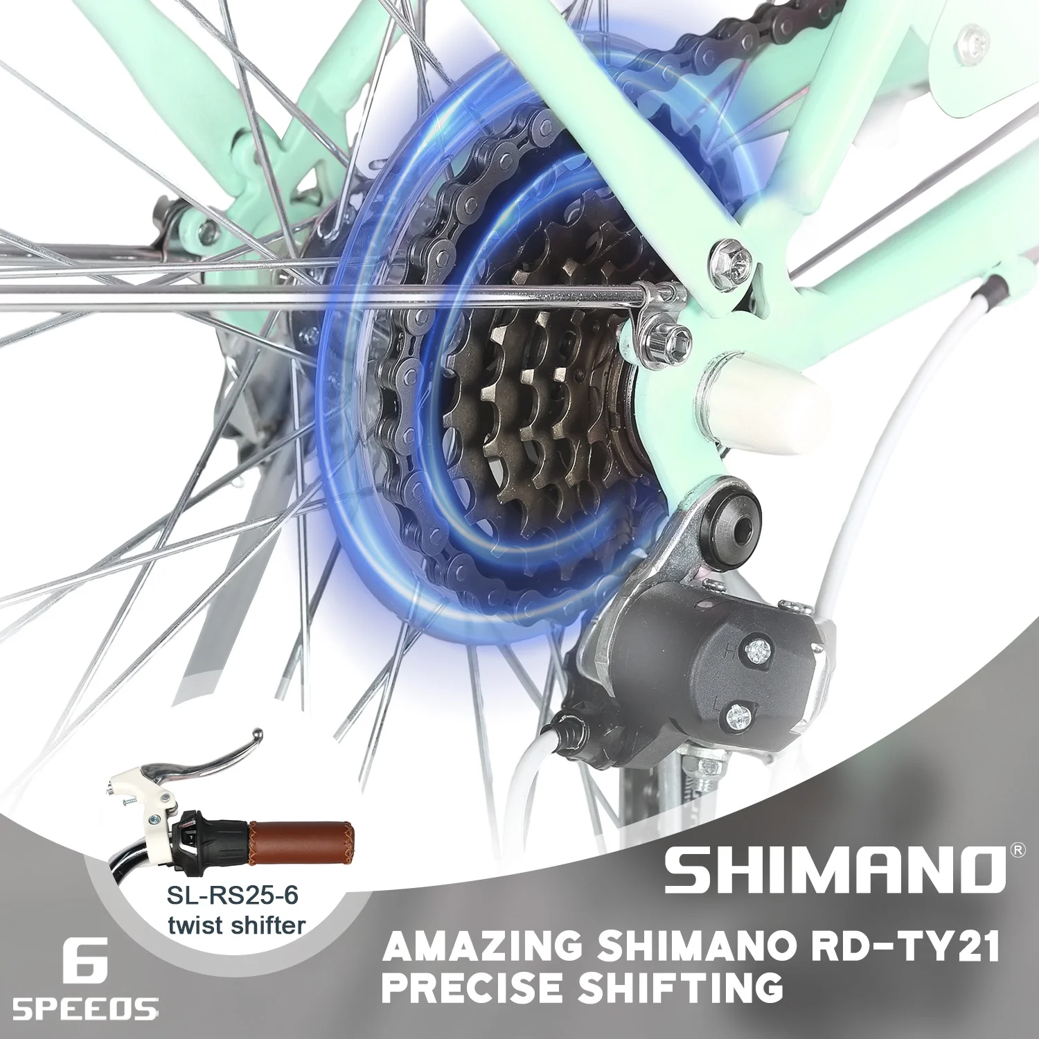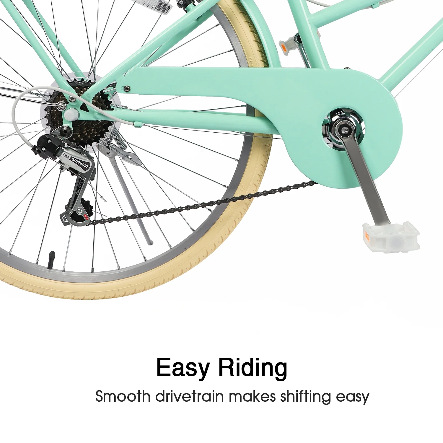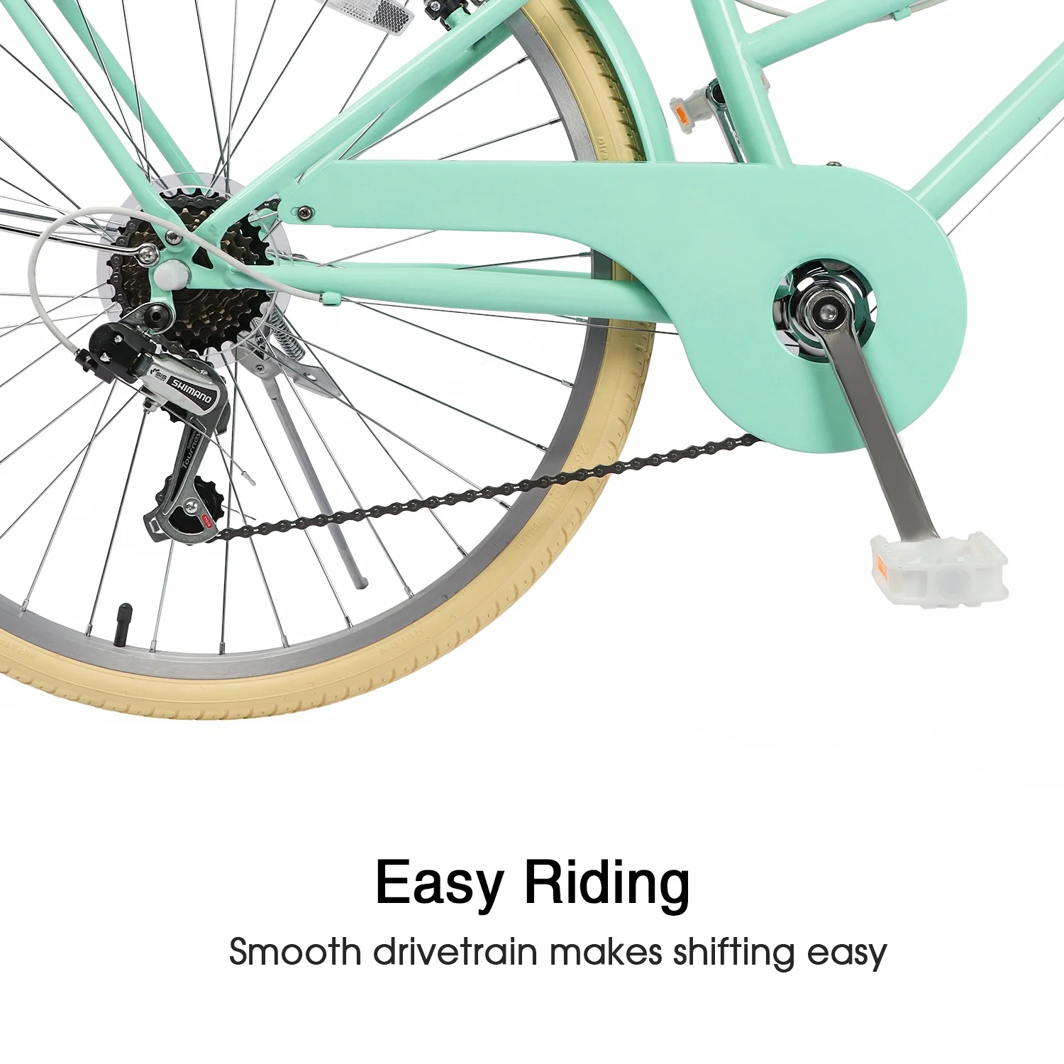 - ��High Performance��The beach cruiser bike features a Shimano 6-speed gear system and a high-carbon steel frame, helping you conquer steep hills with ease. Suitable for a variety of scenarios, from leisurely rides to long-distance commuting.