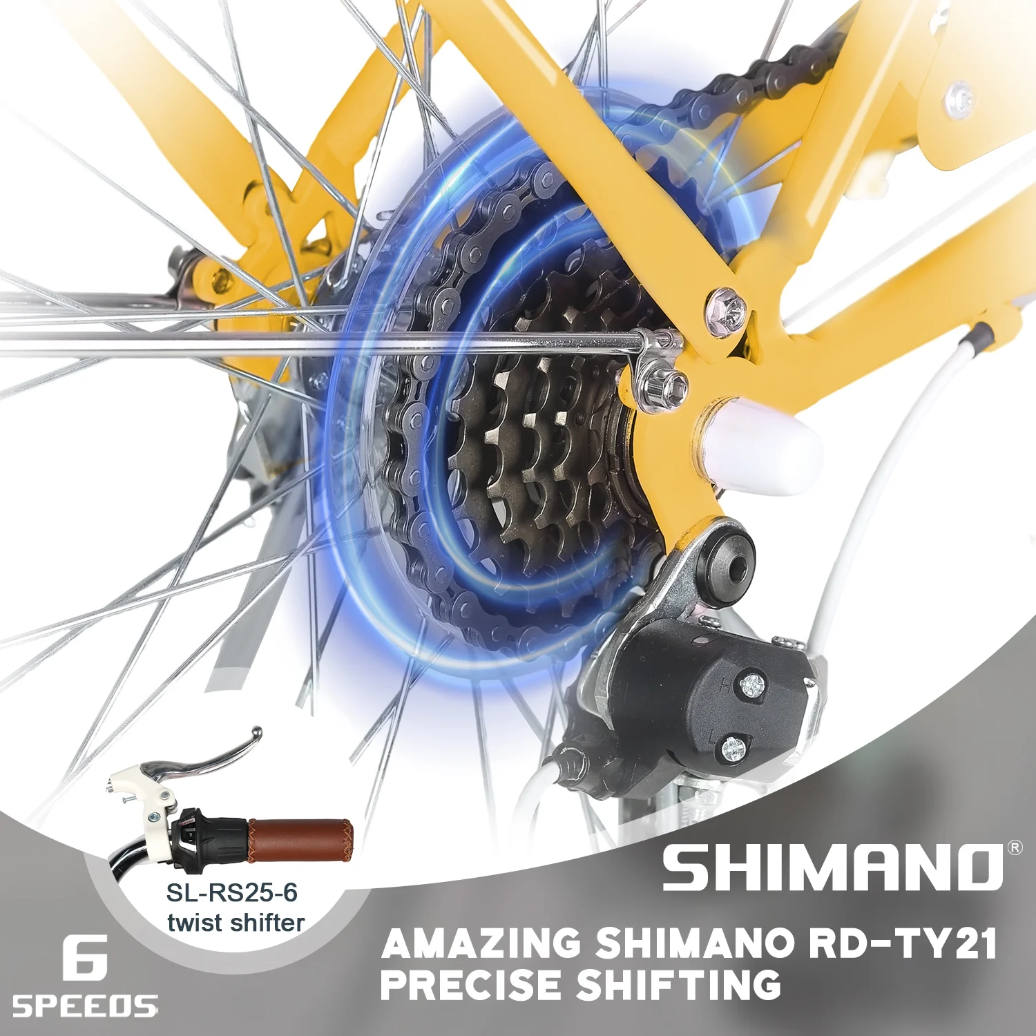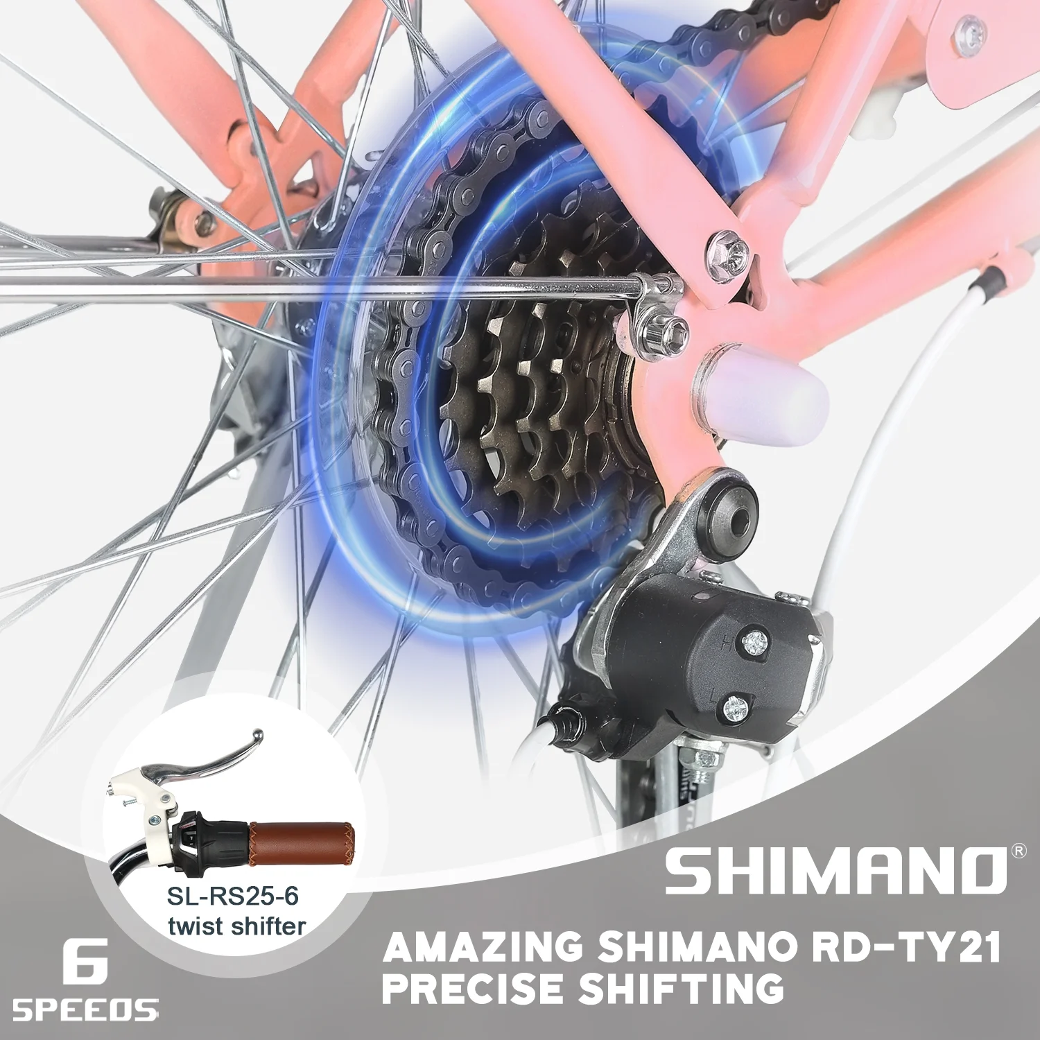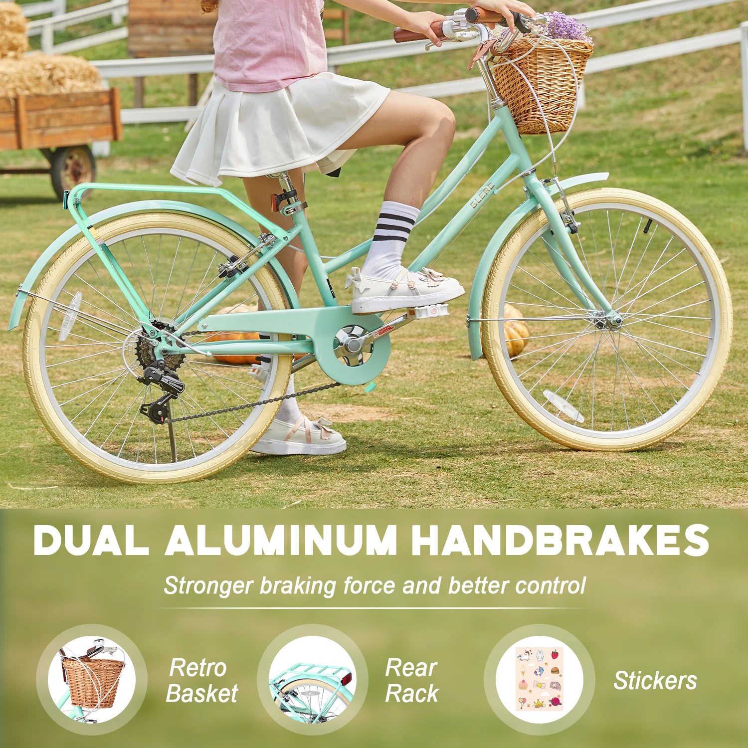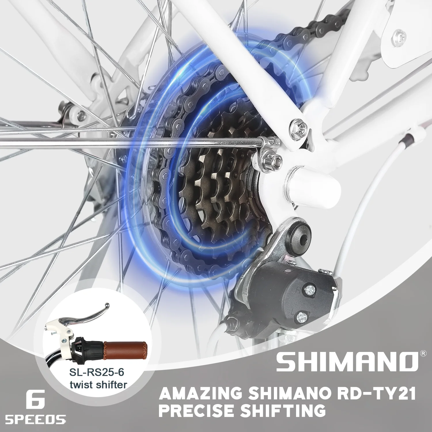 - ��High Performance��The beach cruiser bike features a Shimano 6-speed gear system and a high-carbon steel frame, helping you conquer steep hills with ease. Suitable for a variety of scenarios, from leisurely rides to long-distance commuting.