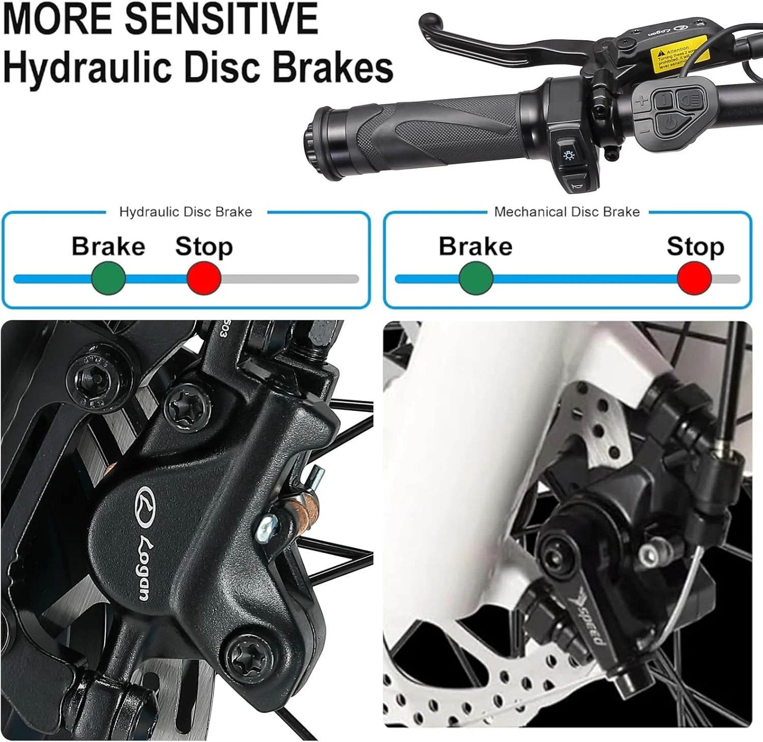 - ��Sturdy frame, excellent structure��: This adult electric bike adopts a lightweight aluminum alloy frame, high-strength front suspension fork, and front and rear disc brakes, with a load capacity of up to 440 pounds. At the same time, the oversized padded seat provides ample support, and the ergonomic handlebar brings a natural and relaxed riding posture.