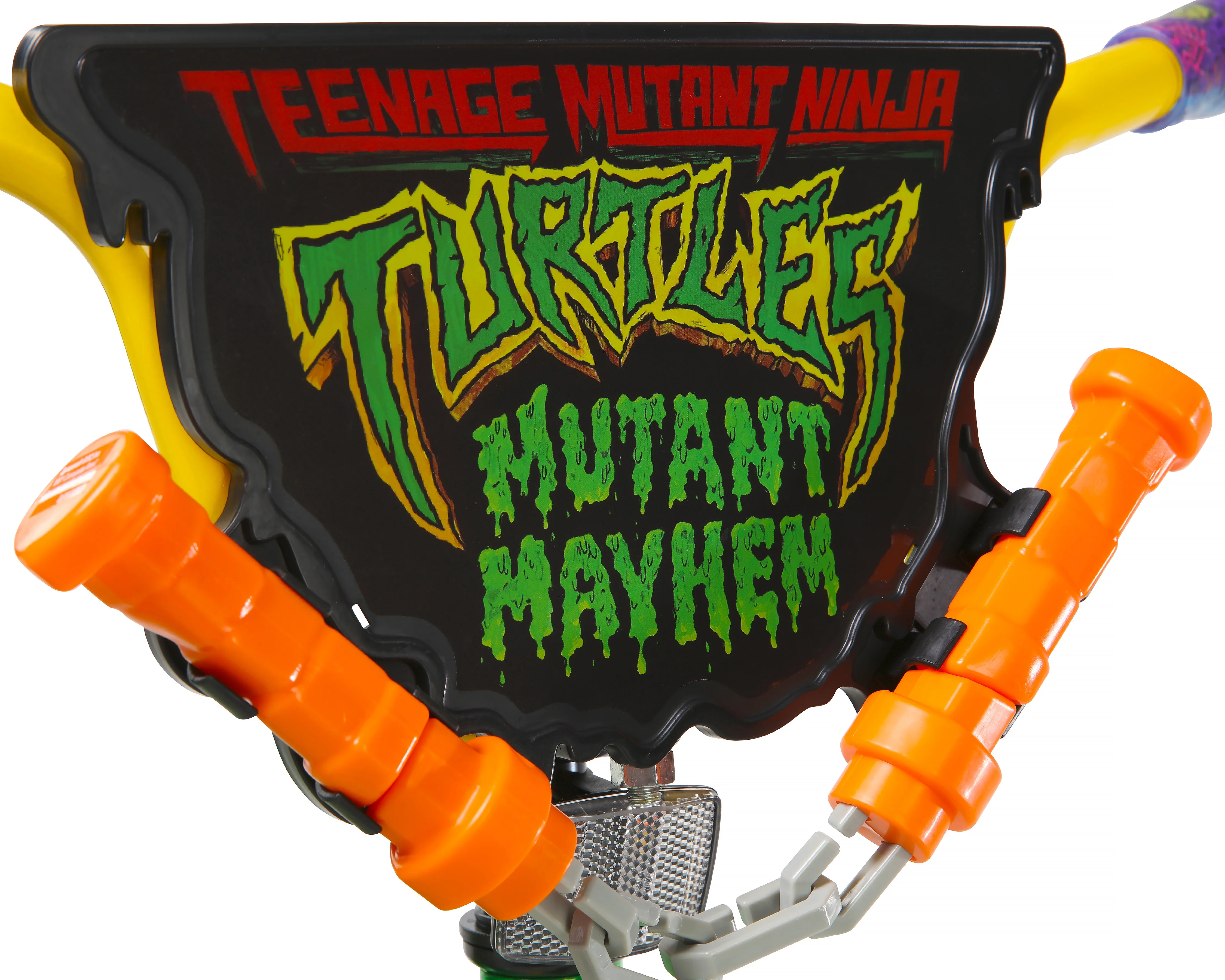 - Sturdy Steel BMX bike Frame with Neon Green Finish and Authentic Teenage Mutant Ninja Turtles Graphics